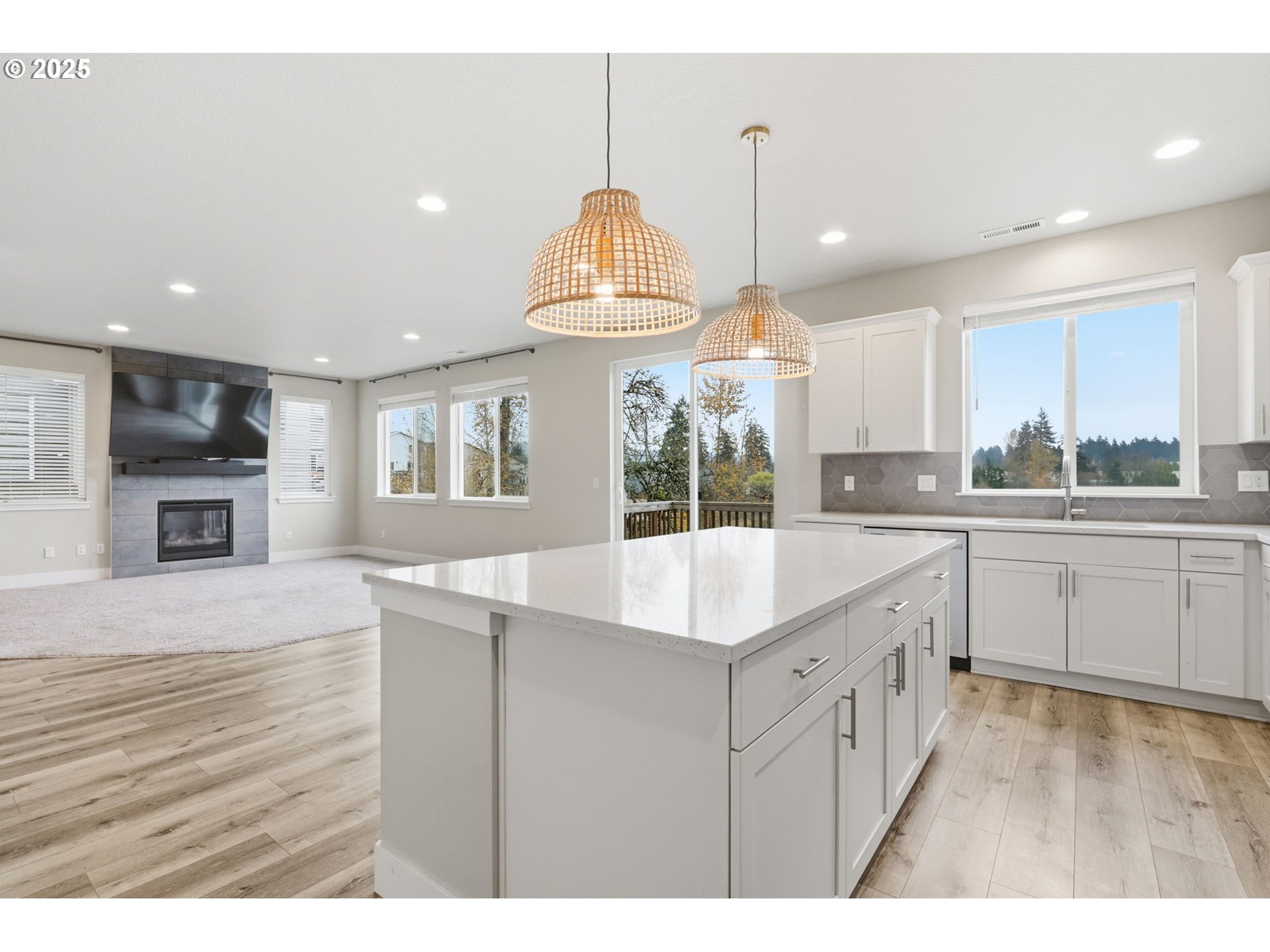 Private street with unobstructed green space views! This well-maintained, one-owner home offers 4 bedrooms and 3 bathrooms, along with a versatile upstairs loft/bonus room. The open-concept floor plan includes a full bedroom and bathroom on the main level, ideal for guests or multi-generational living. The gourmet kitchen features quartz countertops, a breakfast bar, stainless steel appliances, and a walk-in pantry. The great room, featuring a gas fireplace, flows seamlessly into the formal dining room, making it perfect for entertaining. Upstairs, the generous primary ensuite includes a sitting area and a spa-like bathroom with a soaking tub, tiled shower, and a large walk-in closet. You’ll also find two additional bedrooms, a full bath, a loft, and a laundry room. Additional highlights include epoxy flooring and storage racks in the attached garage, smart home technology, A/C, and a fenced backyard. Conveniently located near shopping, dining, walking trails, community parks, and recreation. Close to Durham Elementary, Tigard High School, Trader Joe’s, Washington Square Mall, and Lake Oswego restaurants. Easy access to I-5 and HWY 217 for commuting. Vacant and move-in ready. A must-see!
