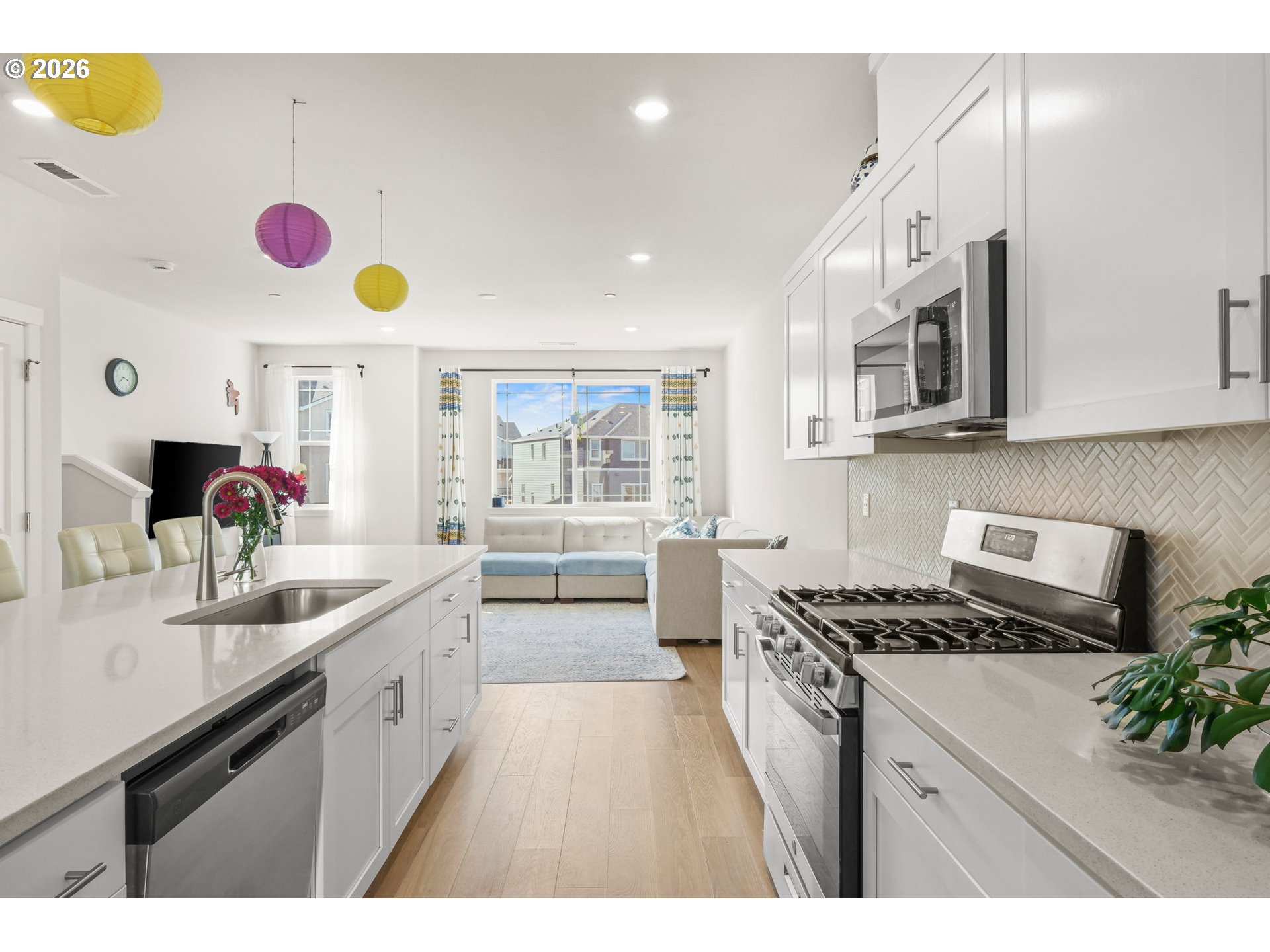 Beautiful and better than new is this corner townhome with lots of natural light, sitting in the Heart of the Bethany area. Enter on the bottom level where you will find a full sized bedroom, that looks out onto a green space area, and full bath. Perfect for guests, home office, or a creative retreat. Also convenience of a 1 car oversized attached garage for your favorite car, and storage. Up the stairs to the Main living area, thoughtfully designed for everyday living and large windows for gazing, and has the Great Room effect where the kitchen is with a large island with quartz countertops. Lots of cabinet space, and a Dining Area that has enough room for your large table. Cozy deck to sit and bathe in the sun makes this Main level so comfortable. Up the stairs to the top level sits the Primary Suite, and an attached sitting area for reading in solitude. Primary bath has walk in shower, double sinks and counters in matching quartz, and a view out every window. Third bedroom is Spacious, with a full bathroom, plus offers other options for your lifestyle. This one has been well loved, and shows through and through. Great schools, and sits on a dead end street for children to gather and play! Priced to sell!