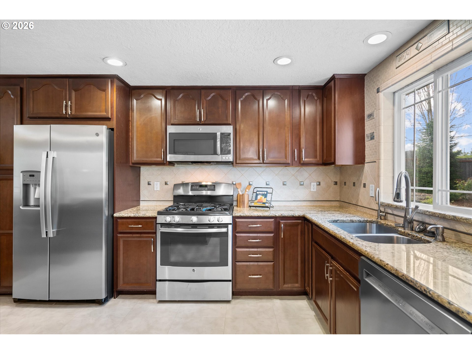 Dishwasher, FreeStandingGasRange, FreeStandingRefrigerator, GasAppliances, Granite, Island, Microwave, Tile