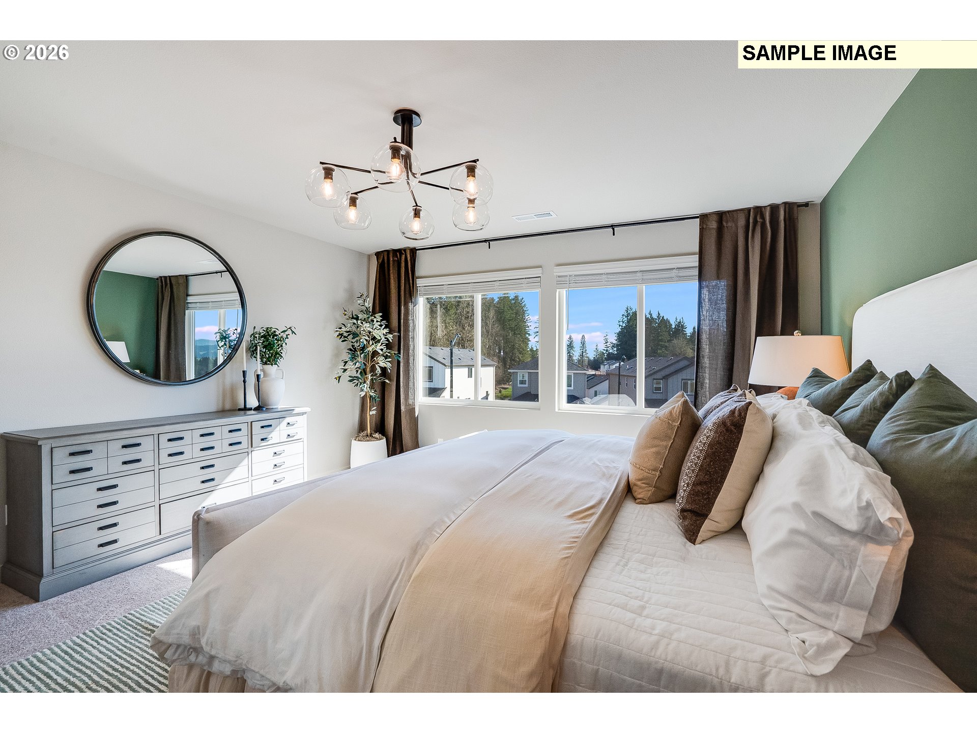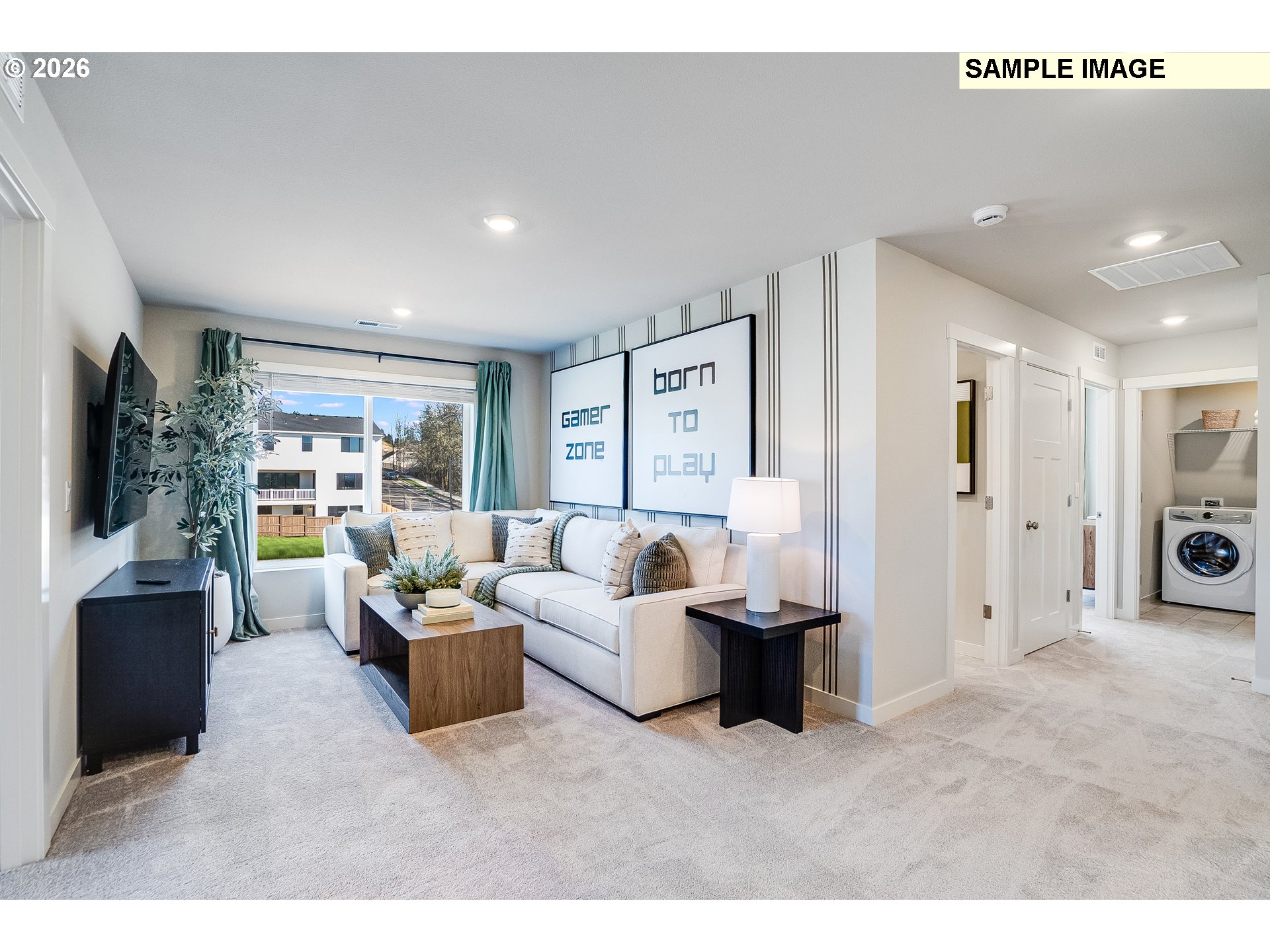 This move in ready, new construction two-story home is located at South River Terrace, a community near schools, shopping, dining, and freeway access, with its own park and sports courts. The Judith plan includes a main-level bedroom near the entry plus an expansive great room with fireplace, dining area, and kitchen that flow to a patio. Upstairs, three additional bedrooms, a bonus room, and the private primary suite with a soaking tub and walk-in closet complete the layout. Interior details include quartz countertops, shaker-style cabinets, LVP flooring, two-tone paint, and a separate tub and shower in the primary bath. This home also includes central air conditioning, a refrigerator, washer and dryer, and blinds—all at no extra cost! Located on Homesite 184 Bradford. Estimated completion is August, 2026. Rendering is artist conception only. Photos are of a similar home, features and finishes will vary.