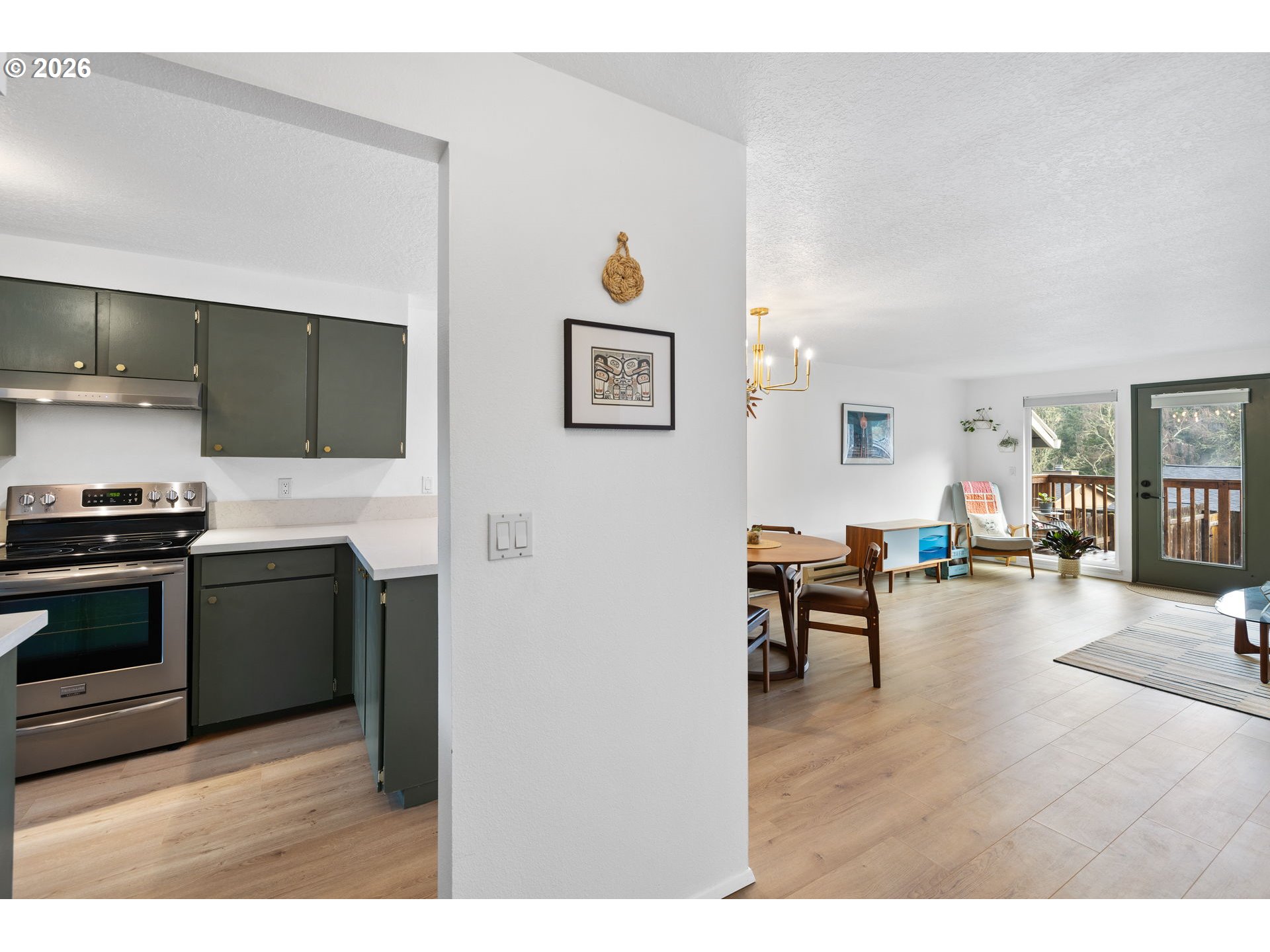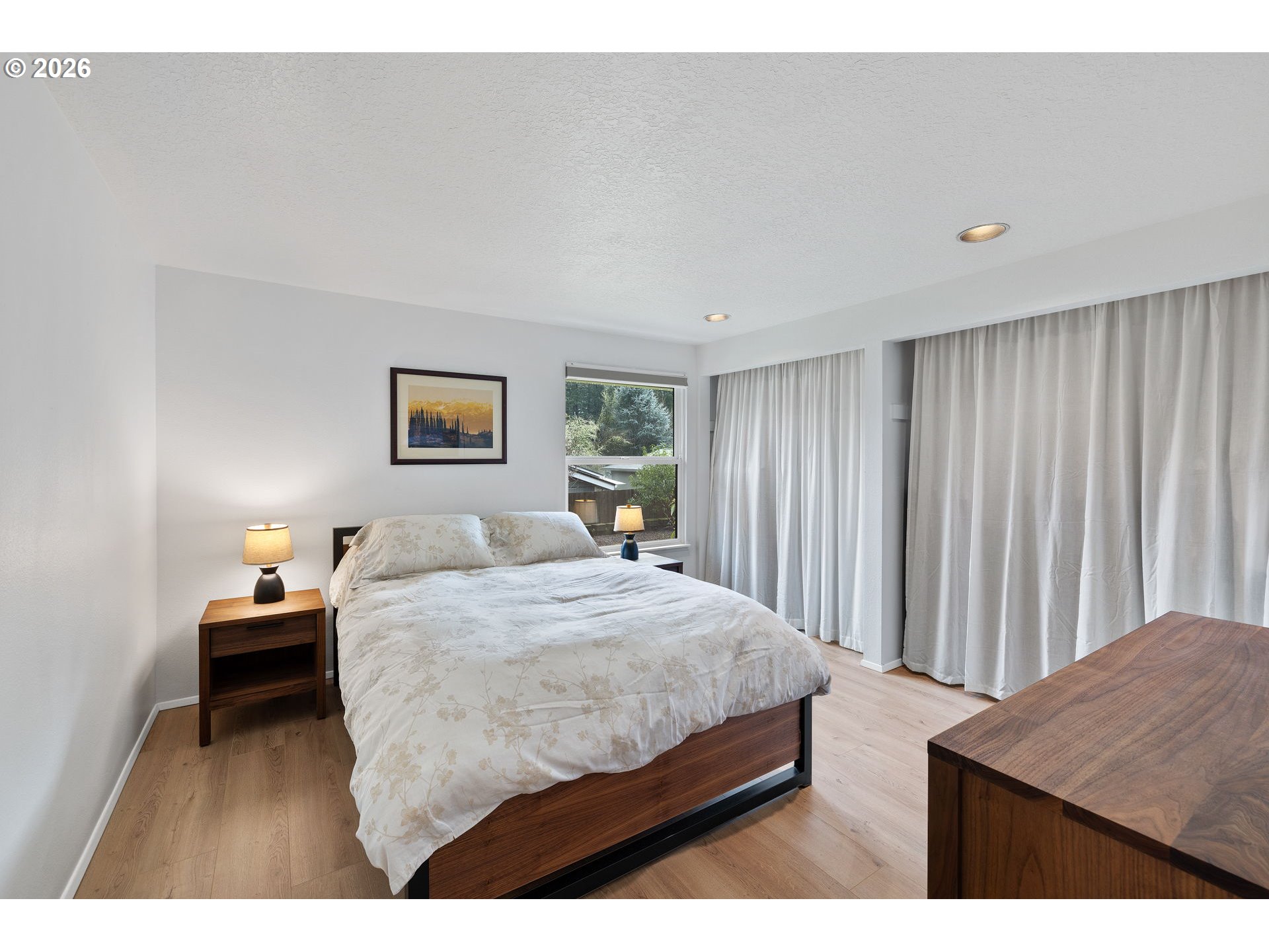 Completely refreshed and thoughtfully updated, this one level home offers an inviting blend of comfort and style. Sunlight fills the open floorplan, where the main living space features a cozy fireplace and direct access to the deck overlooking the yard. The modern kitchen includes quartz counters, updated lighting, and newer hardware, along with all appliances—including the refrigerator, washer, and dryer—included with the home. The primary bedroom has no shared walls and offers double closets, while the bathroom’s dual sinks add everyday convenience. Fresh paint, contemporary flooring, and stylish finishes make the home feel truly move in ready.The expansive, fully fenced yard provides a quiet outdoor retreat, with a deck perfect for relaxing, entertaining, or enjoying the sunrise. Tucked away on a peaceful cul de sac in West Beaverton, this home offers easy access to schools, shopping, transportation, and neighborhood amenities—a rare combination of privacy, convenience, and thoughtful updates.