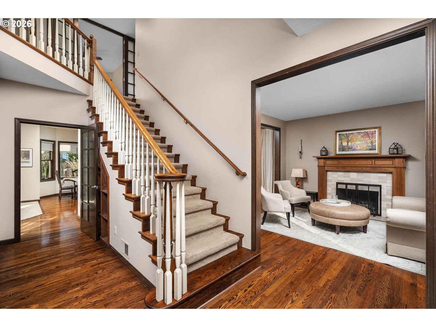 Located on a quiet cul de sac in the Sexton Mountain neighborhood, this warm and inviting two story home offers comfort, privacy, and thoughtful updates throughout. Mature landscaping and a peaceful setting create an immediate sense of home. Inside, hardwood floors and abundant natural light enhance the main level layout, which is ideal for both everyday living and entertaining. The living room with fireplace and formal dining area are both spacious in size and flow seamlessly into the remodeled kitchen featuring quartz counters, stainless steel appliances, and a large walk in pantry. A large family room sits just off the kitchen, along with a main level office with French doors and a convenient laundry room. Upstairs, all bedrooms are generous in size, including a spacious primary suite with a remodeled bathroom, soaking tub, walk in shower, walk in closet, and separate office space. A large bonus room offers flexibility as a fourth bedroom or additional living space, and an upper level second den/hobby room is the perfect space to suit any need. Storage is abundant throughout the home. Recent improvements include interior paint, newer carpet, updated mechanicals including furnace/AC & hot water heater, a newer roof, and Hardie plank siding. The private backyard features multiple seating areas, lawn space, and a half sport court, creating a wonderful extension of the living space. A rare opportunity to own a lovingly maintained home in a quiet location with easy access to schools, parks, and amenities.