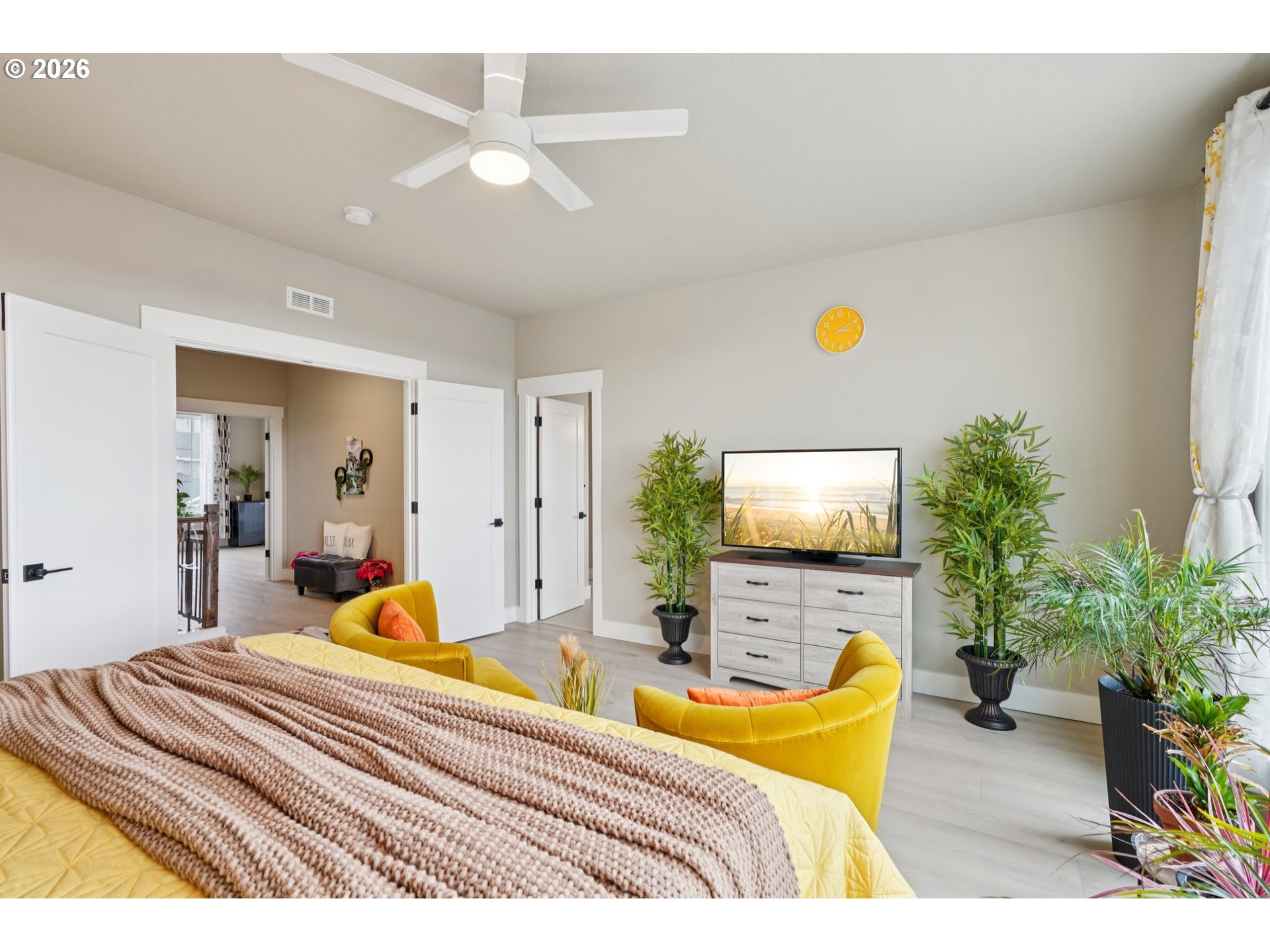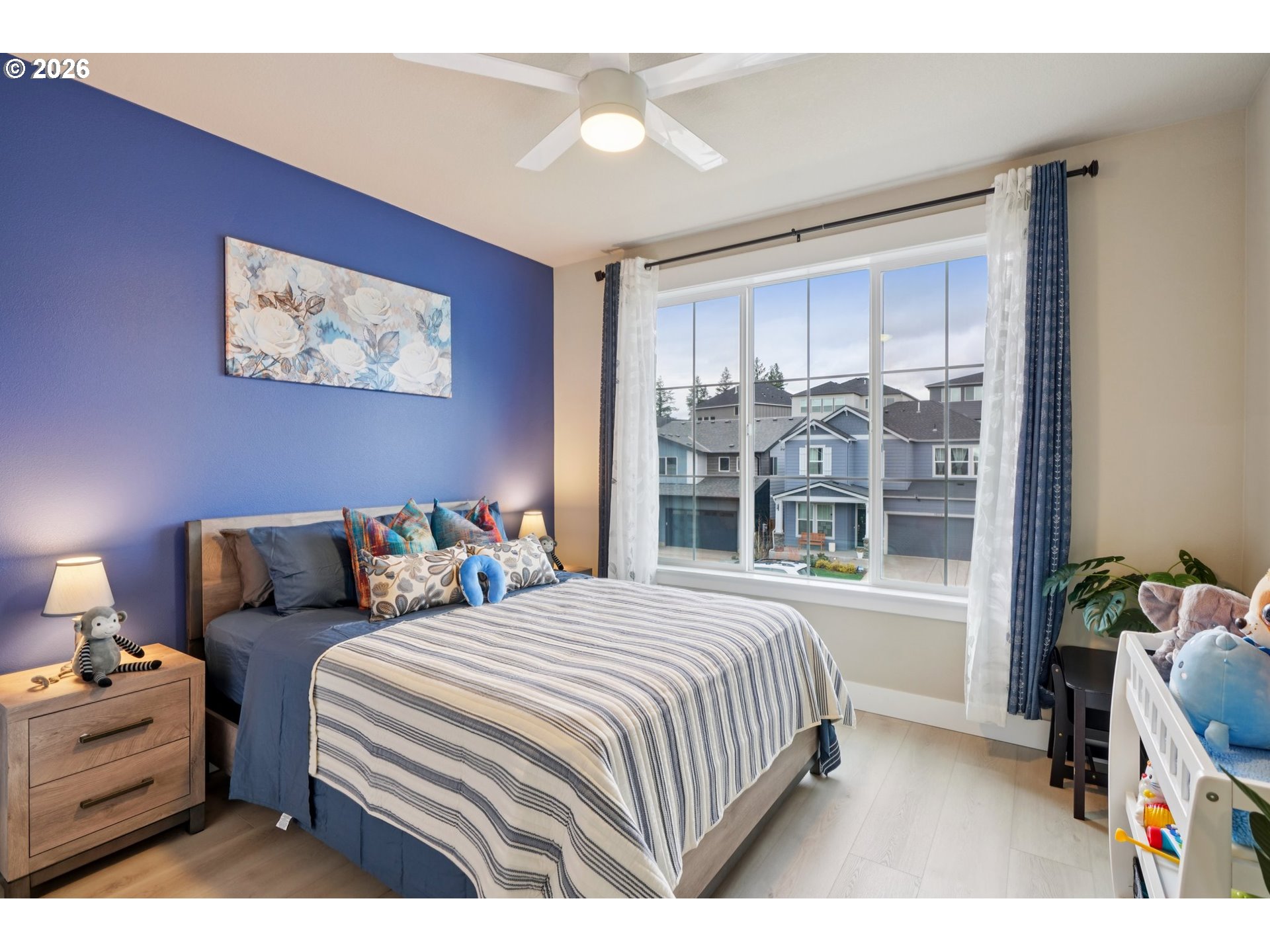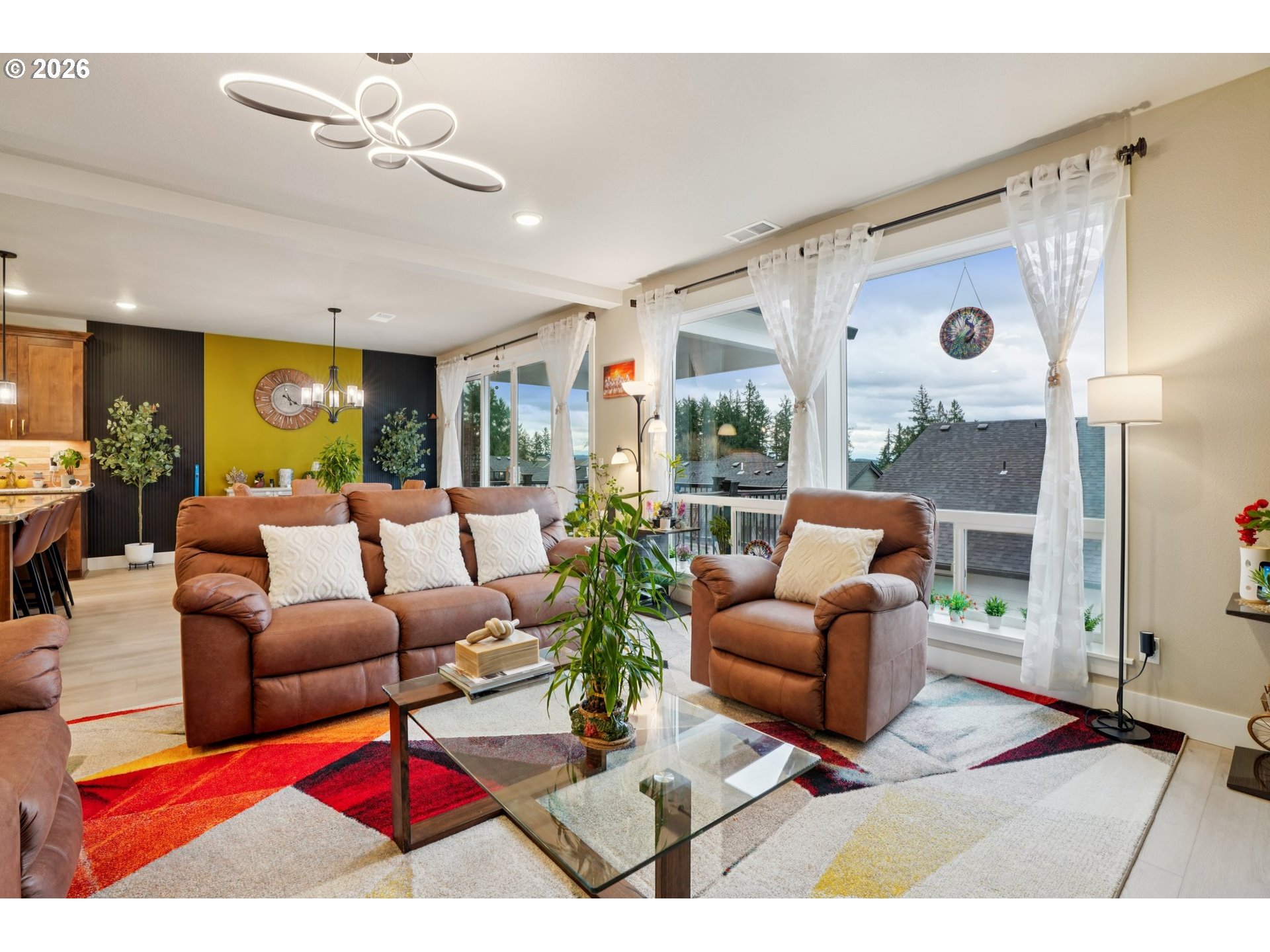 **Luxury Valley View Home* Experience elevated living in this better-than-new masterpiece by an award-winning Street of Dreams builder. Perfectly positioned within an exclusive community, this home captures sweeping valley views from both the interior and its expansive deck, showcasing the difference that superior craftsmanship makes. Step through the grand entry into a light-filled, open layout that balances elegance and comfort. Hard-surface flooring flows throughout, complemented by refined details such as an open-rail staircase and custom built-ins. The gourmet kitchen features warm cabinetry, a drop-in cooktop, wall oven, and premium finishes designed for everyday luxury and effortless entertaining. Gather in the formal dining room or enjoy the main-level great room framed by panoramic views. A versatile layout includes a main-level bedroom and full bath—ideal for guests or multi-generational living—along with a private office for today’s work-from-home lifestyle. Upstairs, a spacious bonus room offers flexibility for media or recreation, while the primary suite provides a serene retreat with spa-inspired amenities and stunning vistas. Designed for seamless indoor-outdoor living, the home’s expansive deck invites year-round enjoyment. The rare, level yard below is perfect for gardening, outdoor play, or enjoy the deck on a quiet evenings overlooking the sparkling valley lights. A showcase of design integrity, craftsmanship, and modern sophistication, this residence stands apart from the rest—schedule your private tour today to experience the elevated quality that defines this remarkable home.