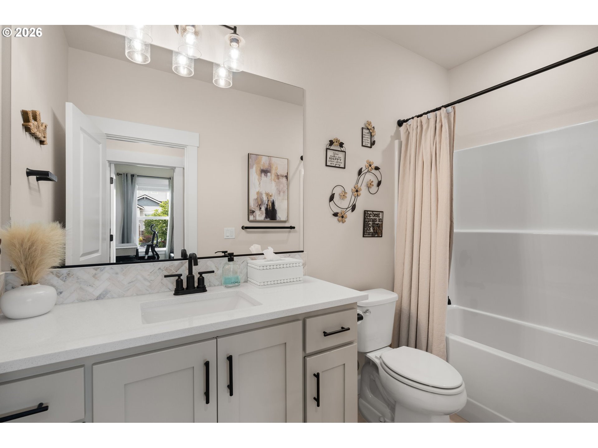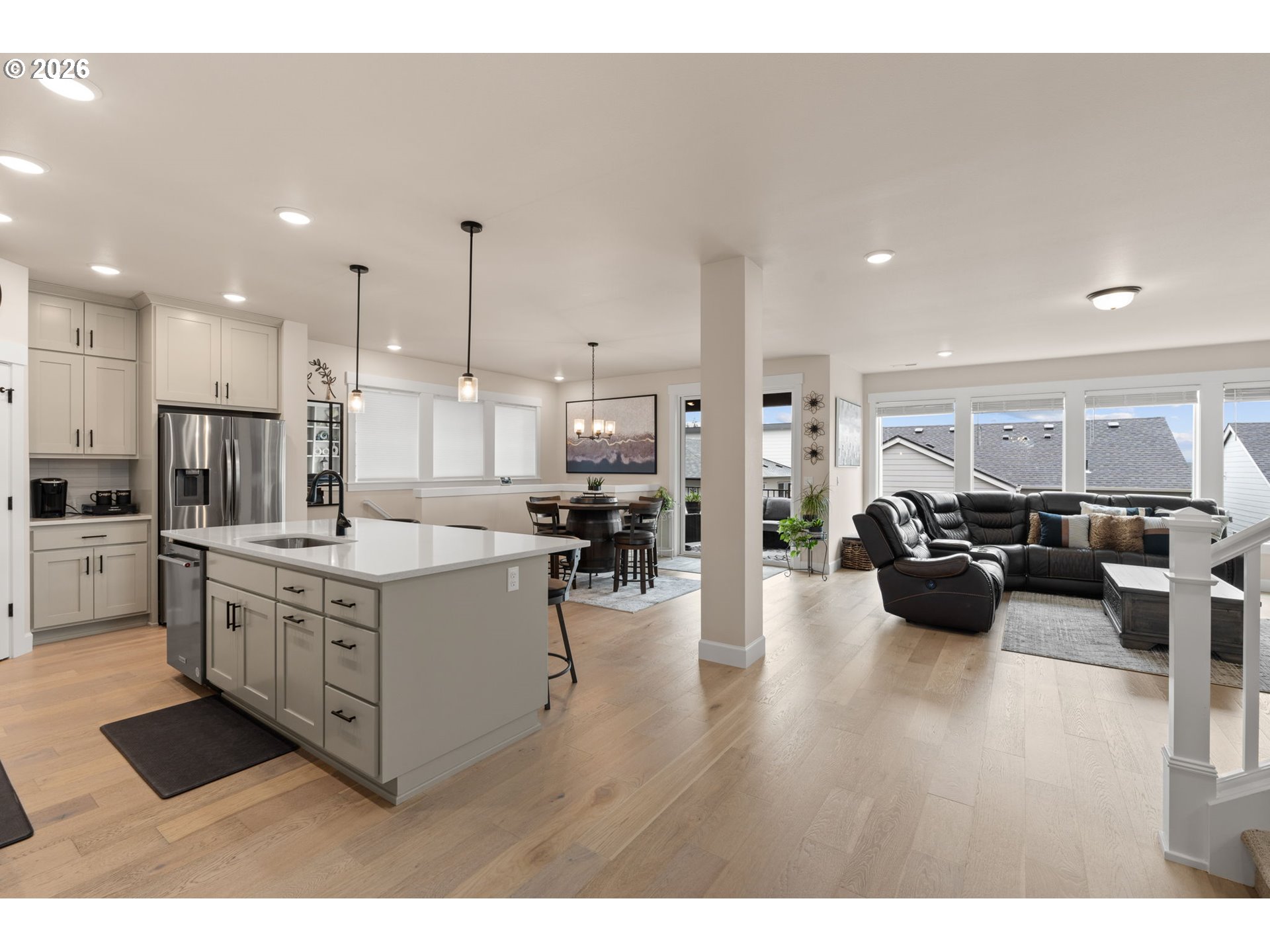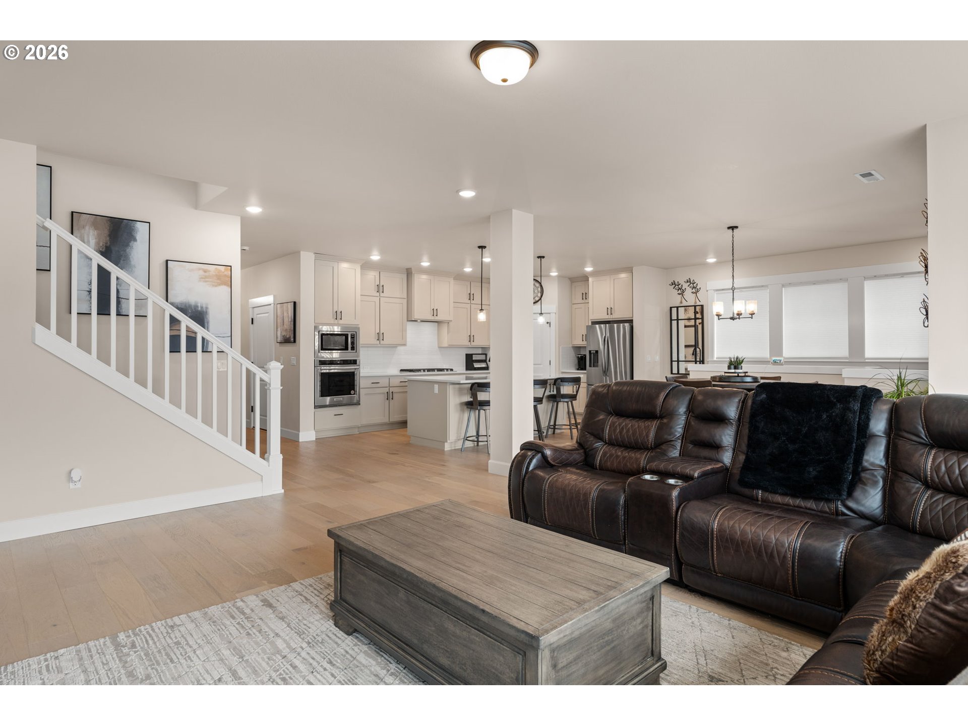 Better than new in River Terrace! Built in 2023, this pristine home offers 4 bedrooms, 3 full baths, and over 3,200 square feet—including a main-level guest suite and daylight basement game room with walk-out access to the yard.The open main floor has 10’ ceilings, engineered hardwoods, and tons of natural light. A gorgeous gas fireplace in the family room is the focal point, tiled floor to ceiling and flanked with beautiful built-ins. The kitchen is thoughtfully designed with ceiling-height cabinets, quartz counters, soft-close drawers, a walk-in pantry, and storage on both sides of the island. A full suite of KitchenAid appliances includes both built-in ovens and a gas cooktop.Upstairs, the flexible loft space works well for a second living area, office, or playroom. The very spacious primary suite features a tray ceiling, soaking tub, walk-in shower, dual sinks, and a large closet. Two more bedrooms and a full bath complete the upper level.The daylight basement adds extra out-of-the-way living space with a large bonus room and a closet with built-in shelves. Other highlights include quartz in all bathrooms, a roomy laundry with utility sink (washer/dryer included), a covered back deck, and a large spacious walkin storage closet under the stairs on the 1st floor. Other highlights include quartz in all bathrooms, a roomy laundry with utility sink (washer/dryer included), and a covered back deck.All the newness of a new home—without the wait, all in a beautiful neighborhood with 2 parks, makes this the perfect place to call home.