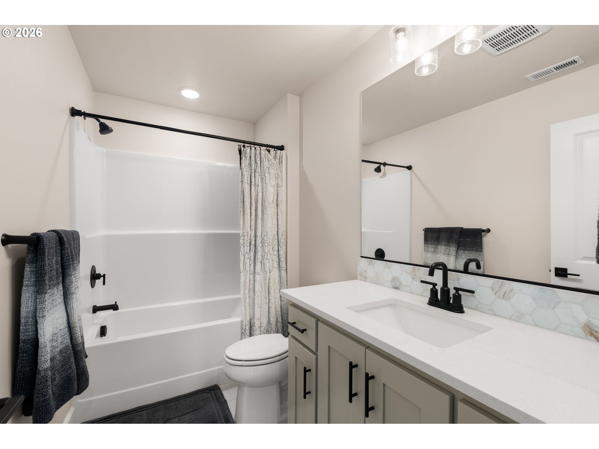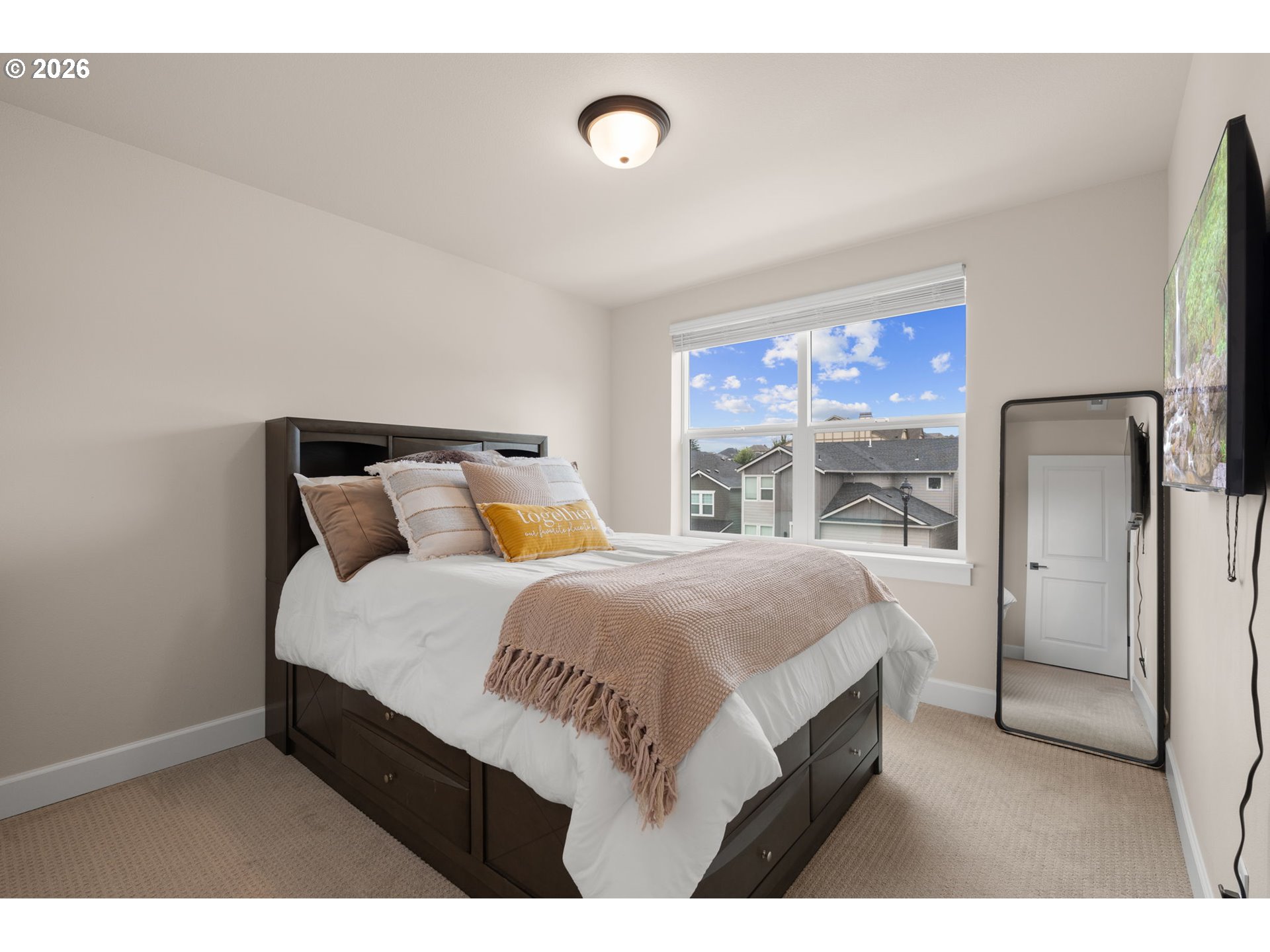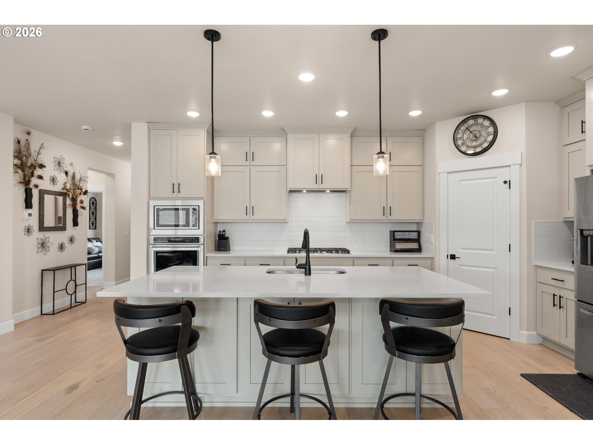 Better than new in River Terrace! Built in 2023, this pristine home offers 4 bedrooms, 3 full baths, and over 3,200 square feet—including a main-level guest suite and daylight basement game room with walk-out access to the yard.The open main floor has 10’ ceilings, engineered hardwoods, and tons of natural light. A gorgeous gas fireplace in the family room is the focal point, tiled floor to ceiling and flanked with beautiful built-ins. The kitchen is thoughtfully designed with ceiling-height cabinets, quartz counters, soft-close drawers, a walk-in pantry, and storage on both sides of the island. A full suite of KitchenAid appliances includes both built-in ovens and a gas cooktop.Upstairs, the flexible loft space works well for a second living area, office, or playroom. The very spacious primary suite features a tray ceiling, soaking tub, walk-in shower, dual sinks, and a large closet. Two more bedrooms and a full bath complete the upper level.The daylight basement adds extra out-of-the-way living space with a large bonus room and a closet with built-in shelves. Other highlights include quartz in all bathrooms, a roomy laundry with utility sink (washer/dryer included), a covered back deck, and a large spacious walkin storage closet under the stairs on the 1st floor. Other highlights include quartz in all bathrooms, a roomy laundry with utility sink (washer/dryer included), and a covered back deck.All the newness of a new home—without the wait, all in a beautiful neighborhood with 2 parks, makes this the perfect place to call home.