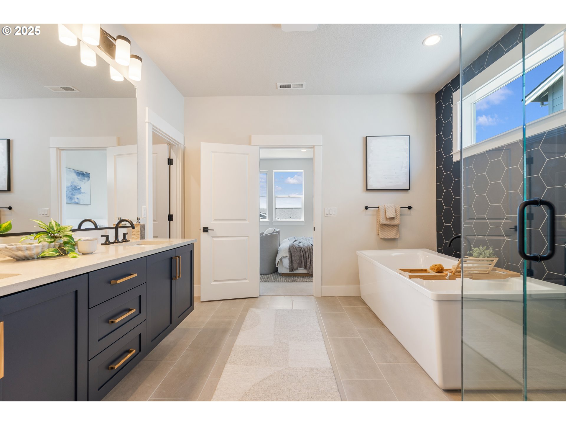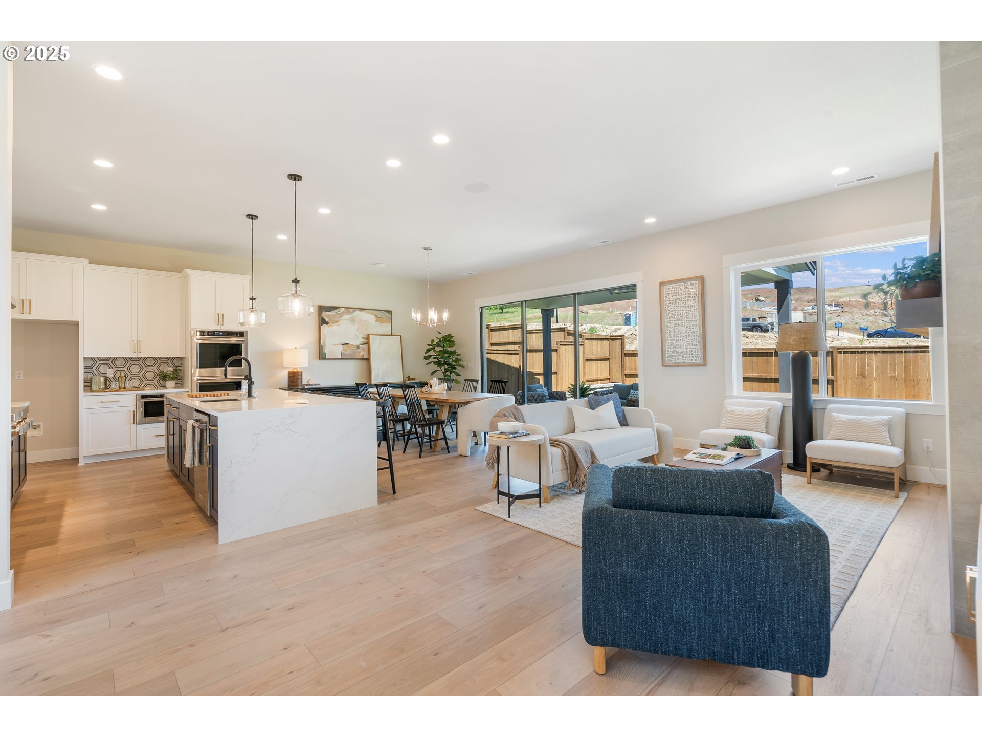 (503) 893-8874CLOSING COST INCENTIVE AVAILABLE!! Street of Dreams Builder - Move in ready & Staged Brookings Contemporary with numerous upgrades, double ovens and 6 burner gas KitchenAid range, island with extended quartz waterfall sides and floating vanity in primary bath, 12' multislide stacked door to covered patio with outdoor heater, speakers throughout, wifi package. Stunning 3-story vaulted entry, 10' ceilings on main floor, bed/full bath on main/kitchen level, covered patio with 12' stacking slider at great room included. Huge primary bedroom with territorial views. Additional bed/bath/walk in closet on entry level. With premium products, state-of-the-art appliances, and luxury fixtures and finishes, your home becomes a showcase for your individual style and preferences. No other builder offers quite the same experience, and you can be sure you will love every detail of your new home. Included features contemporary metal railing, 10' main floor ceiling/9' 3rd floor, 9'+ basement ceiling, quartz in kitchen, main floor and primary bathroom countertops, free-standing 6'primary spa tub, laminate throughout main floor living spaces, kitchen and dining, AC & zoned HVAC, front/back landscaping and rear yard fencing. All plans feature covered patios and main floor/basement bedrooms with a full bathroom. Distinguished by its desirable location & top-rated schools, Spring Collection is the newest neighborhood addition to thriving River Terrace. Experience the difference! Photos represent a completed home with a same floorplan, similar finishes selected. Model available to view. Photos and matterport tour are of actual home.