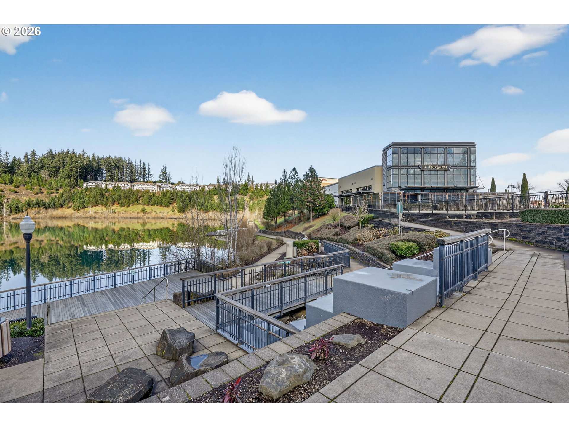 Discover this rarely available, front-row lakeview townhome-style condo with southern exposure in the highly desirable Progress Ridge community. Enjoy peaceful, unobstructed water views from both levels of this light-filled home, where lakefront and Mt. Hood views shape the rhythm of daily living. Offering 2 bedrooms and 2.5 bathrooms, including a spacious primary suite, the open-concept main level features hardwood floors, a cozy gas-burning fireplace, and direct access to a private balcony overlooking the water. Meticulously maintained and truly turnkey, the home also boasts brand-new carpet throughout, stainless steel appliances, and a convenient stackable washer and dryer. The attached two-car garage provides ample flexibility for parking and additional storage. Perfectly positioned to blend scenic tranquility with urban convenience, this exceptional location offers walkable access to neighborhood shops, restaurants, parks, trails, and even trout fishing in the lake. Your best left begins with a home that inspires you and opportunity knocks here.