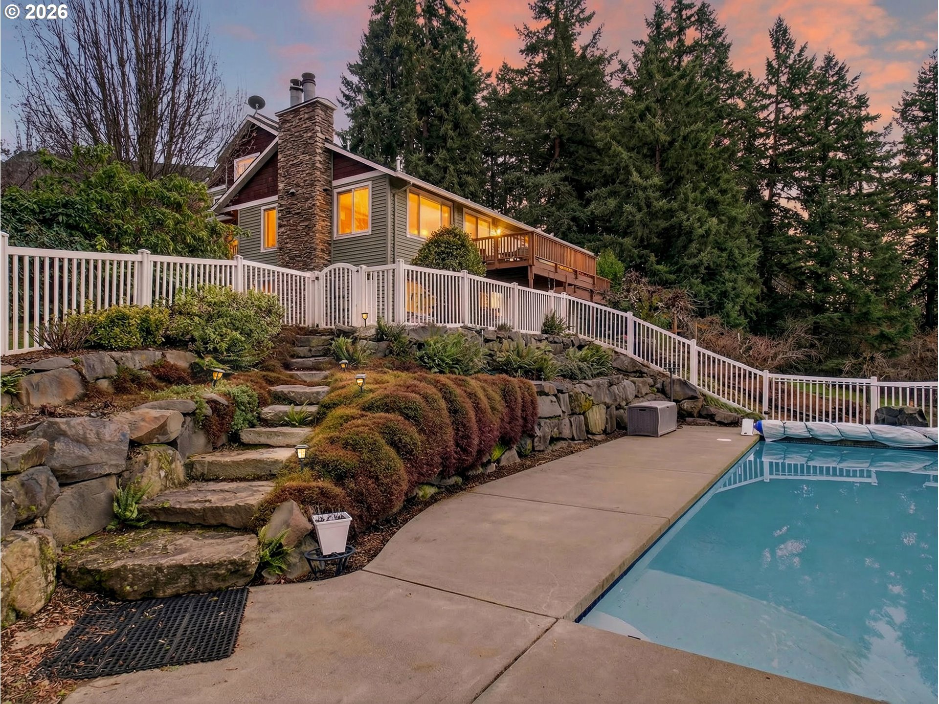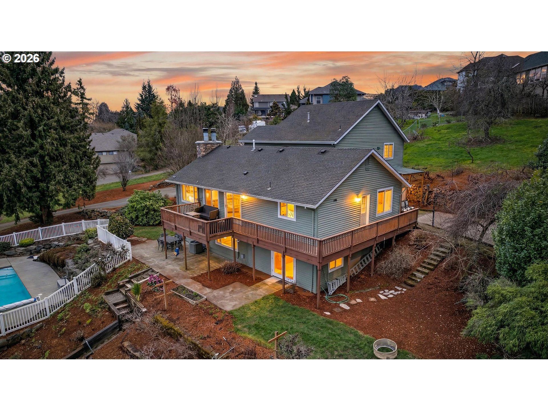 (503) 893-8874Located in one of Sherwood's most desirable areas, this 1.35 acre property, with valley views, offers rare space, privacy & versatility, just minutes from town. The multi-level layout creates separation & flexibility, while the many outdoor amenities including, heated pool, sport court, sauna & spacious yard are great for entertaining & everyday living. Spacious living room features beautiful fireplace & wall of windows w/gorgeous views. Dining area has slider to extended deck. Updated kitchen has granite countertops, large eating island, built-in desk and stainless applcs, including refrigerator & built-in range. Spacious primary suite has w-in closet & updated bathroom (2022} w/dual sinks, granite cntrtps, tiled shower & jetted tub. Updated lower level (2023) has LVP flooring, family room w/door to extended patio & pool access, 2 bdrms, full bathroom & storage. The property includes fenced in-ground heated pool, sauna, pizza oven, sport court, garden beds, fruit trees, pet kennel and shed. Attached 2-car garage & detached 1-car garage/workshop. Engineered hardwood flooring (2026). Carpet (2023). Furnace & AC (2018). Ring doorbell. Sprinkler system. Located near schools, Snyder park, dog park & Old Town Sherwood w/shopping, dining & so much more! Conditional city approval in place for proposed 3 lot minor partition. Buyers to complete independent due diligence.