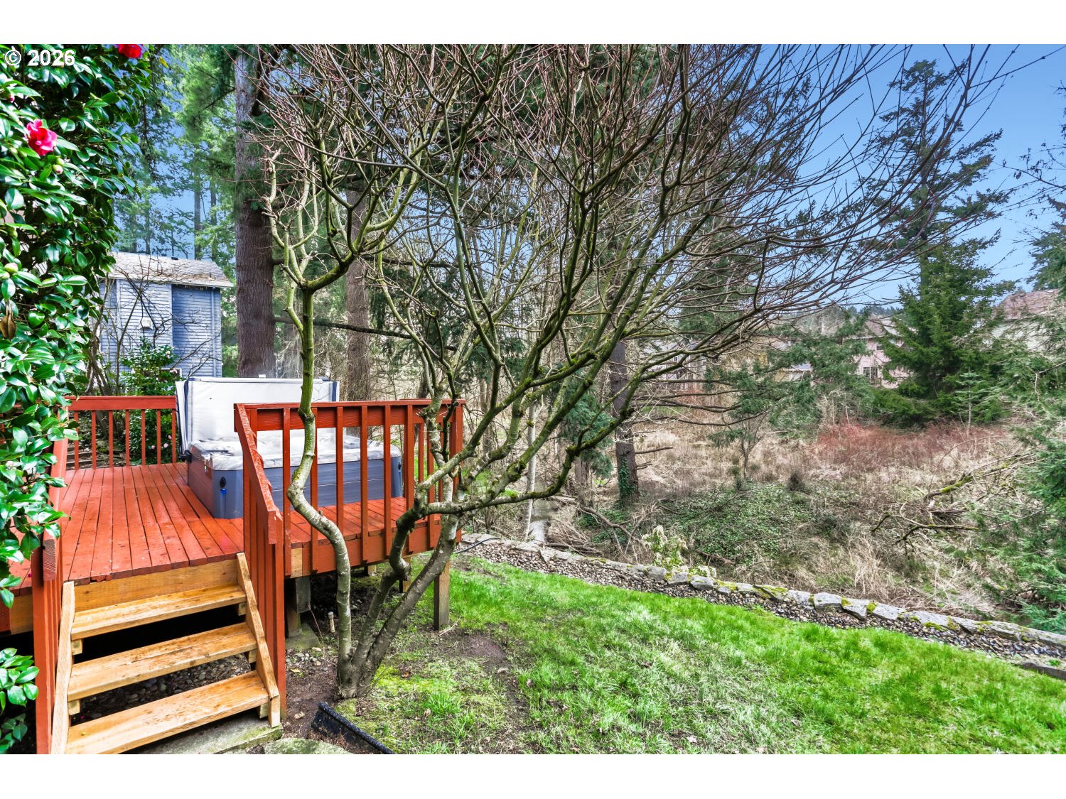 Private Greenbelt Sanctuary with Tranquil Water Views.Step into this beautifully remodeled 4-bedroom, 3.5-bathroom retreat in one of Beaverton’s most sought-after neighborhoods. Situated on a premier Vale Park greenbelt lot, this home offers rare privacy and the soothing sounds of trickling Johnson creek and pond right from your back door.The vaulted hardwood entry leads to an airy living room anchored by a masonry fireplace and formal dining area. The heart of the home is the tastefully updated kitchen, featuring warm soft-close cabinetry, quartz counters, and a gas downdraft cook island. A newer sliding door opens to your private "deck oasis," complete with a Sunsetter awning—perfect for dining while taking in the view.Owner’s Suite overlooks the wetlands with a large walk-in closet and a dual-vanity bath featuring a jetted tub and walk-in shower.Daylight Basement includes a family room, a 4th bedroom, and a full bathroom—ideal for guests or multi-generational living.Relax in the 2021 hot tub on the lower deck while enjoying the wildlife. Modern essentials are all covered: brand new water heater, new garage door opener, forced air gas furnace, central AC with air cleaner, Laundry room with cabinets/shelves, a sink, and brand new washer/dryer. and an automatic sprinkler system for the front and back lawns and raised garden beds.Don't miss the opportunity to own this remarkable home and enjoy the year-round views of wildlife, nature, and tranquility.