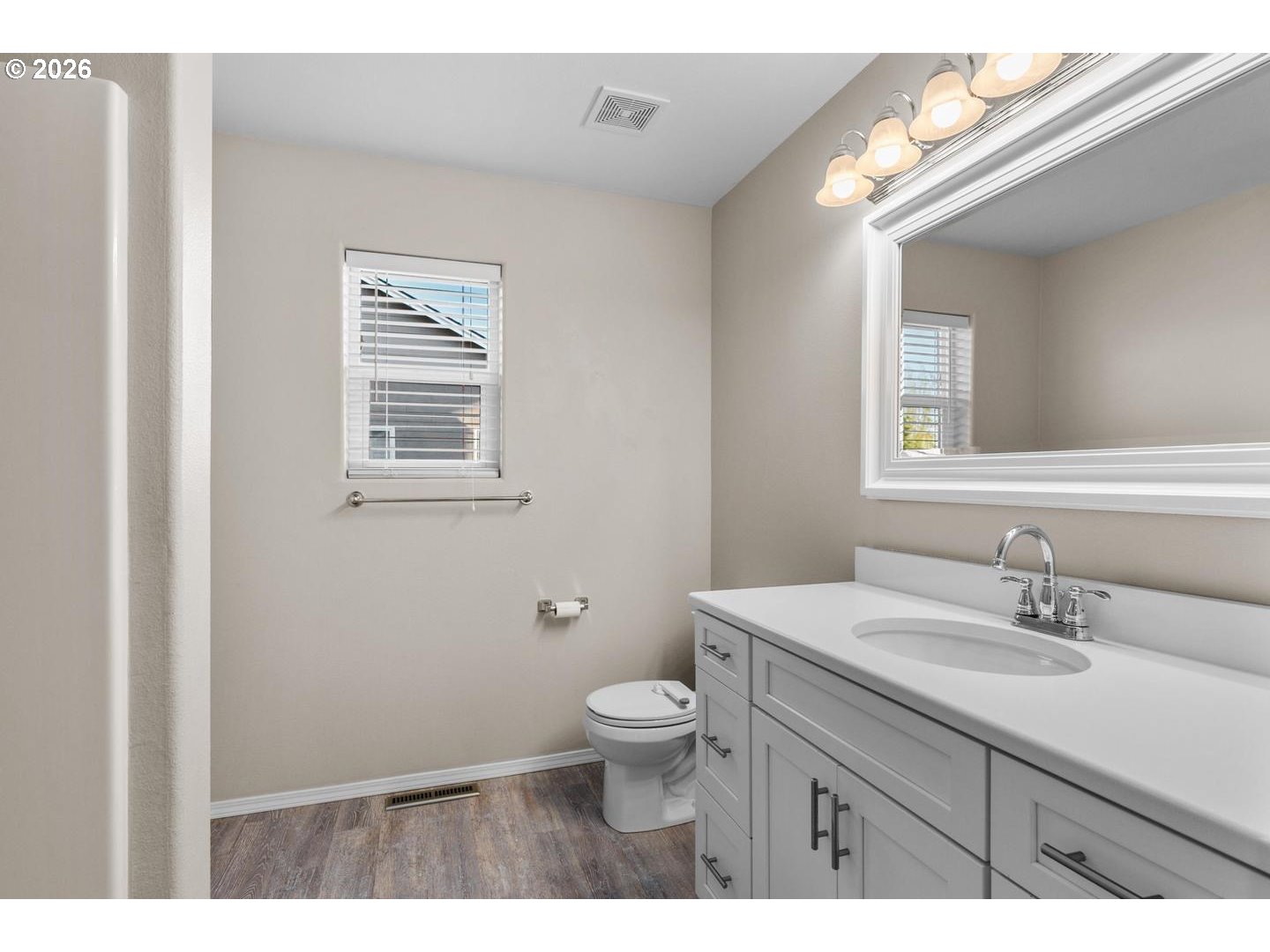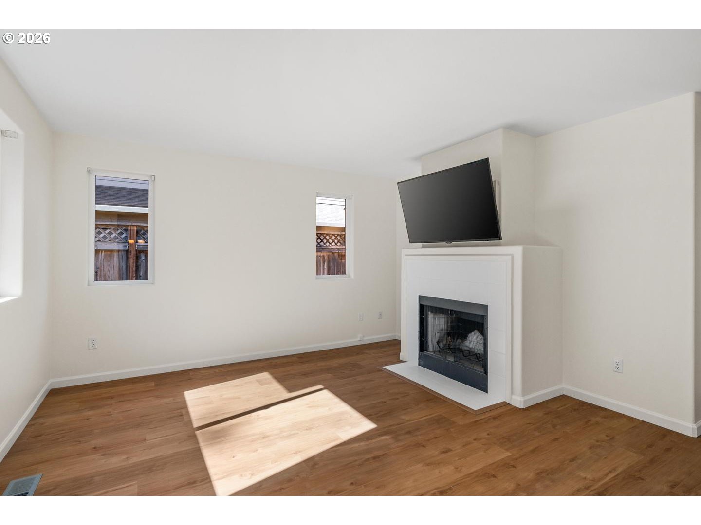 Light-filled and thoughtfully updated, this Bethany traditional offers a warm and functional layout in a desirable location. Fresh interior paint on the main level, stairwell & upstairs hallway gives the home a clean, refreshed feel, while the gas furnace/AC provide year round comfort. The main level features abundant natural light, high and vaulted ceilings, and luxury vinyl plank flooring throughout. The kitchen is equipped with stainless steel gas appliances, quartz counters, and ample storage, flowing seamlessly into the living and family spaces. A cozy fireplace anchors the family room, creating an inviting place to gather. Upstairs, the primary suite includes a walk-in closet and en suite bath with double sinks along with two additional bedrooms. Outside, enjoy a fenced yard with patio space ideal for relaxing or entertaining. Refrigerator, washer, and dryer are included.