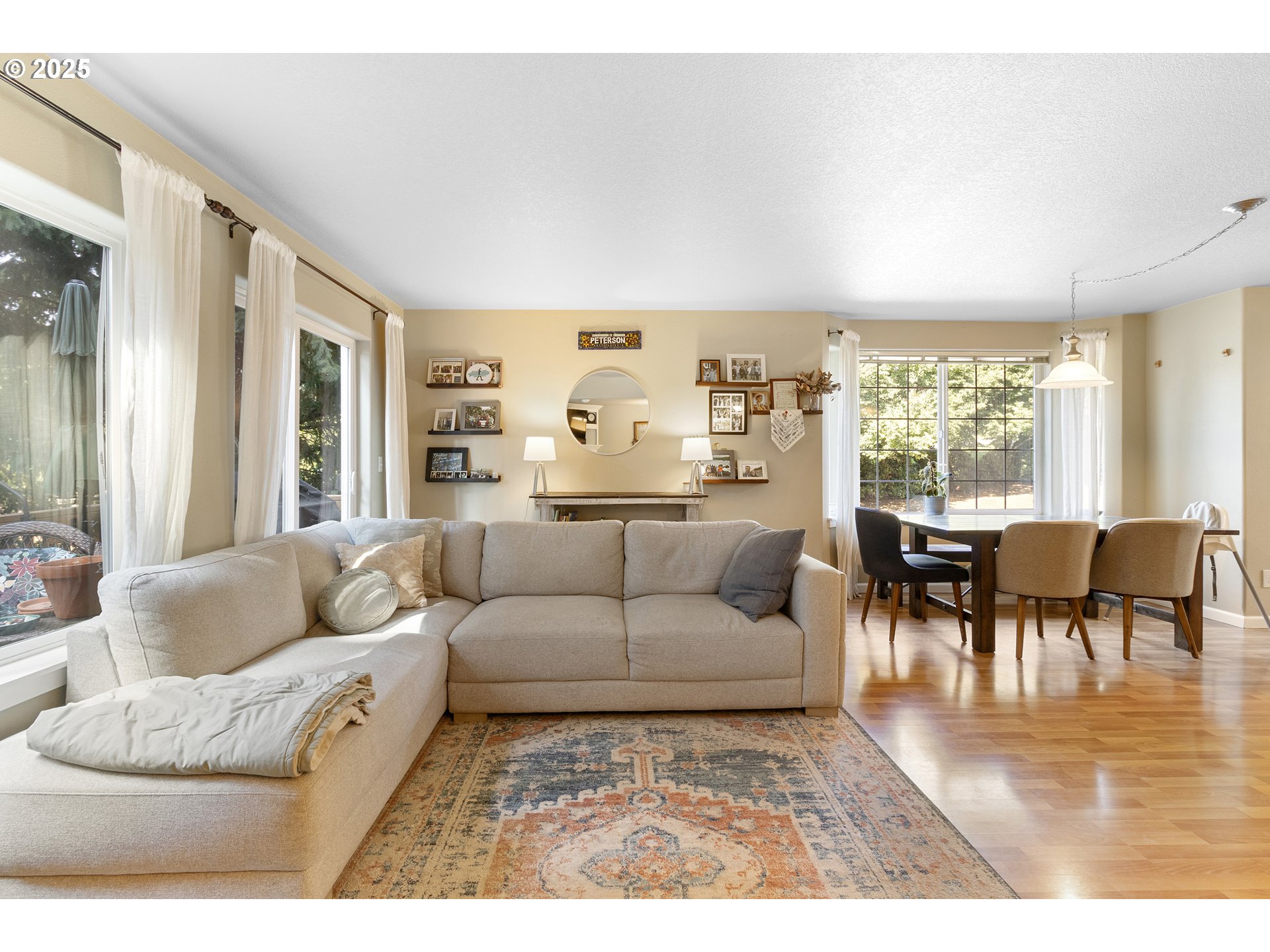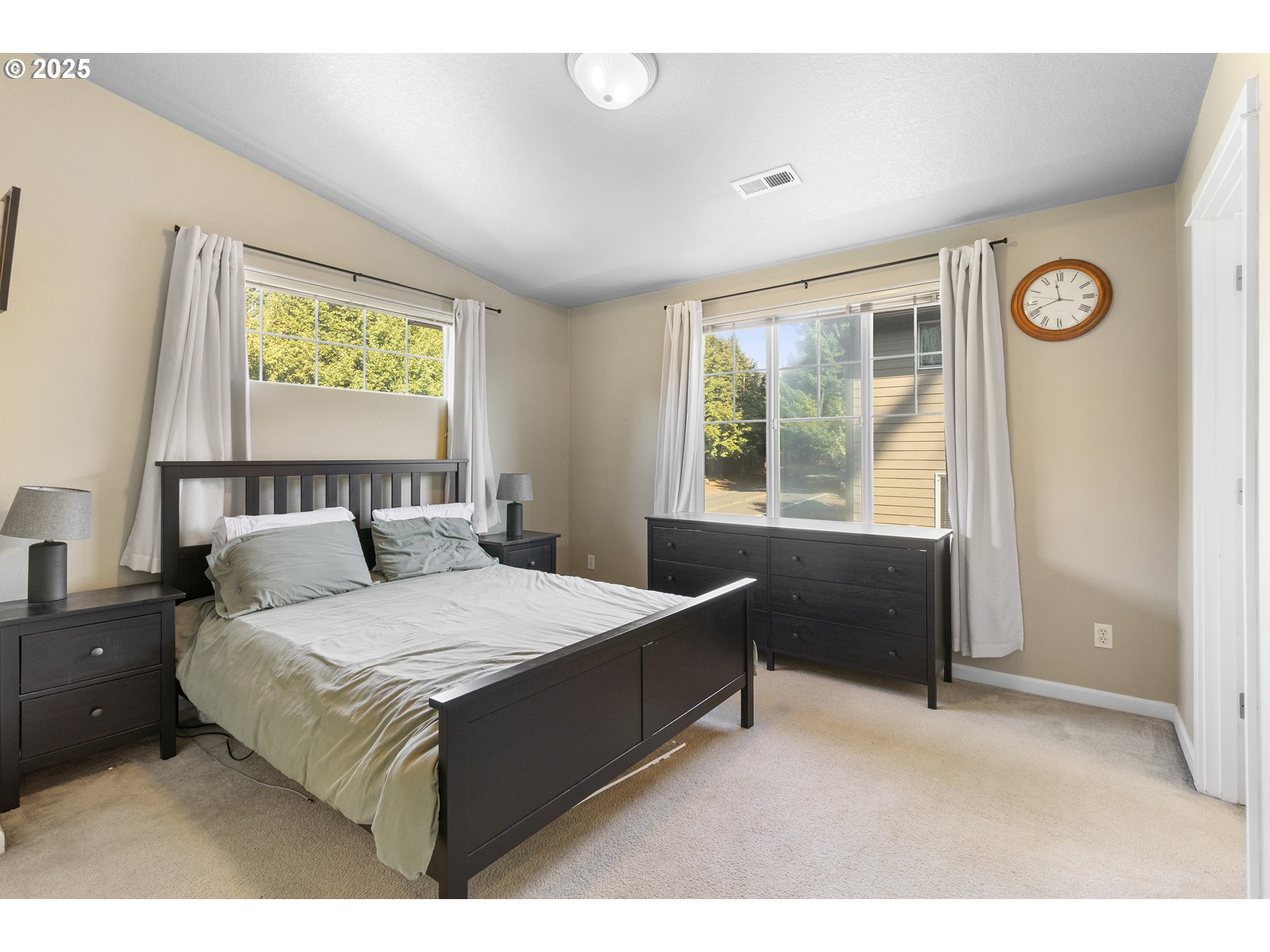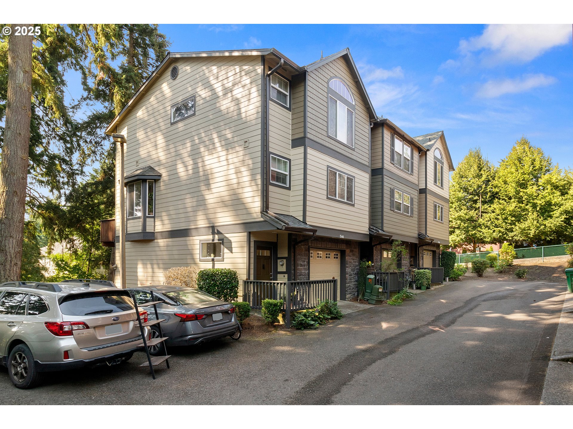 This light, bright end unit has a beautiful open layout and backs to a lush greenspace for a private, oasis vibe. Living room with gas fireplace opens to a deck facing the trees. Tasteful laminate floors throughout the main floor nicely tie the spaces together. Well-functioning kitchen has a gas range, island with seating and a large pantry. A large dining area completes the nice flow. Upper level has two large, vaulted primary bedroom suites and a generaous loft area that works great as an extra office or reading space. Convenient, large upper level laundry room. Central heating and cooling, desireable schools and fantastic neighborhood pack in a lot of value at this approachable price.