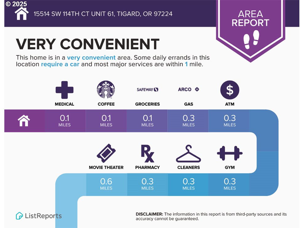 Open and inviting lower-level condominium located in the desirable Fountains at Summerfield, a vibrant 55+ community in Tigard. This 762 sq ft, one-bedroom, one-bath end-unit offers a quiet, private setting with windows on three sides, filling the home with abundant natural light. Ideal for those seeking a peaceful hideaway with an active lifestyle just outside the door. Beautifully remodeled and updated, this immaculate condo features an open floor plan that creates a warm, welcoming atmosphere. The spacious living room includes a gas fireplace insert—perfect for a cozy morning respite—and a sliding door to a covered private patio, ideal for relaxing outdoors or enjoying your morning coffee. The updated kitchen is thoughtfully designed with granite countertops, attractive updated cabinetry, deep drawers for pots and pans, and a gracious breakfast bar for casual dining. The kitchen opens seamlessly to the main living area, enhancing both comfort and functionality. The bedroom suite includes a walk-in shower, and the home is complete with an inside washer and dryer for everyday convenience. Secure entry adds peace of mind. A detached one-car garage, in pristine condition, provides space for your vehicle plus a golf cart. Fountains 2026 HOA dues are $525 per month and include water and sewer, basic cable television, garbage and recycling, exterior lighting, monthly entryway cleaning, annual exterior window cleaning, landscaping, yard maintenance, building and street maintenance, and building insurance. Residents enjoy optional 9-hole golf (annual pass $750), a swimming pool, a fitness center, tennis and pickleball courts, a library, a clubhouse, and a wide variety of clubs and social activities. Immaculate and move-in ready, this light and bright home offers comfortable living in one of Tigard’s most sought-after 55+ communities.