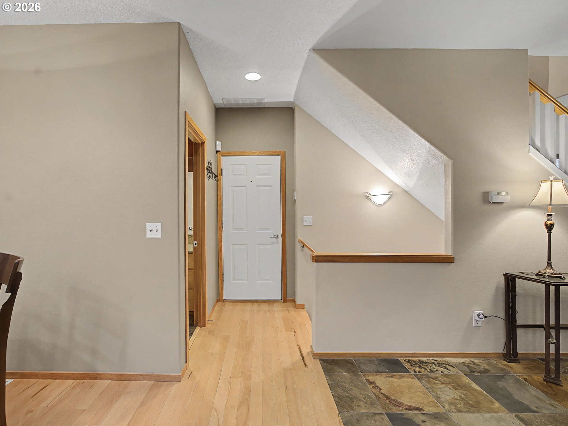 GarageDoorOpener, Granite, HighCeilings, Laundry, SlateFlooring, WalltoWallCarpet, WasherDryer, WoodFloors