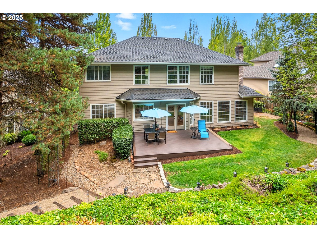 Amazing Murrayhill home with one of the best yards in the neighborhood! Recent kitchen updates include new quartz countertops, a stainless steel undermount sink, tile backsplash, freshly painted cabinets, and stainless steel appliances - creating a bright, modern space. The professionally landscaped backyard boasts a Trex deck, lush lawn, and an upper terraced level with a fire pit. Inside, the functional 4-bedroom + loft floor plan features beautifully refinished hardwood floors (2025) and a freshly painted interior. The spacious family room offers built-ins, a fireplace, and direct access to the incredible backyard. The large primary suite includes a double vanity, soaking tub, and walk-in closet. Additional highlights include a newer 50-year presidential roof and outstanding neighborhood amenities -multiple pools, tennis and pickleball courts, walking trails, and more. Located within highly regarded school boundaries (Nancy Ryles Elementary and Mountainside High) and just minutes from Murrayhill and Progress Ridge for shopping, dining, and entertainment. Don’t miss this one!