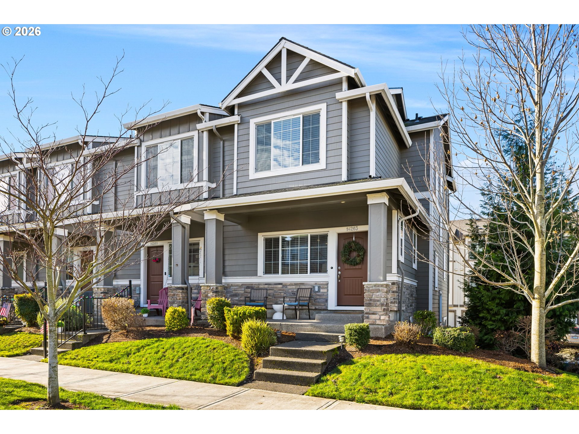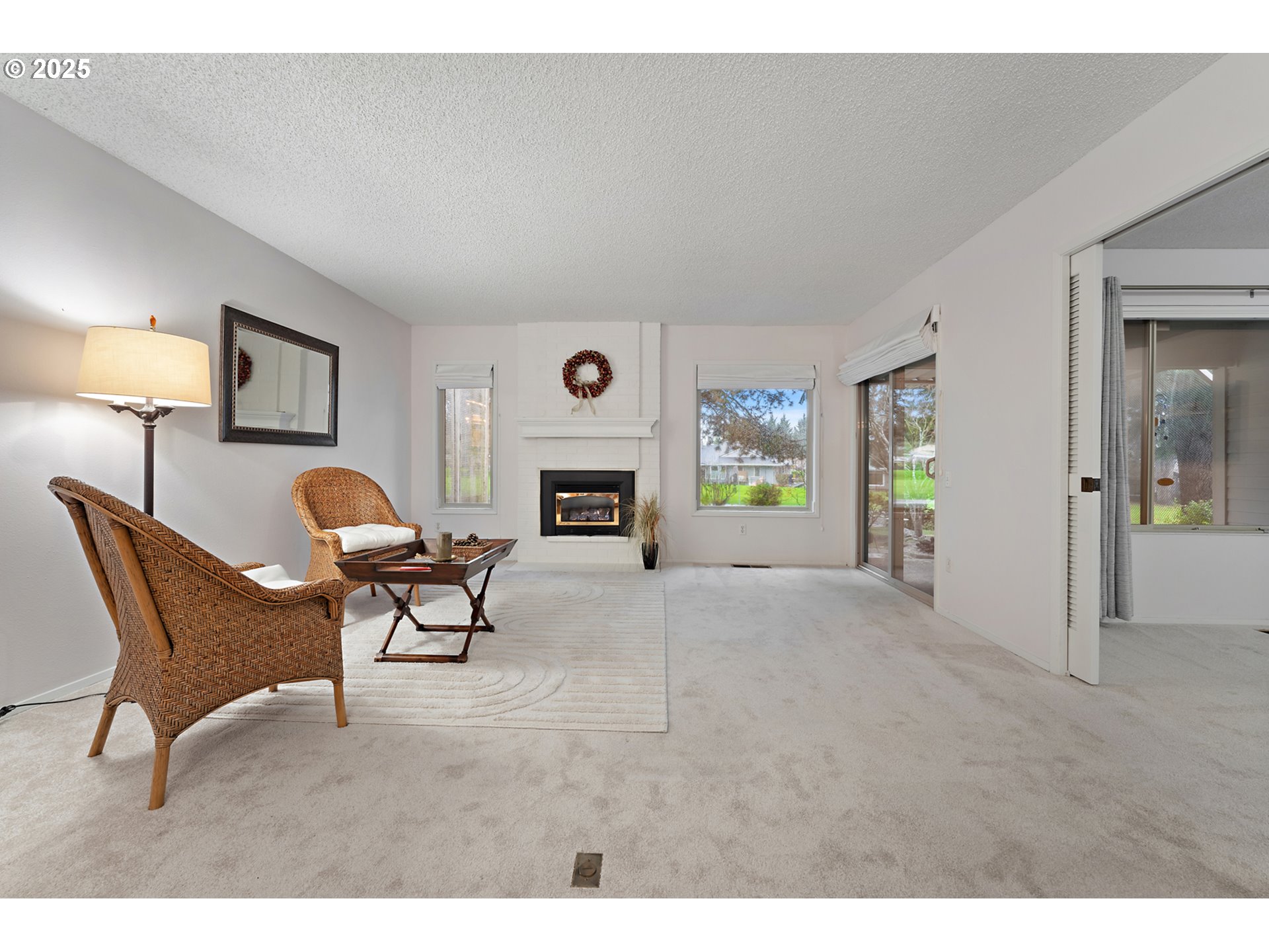 Comfortable single-level living tucked back from Summerfield's 1st fairway. Watch winter storms roll through from your favorite chair by the cozy gas fireplace. Good weather brings front-row views of golf action from spacious patio areas designed for relaxation and entertaining. This warm and inviting townhome offers a spacious primary ensuite with a walk-in shower and a view of the picturesque courtyard. The second bedroom easily doubles as an office or studio when you open the louvered pocket doors. A breakfast nook with built-ins, wood floors, and quartz countertops adds elegance and functionality to the kitchen. Multiple built-in garage storage cabinets, a brand-new electrical panel, an interior laundry, and an updated gas furnace enhance everyday living. Resort-style 55+ amenities—including golf, pickleball, swimming pool, and vibrant clubhouse events—are all just steps from your door. HOA provides basic cable TV & cares for front yard and exterior building maintenance, plus more.