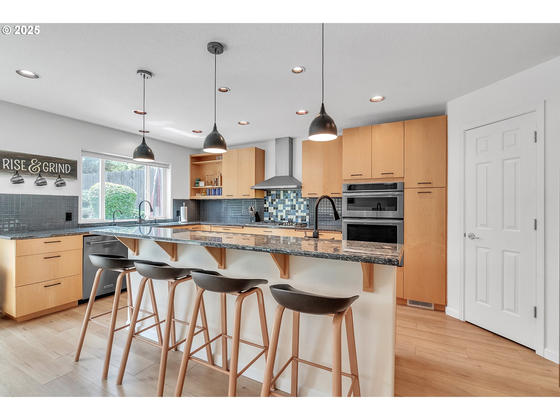 Experience luxury and functionality in this stunning 4-bedroom, 3-bath home spanning 3,551 sq. ft. Thoughtfully designed for comfort and convenience, this home boasts a bonus room with a wet bar, dedicated office space, and abundant storage. The beautifully manicured backyard features a luxurious Ipe wood deck perfect for unwinding. The primary suite offers a private deck, a Japanese soaking tub, and a spa-like bathroom with heated floors and a towel rack for ultimate comfort. Upstairs, a loft with built-in bookshelves provides a cozy retreat, while the spacious bonus room with a kitchenette is ideal for entertaining. This home is as efficient as it is elegant, featuring owned solar panels that ensure net-zero power costs—even during summer—along with two HVAC systems and two water heaters for year-round comfort. Expansive windows fill the home with natural light and showcase breathtaking sunrises and sunsets as well as a partial view of Mt. Hood. Backing to a scenic walking trail, the property offers direct access to nature, with serene ponds in both the front and back—perfect for birdwatching. The versatile floor plan is ideal for work-from-home families or those needing separate spaces for hobbies. A true blend of sustainability, luxury, and thoughtful design, this exceptional home is a must-see!