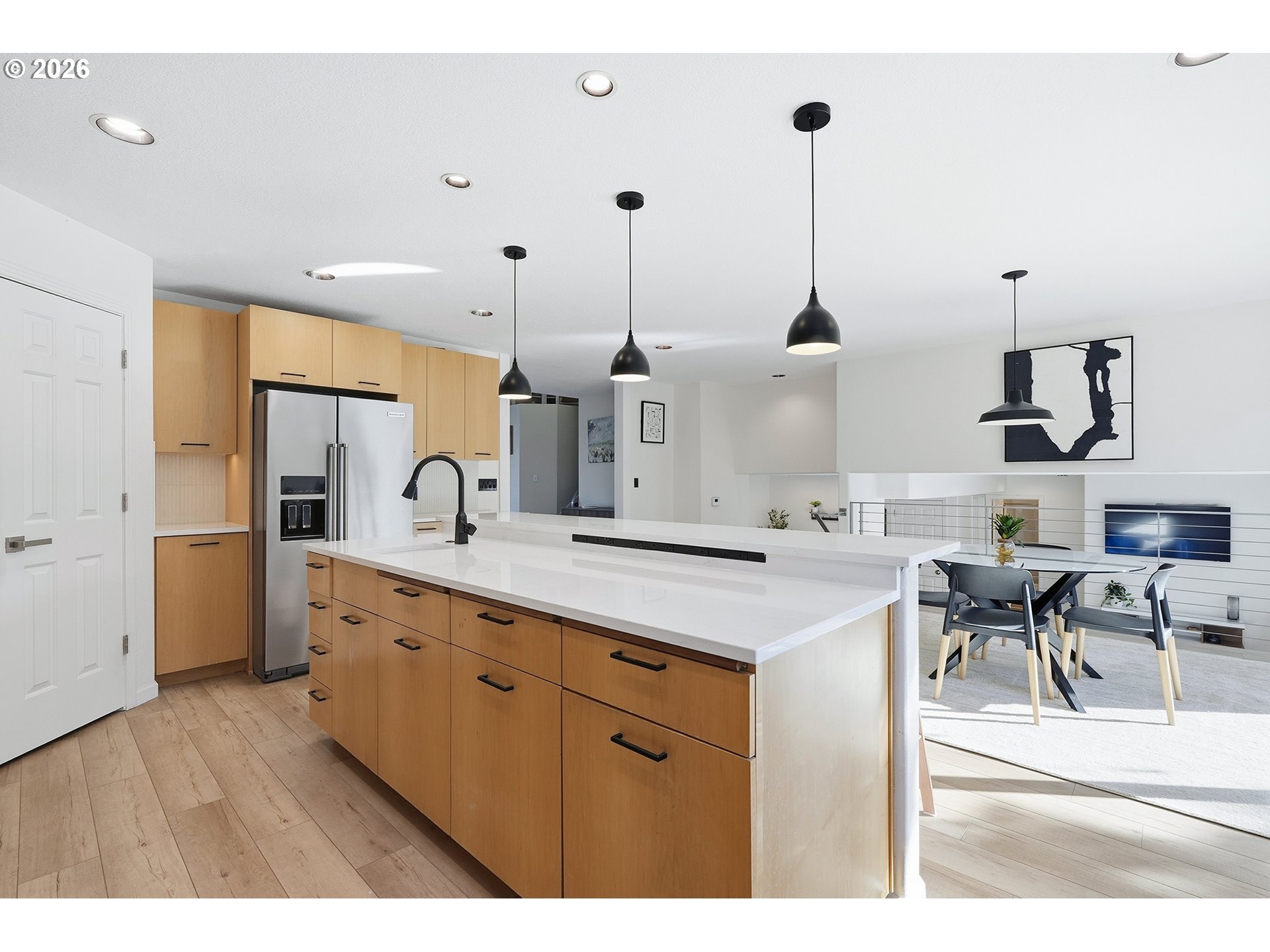 (503) 893-8874Perched up high with a pull-up peek-a-boo view of Mt. Hood, this Sexton Mountain modern home stuns from all sides. Morning light floods the east-facing, windowed, grand open entrance and living room. Anchoring the living and formal dining rooms together is a beautiful corner gas fireplace. Just left of the entryway up a short flight of stairs, you're greeted with a lofted office; the enclave surrounded w/ creative built-ins. The SE-facing corner primary also basks in morning light, further celebrated by a private balcony on the same corner for sunrises and coffee sippin’ mornings. The en-suite features dual walk-in closets/sinks, a Japanese soaking tub, spa-like shower, heated floor, and heated towel rack. Two more beds and bath share the floor along with a massive bonus room w/ wet bar/mini fridge, built-in surround sound, primed for a home theater/family room. At the heart of the home, an updated kitchen w/ sleek, elegant quartz counters and a tile backsplash accentuates the already abundant counter and overall kitchen space. Down below yet another flex/family space/guest suite w/ Murphy bed and bath w/ its own separate entrance/private patio. Outside an expansive, private backyard, meticulously manicured w/ Brazilian wood decking and fire pit offering multiple islands of outdoor entertainment. The yard also backs to the Westridge walking trail, offering acres of trails to traverse from the Nike headquarters to Bull Mountain and beyond. 2x HVAC and water heaters, fully paid-off solar saves hundreds, if not thousands, a year on energy costs. No HOA. Murray Hill, Progress Ridge are among the many amenities a few miles or less away. Sexton Elementary is a 20 min walk, and Mountainside High is one of the top schools in all of Oregon.