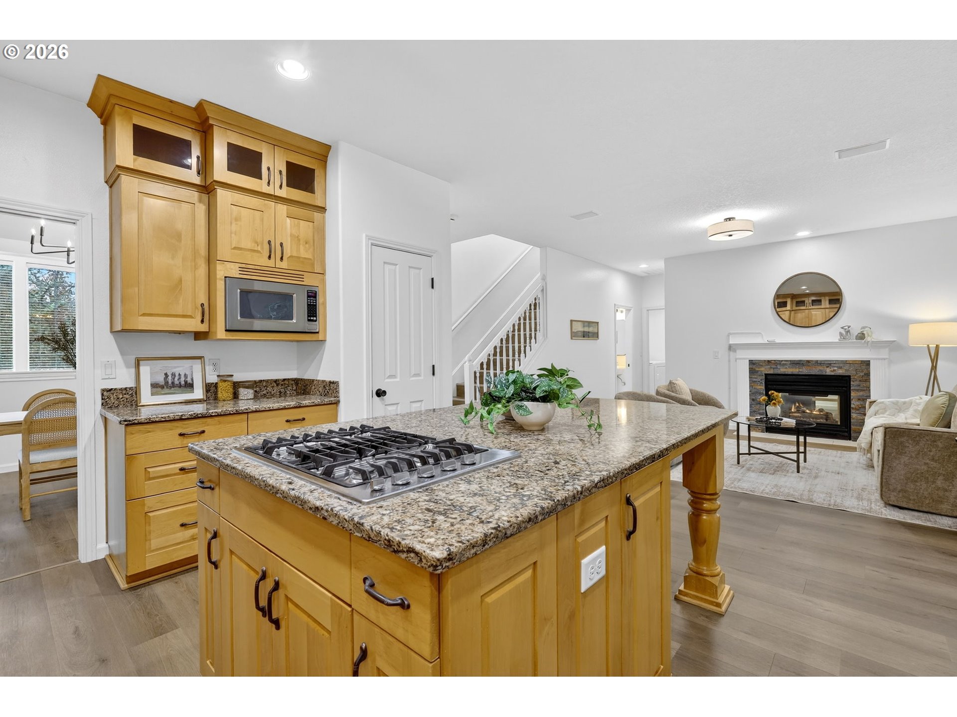 (503) 893-8874Extensively updated throughout and truly move-in ready, this 4 bedroom + den + bonus/media room, 2.5 bath home with a 3-car garage sits on a rare corner lot in one of the area’s most sought-after locations, just minutes from Progress Ridge, Murray Scholls Town Center, top-rated schools, parks, dining, high-tech employers, and major highways. The entire interior has been freshly painted and features brand-new luxury vinyl flooring throughout, along with updated interior and exterior lighting, plumbing fixtures, and hardware for a clean, cohesive look. Soaring ceilings and expansive windows flood the formal living and dining areas with natural light, framed by architectural columns that create openness while maintaining definition. The kitchen anchors the home with floor-to-ceiling cabinetry, granite countertops, a built-in wine rack, stainless steel appliances, a large pantry, and a generous center island with seating for four, built-in gas range cooktop, and an undermount sink with gooseneck faucet overlooking the backyard. The adjoining family room offers a fireplace and sliding patio doors that open to a fully fenced,landscaped yard with a retractable patio awning, perfect for everyday living and entertaining. A private main-level den with its own fireplace provides flexibility for a home office, guest room, or multi-generational setup. Upstairs, four spacious bedrooms plus a bonus room offer room to spread out, including a secondary bedroom with a walk-in closet and a primary suite featuring its own walk-in closet, soaking tub, separate shower, dual sinks, and private water closet. The extra-deep 3-car garage includes a substantial open loft platform above the interior entry with additional usable storage below, maximizing vertical space while keeping the garage fully functional. Buyer to verify square footage. Central A/C, appliances, and a Fidelity Comprehensive Plus home warranty are included. Schedule your showing today.
