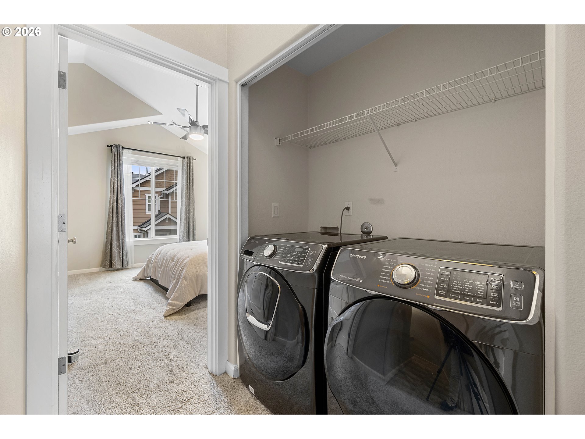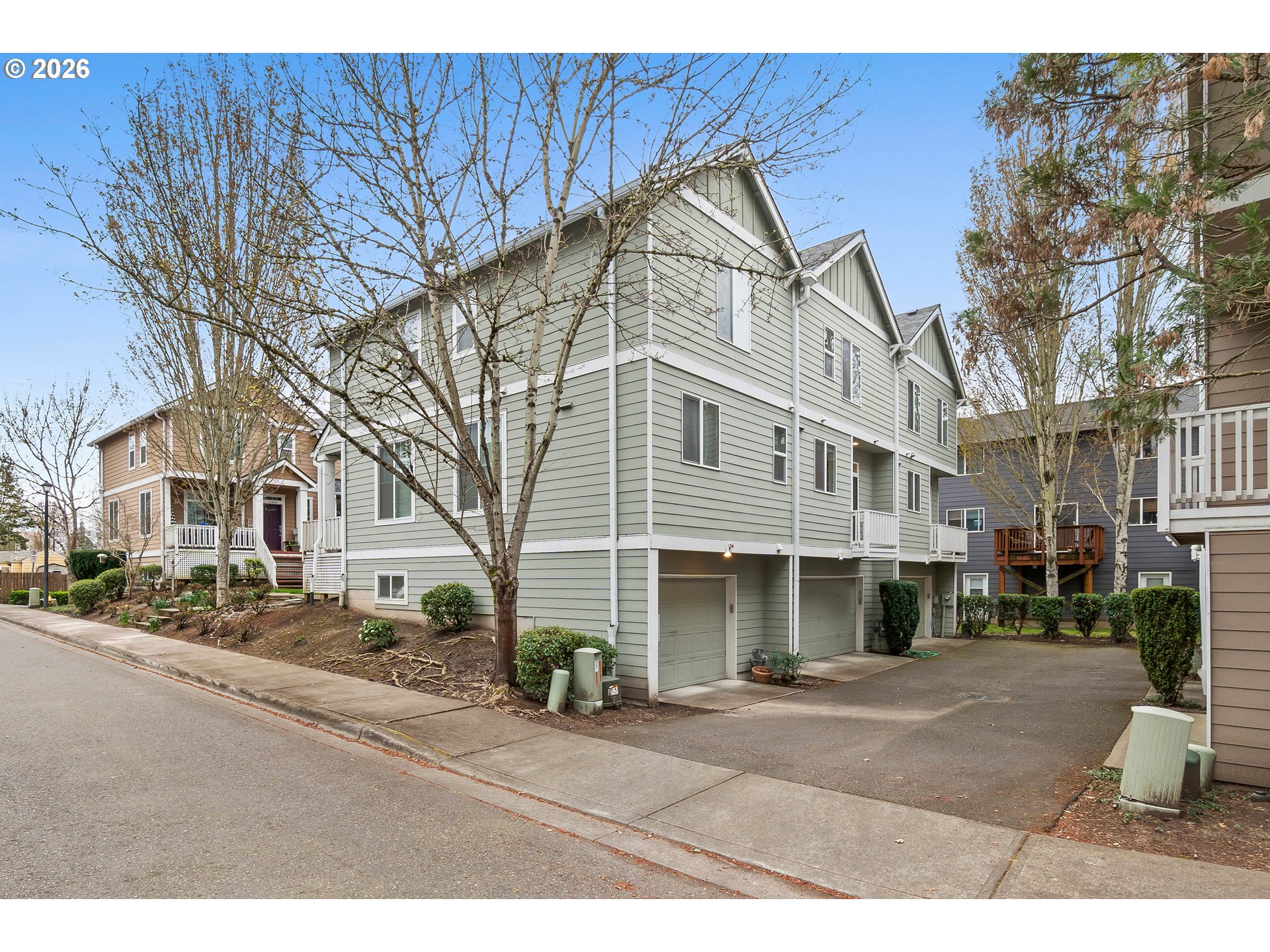 Beautifully maintained Beaverton townhome set on a quiet courtyard. This functional floor plan features an open concept main level with 9-foot ceilings. The kitchen is equipped with a gas range, built-in dishwasher, built-in microwave and free standing refrigerator - All stainless steel! An inviting gas fireplace adds warmth and ambiance to the living room. The dining room and living room both have a slider that leads to their own decks. The two ensuite bedrooms both have vaulted ceilings with ceiling fans. Upstairs laundry - Washer and dryer included! The lower level bonus room provides flex space for a home office, gym, or media room. The 2-car attached garage has shelving and storage space. Forced air heat and a/c unit. Hot water heater replaced in 2021 and roof replaced in 2023. Conveniently located near Nike, Costco, Tualatin Hills Parks & Rec and freeway access.