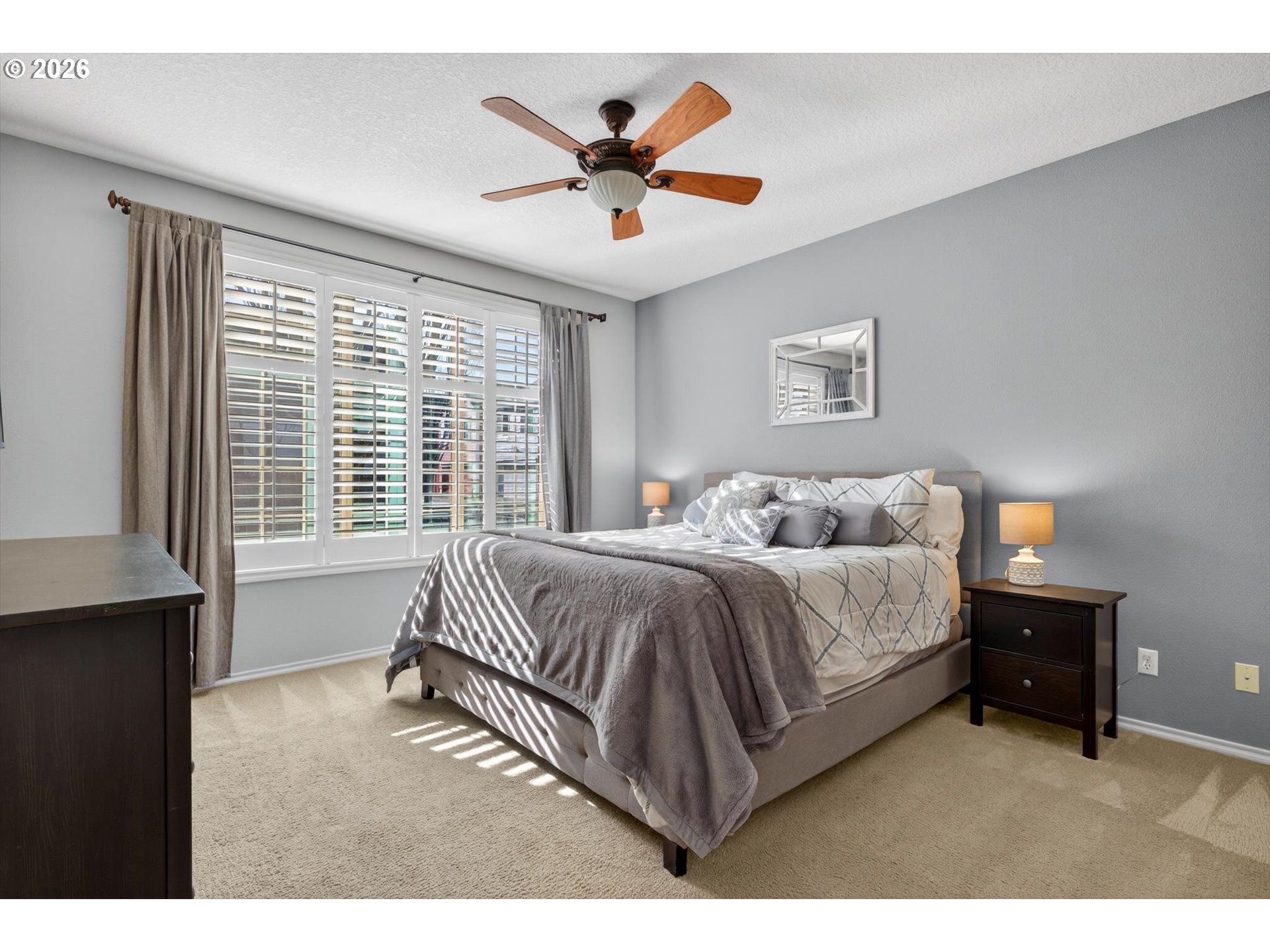 Welcome home to this gorgeous two story craftsman style home located in the heart of Sherwood. The open floor plan with high ceilings and lots of windows offers an abundance of natural light. Spacious living room with gas fireplace and custom plantation shutters throughout. Cherry hardwood floors on the main level. The gourmet kitchen features granite counter tops, stainless steel appliances, newer refrigerator, cherry wood cabinets, and pantry. Three large bedrooms plus loft and 2 1/2 bathrooms. The primary suite is on the main level. The upstairs loft has built-in desk which is ideal for home office. The third bedroom can also be used as a media room. Laundry room upstairs with sink and lots of cabinet space. Fenced yard with covered Trex deck and gas plumbed for BBQ. Air conditioning, 2 car garage, Ring doorbell, programable thermostat, censored windows and doors. HOA maintains the front yard, sprinklers. Cable included. 2nd refrigerator and washer/dryer negotiable. Located close to shops, parks and schools. This home has it all!