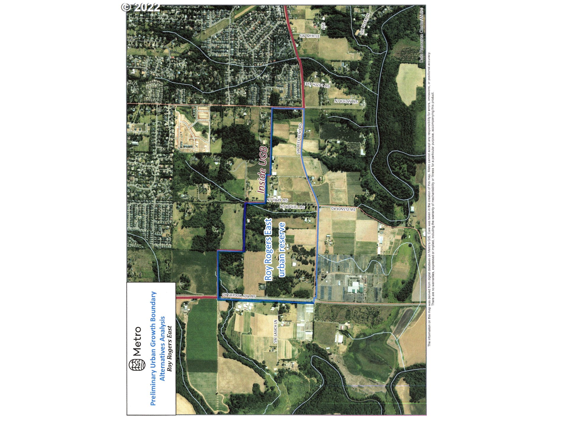 Prime 9.7 acre residential development land, just annexed into the Urban Growth Boundary in February 2023. Very gently sloping northward, just south of Tigard's new Art Rutkin Elementary School & River Terrace Development. Current zoning is EFU/AF20. Existing house a tear down. Properties located on the south side of Beef Bend Rd are already inside UGB: King Cities Kingston Terrace - master plan in process. The City of Tigard is developing a plan for the River Terrace 2.0 with emphasis on the "missing middle" residential housing market. Contact the City of Tigard for further details