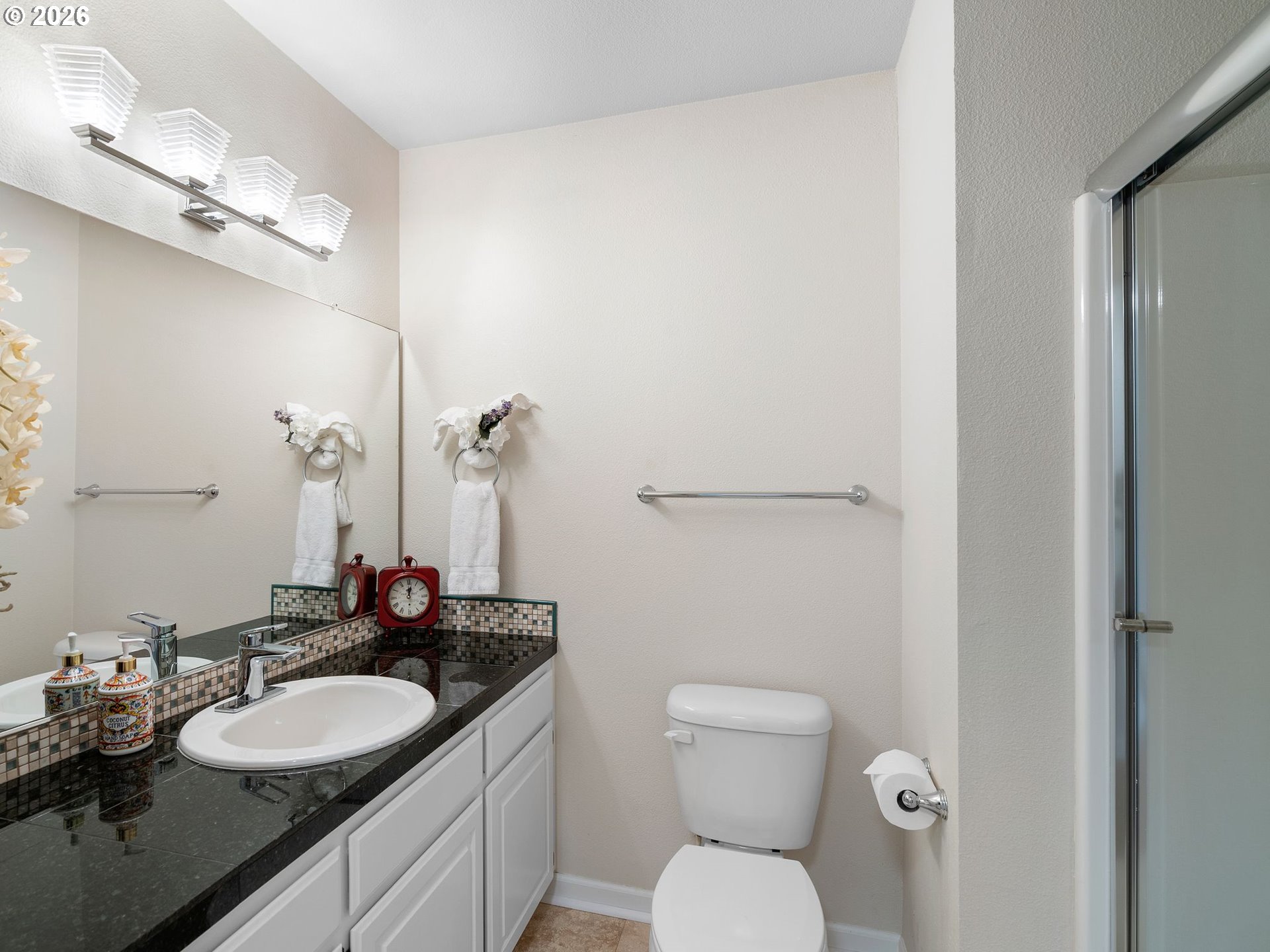 Fall in love the moment you arrive at this turnkey retreat in the highly sought-after Charlais neighborhood. Bathed in natural light, the home welcomes you with gleaming hardwood floors and a cozy wood-burning fireplace that beautifully anchors the family room. Meticulously maintained, the residence showcases an impressive list of high-value upgrades: a new water heater and professionally landscaped front yard (2025); a new furnace (2020); and in 2017, new flooring, fresh interior and exterior paint, modern light fixtures, custom moldings and wainscoting, stainless steel appliances, granite countertops in the chef’s kitchen, and fully remodeled bathrooms. Additional improvements include new siding (2005) and a new roof (2010).The primary suite is a true sanctuary, featuring a spacious sitting area, dual vanities, and a walk-in shower. Outside, the fully fenced backyard and private deck create the perfect backdrop for summer barbecues, quiet mornings, or gardening.Ideally located just a short stroll from John Marty Park, THPRD trails, Claremont Golf Course, and local shopping, this home seamlessly blends comfort, convenience, and an active lifestyle.