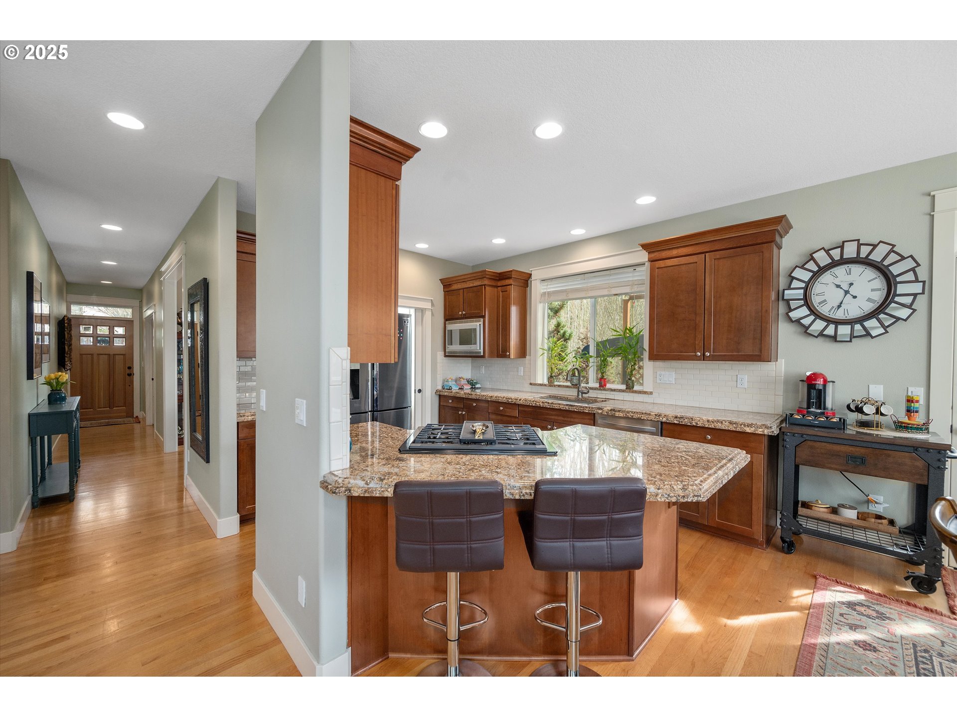 This lovely space offers the perfect blend of sophistication and comfort, featuring an open floor plan with high ceilings and loads of natural light. The abundance of windows, wood floors, and rich cherry wood cabinetry all contribute to this home's timeless style. The kitchen and bathrooms are beautifully appointed with ogee-edge granite countertops, adding a touch of luxury throughout. The spacious primary suite is a true retreat, complete with a relaxing jet tub and spacious walk-in closet. A convenient office on the main floor is perfect for remote work or quiet study. Ideally located just minutes from Portland, shopping, WA Square Mall, and Cinetopia, this home offers unparalleled convenience. Come see for yourself why this home is the perfect place to call your own.