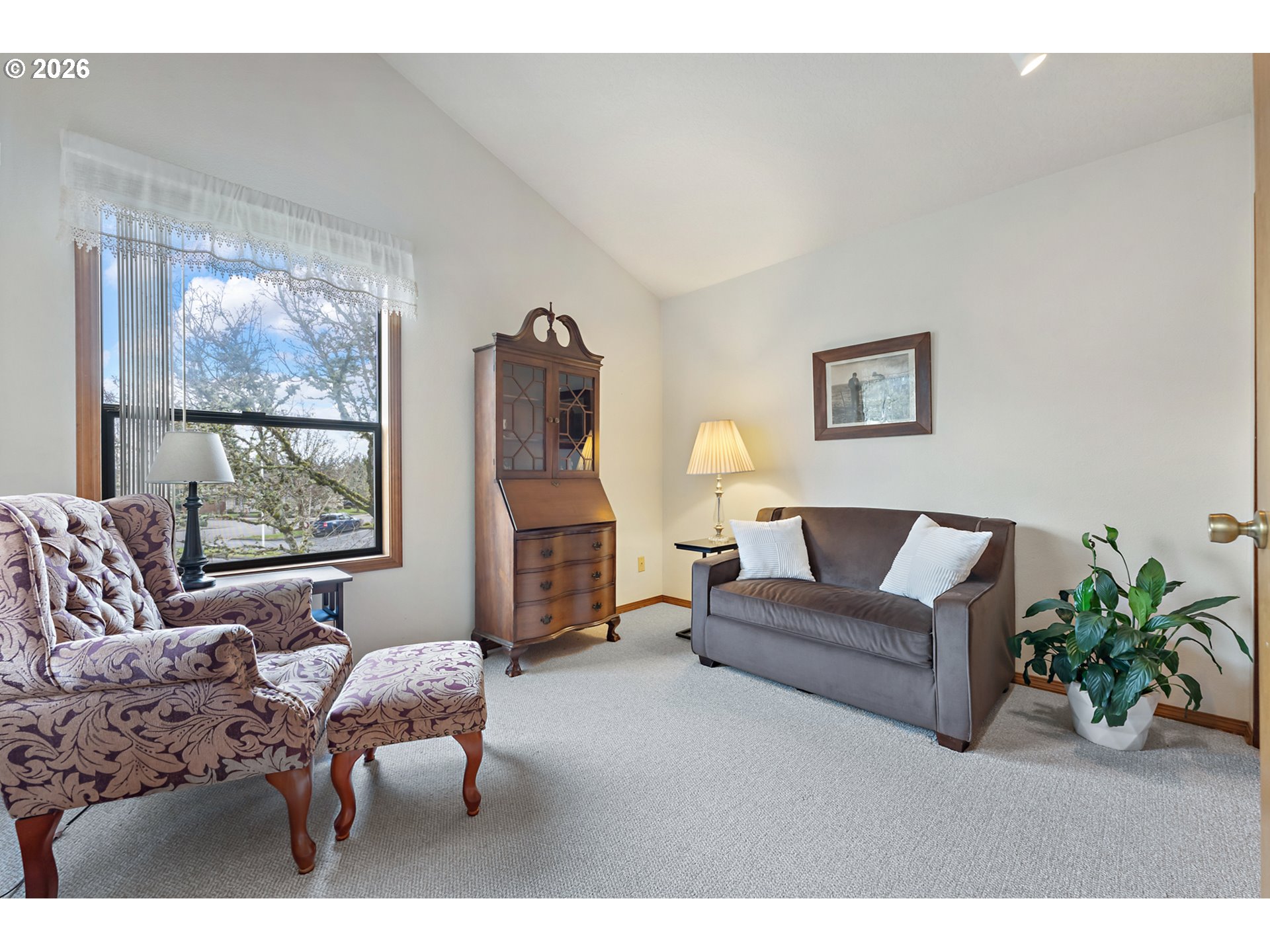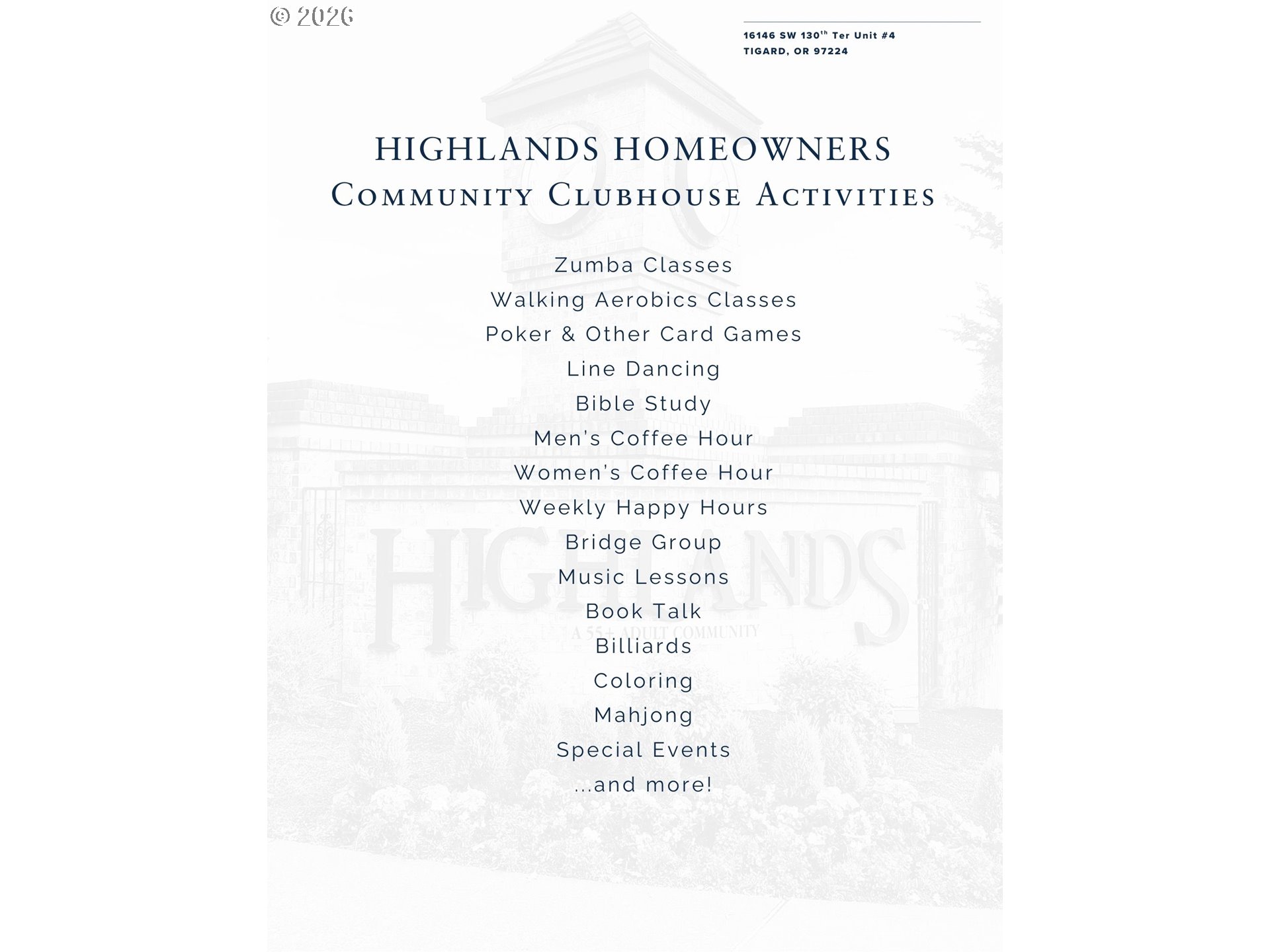 Welcome to The Highlands, a vibrant, friendly and active 55+ Adult Community. Flooded with sunshine and good vibes, this single story 2 bedroom condo lives large! Vaulted ceilings, an open, flowing floor plan and plenty of storage. Beautifully maintained and move in ready with newer appliances, water heater and more. Cozy & comfortable with both a gas fireplace and A/C. A delightful east facing covered deck is perfect for a little garden, entertaining and enjoying the morning sunshine. Detached garage just outside the door. Community amenities include extensive, manicured walking paths, an elegant and welcoming clubhouse for gathering, and many social opportunities. This truly is easy living.