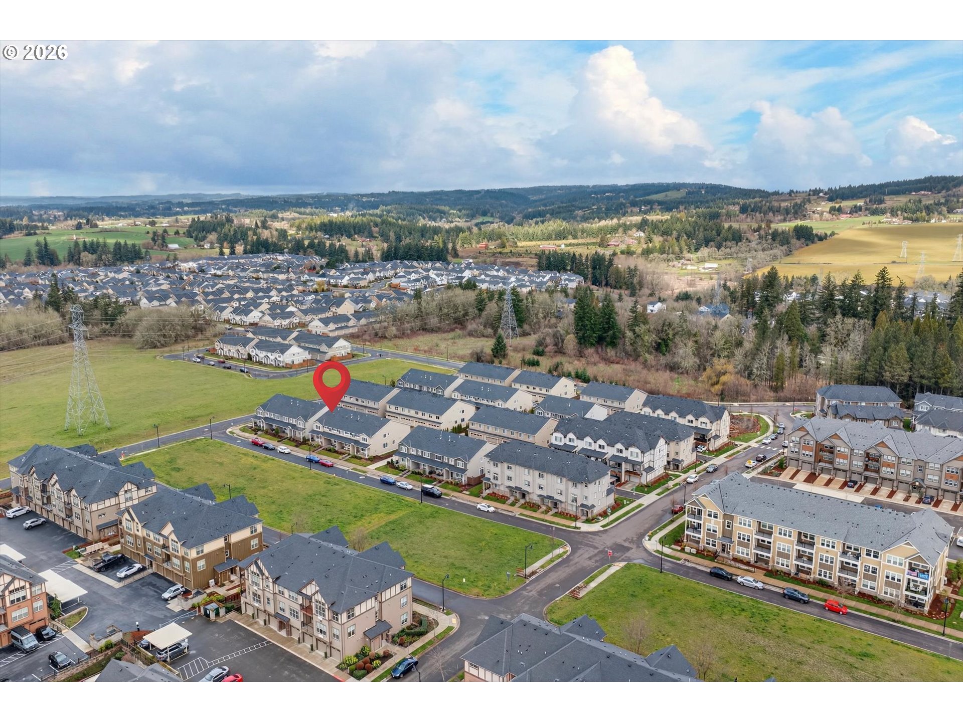 Light-filled corner townhome with 1,932 sq ft --great room floor plan. 3 bedrooms + 2.5 bathrooms and spacious loft. Living room with gas fireplace opens to the kitchen with large island, quartz countertops and stainless steel gas appliances. Upstairs you'll find the large primary suite with dpuble sinks, soaking tub and walk-in closet plus two additional bedrooms, a guest bath and generous loft — ideal for a home office or additional living space. South-facing with greenspace views and covered front porch. Attached two-car garage. Low HOA – $199/month, covering exterior maintenance, insurance and front yard landscaping. Great schools: Sato, Stoller and Westview.
