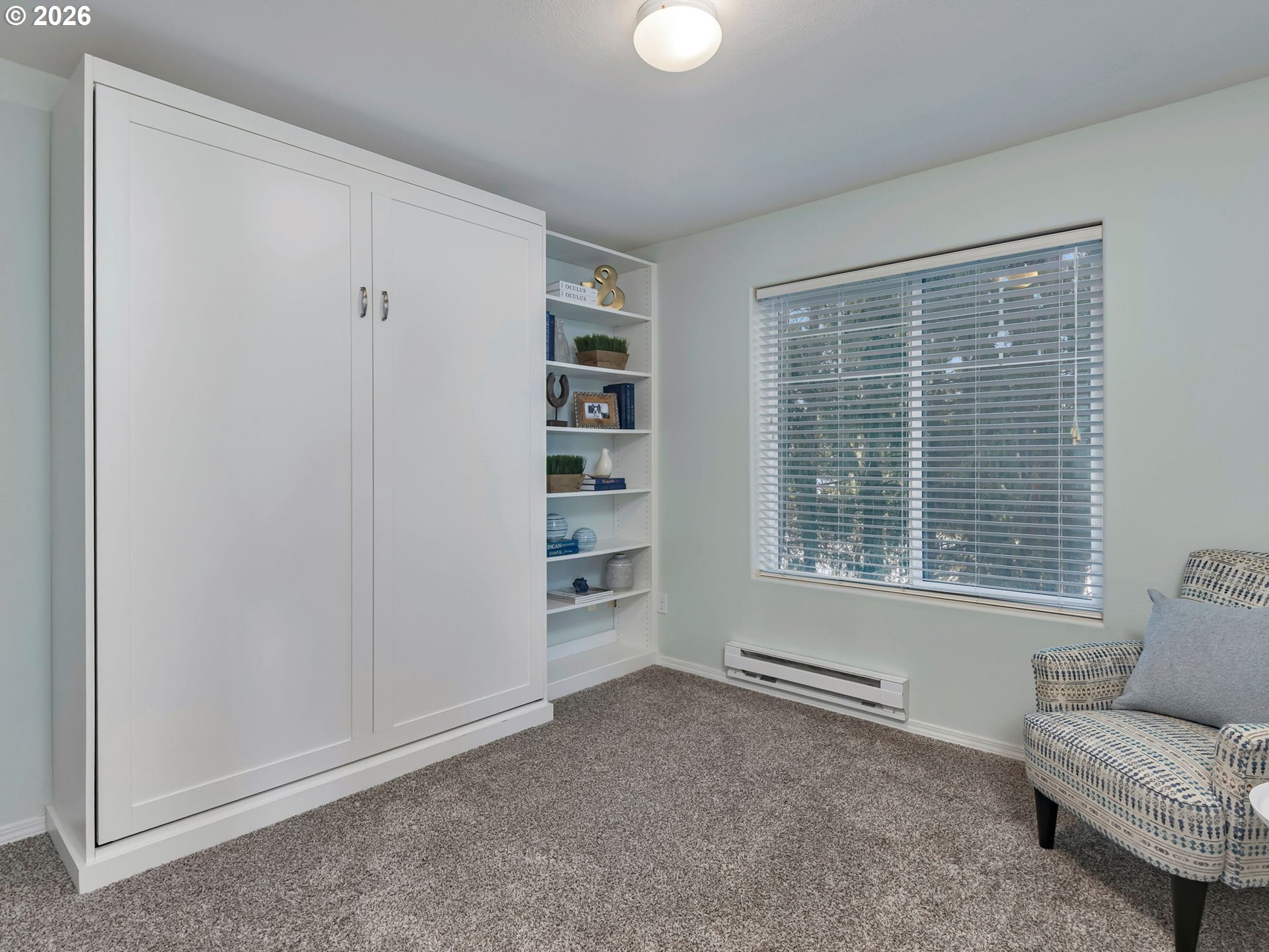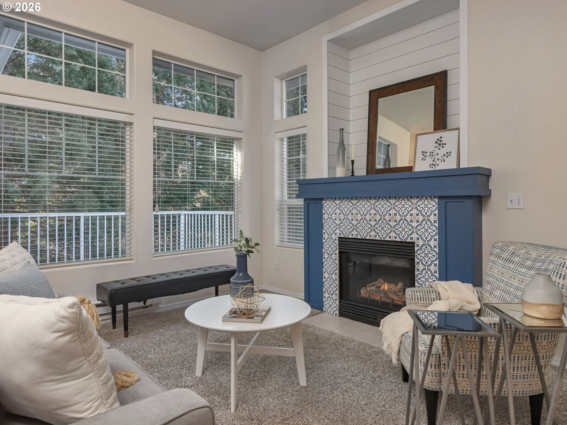 Discover easy living in this light-filled 2-bedroom, 2-bath corner condo, ideally situated in a sought-after Beaverton location. With 10-foot ceilings and an open layout, the main living space feels bright, airy, and perfectly suited for today’s lifestyle.The living room offers a welcoming atmosphere with a gas fireplace accented by distinctive hand-painted tile—adding character and charm. In the kitchen, you’ll find bamboo flooring, stainless steel appliances, and a custom tile backsplash that blends style with functionality for both daily living and entertaining.Enjoy your own private balcony, a perfect spot to unwind or start your day with a cup of coffee.The flexible second bedroom is ideal for a home office and easily transforms into a comfortable guest room with a queen-size Murphy bed. The primary suite features a spacious walk-in closet and a beautifully updated walk-in shower.This move-in ready home also includes a one-car attached garage with extra storage, plus a washer and dryer that are just a year old.Ideally located a short distance from the Tualatin Hills Nature Park and the Westside Regional Trail, and just minutes from Nike, Intel, MAX Light Rail, Costco, and Cedar Hills Crossing, you’ll enjoy the perfect balance of outdoor access and everyday convenience.A perfect combination of comfort, style, and location—this is one you won’t want to miss. Broker related to Seller/Owner.