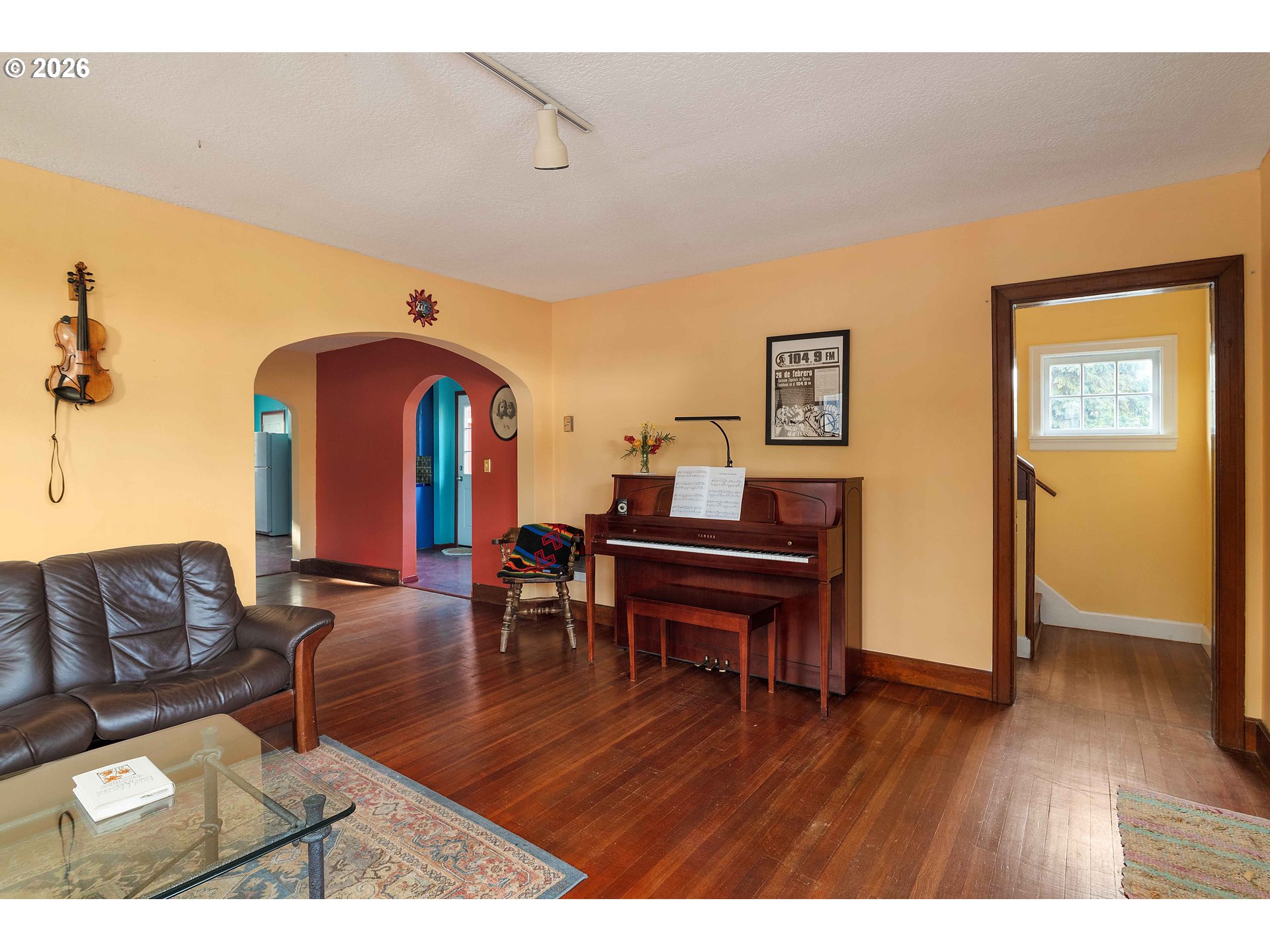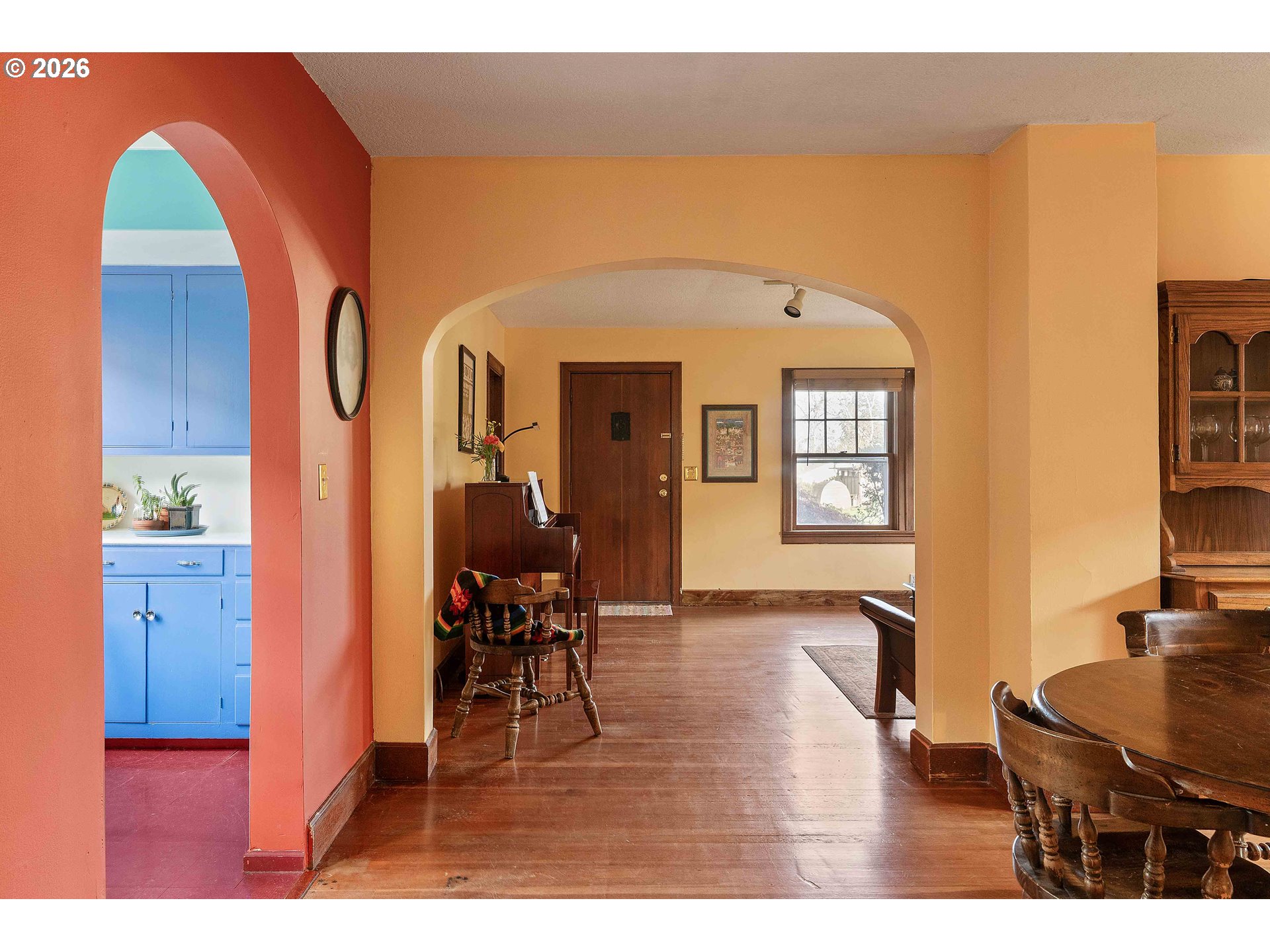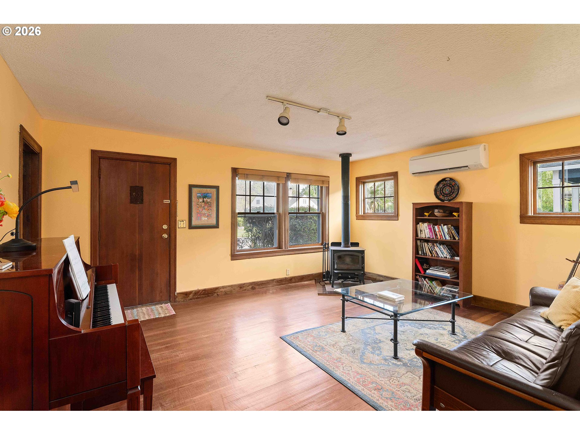 Built in 1920, this cottage carries a special kind of character: fir floors, original windows, arched doorways, and rooms shaped with intention. Thoughtful updates, including an on-demand water heater and mini-split heating and cooling, bring ease to the everyday. The main level unfolds through a series of connected spaces: living room with classic wood stove, formal dining room, breakfast nook, family room, kitchen with pantry and custom tilework plus, a main-level primary bedroom and attached, oversize one car garage. Upstairs, two oversized bedrooms and a flexible landing create room for guests, work, or retreat. Out back, an expansive yard opens wide with space to garden, gather, and watch the seasons. Some homes impress at first glance, others stay with you for years, then call you back. A short stroll to Pacific University, coffee, restuarants and trails.