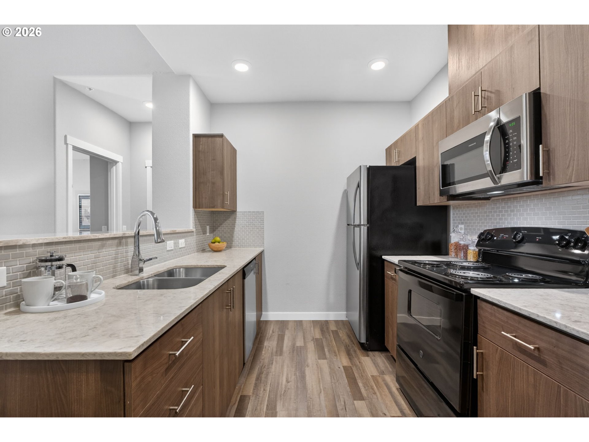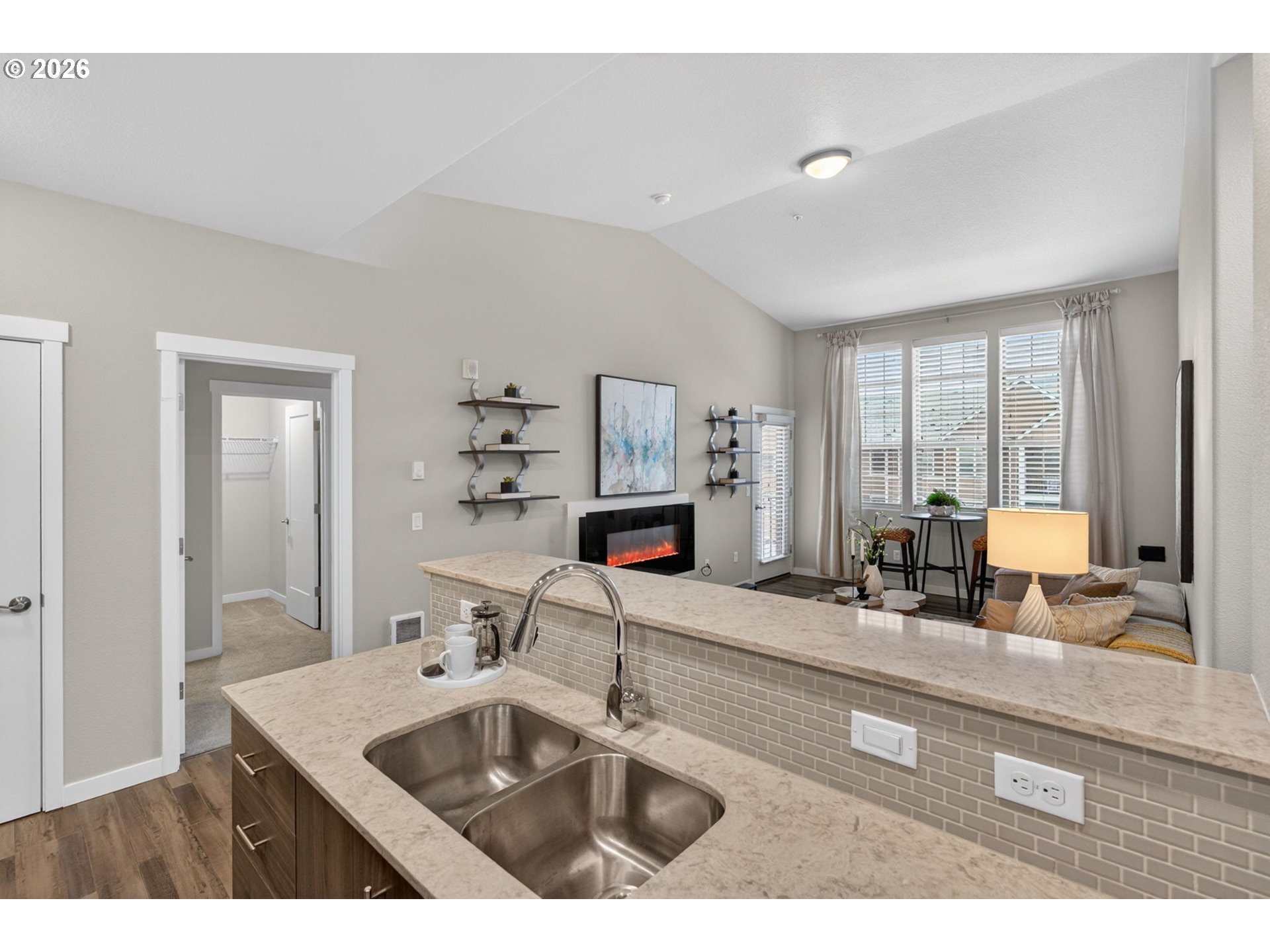 Open house Sat 4/18 1-3pm. Call LA for access information.Welcome home to easy living in this meticulous and luxurious home. You will love the high ceilings, light filled open spaces and high end finishes through out.The kitchen boasts of quartz countertops and stainless steel appliances. It opens to a generous living space adorned with an electric fireplace and access to a covered balcony to enjoy the clips of territorial views and the spring sunshine!The primary ensuite presents with a full bath, including a soaking tub and a walk in closet for additional storage. The second bedroom provides an in home office or guest room. All appliances including a full washer and dryer are included in the sale. This home includes an spacious garage and it is conveniently located to the right of the entrance to the building. This is a quiet community, close in to Bethany Village, Nike,Intel, top rated schools and easy, quick freeway access. This one is truly a gem and a great value!