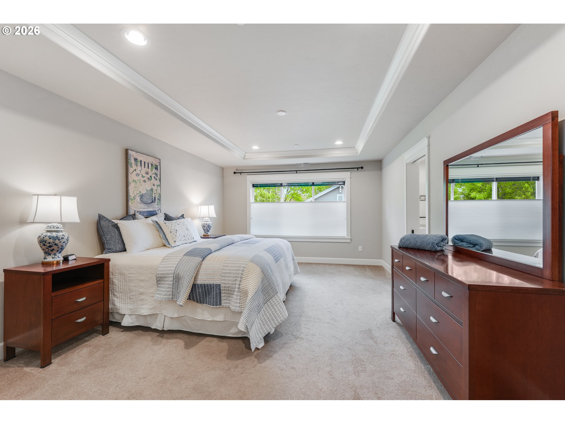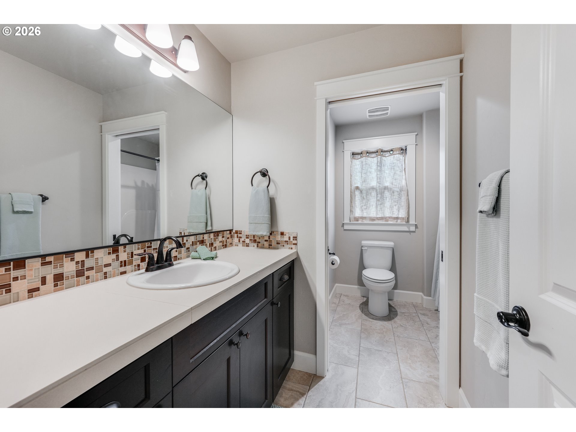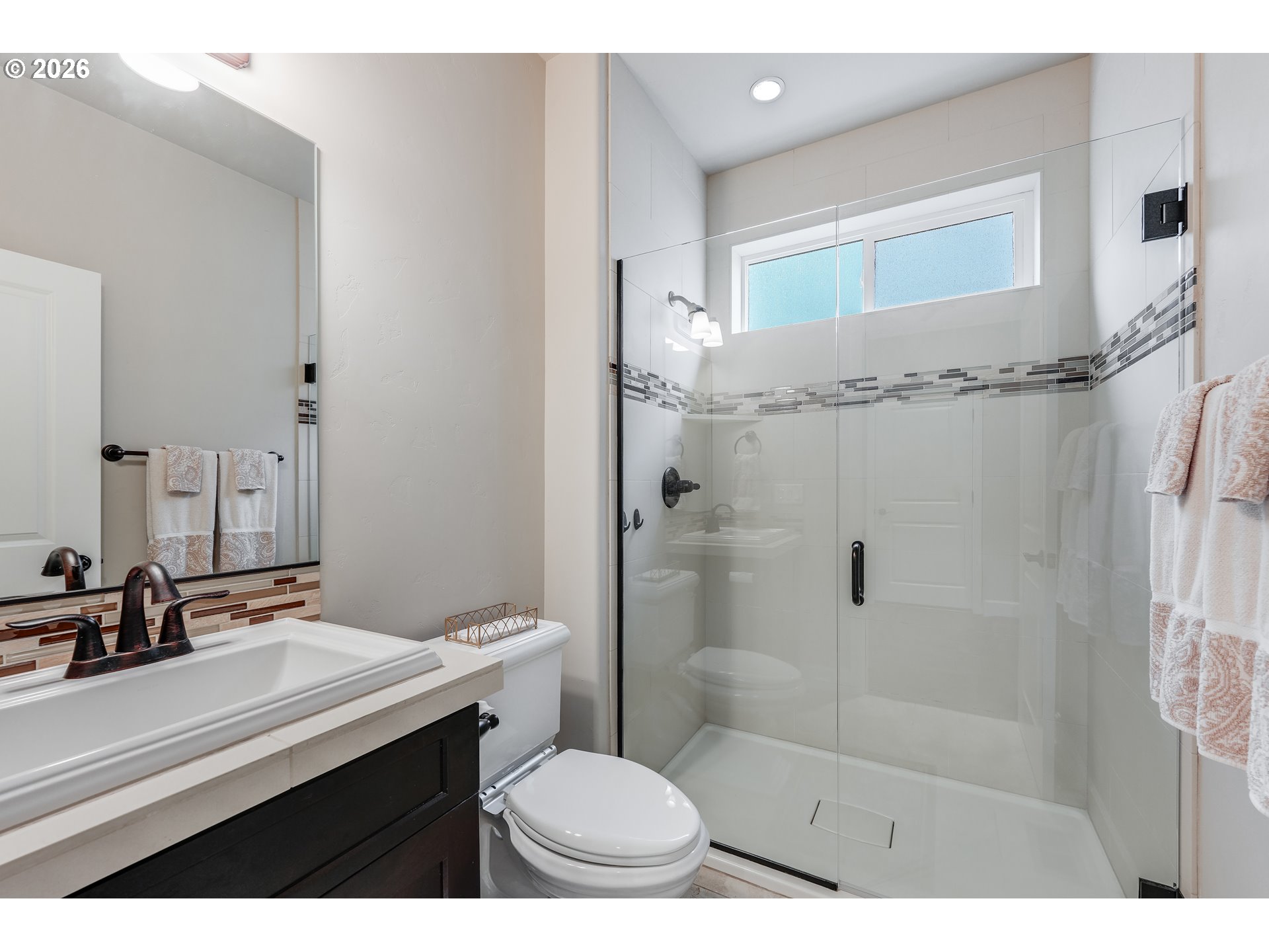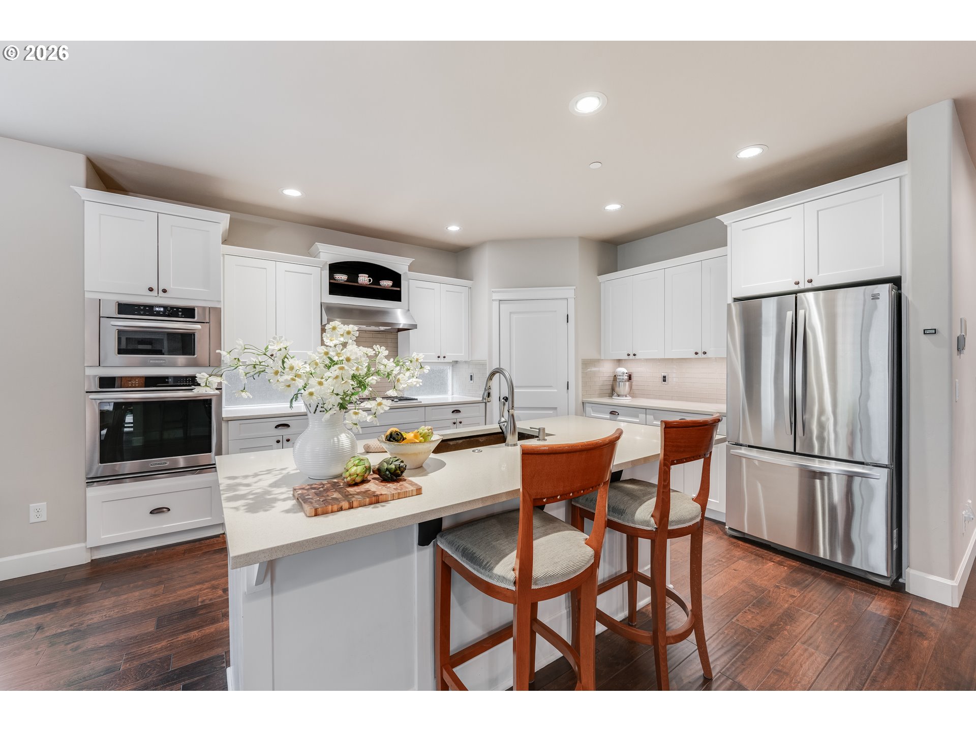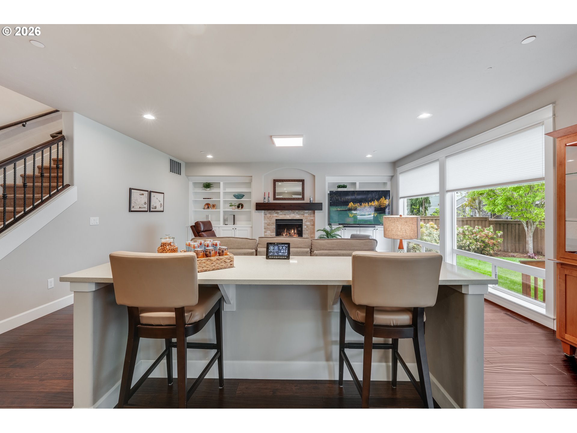 Built by Pahlisch Homes in 2014, this beautifully maintained 4-bedroom, 3-bath home in Orenco Station offers flexible living, thoughtful upgrades, and exceptional garage space rarely found in the neighborhood. Warm wood floors welcome you into the foyer, where a main-level bedroom or office sits adjacent to a full bath with walk-in shower—ideal for guests, multi-generational living, or working from home. The open-concept great room features a cozy gas fireplace, built-in bookshelves, and a spacious kitchen with quartz countertops, built-in microwave, water filtration system, and easy flow into the dining area—perfect for everyday living and entertaining alike. Step outside to the large covered patio, flagstone pathways, and sprinkler-supported landscaping designed for easy outdoor enjoyment year-round. Upstairs offers a generous bonus room, additional bedrooms, full bath, and a spacious primary suite retreat with soaking tub, walk-in closet, glass enclosed shower, and private water closet. The upstairs laundry room adds everyday convenience, and the washer, dryer, and refrigerator are included. A standout feature of this home is the heated and insulated 4-car garage with heavy epoxy floor coating, built-in workspace in the fourth bay, and utility sink—ideal for hobbies, storage, projects, or extra vehicles. Additional highlights include central air conditioning, central vacuum, recirculating hot water system, fire suppression system, and pre-wiring for solar. Located in the highly desirable Orenco Station community near parks, shopping, dining, and transit, this home combines comfort, flexibility, and modern efficiency in one exceptional package. Open Saturday from 1-3.
