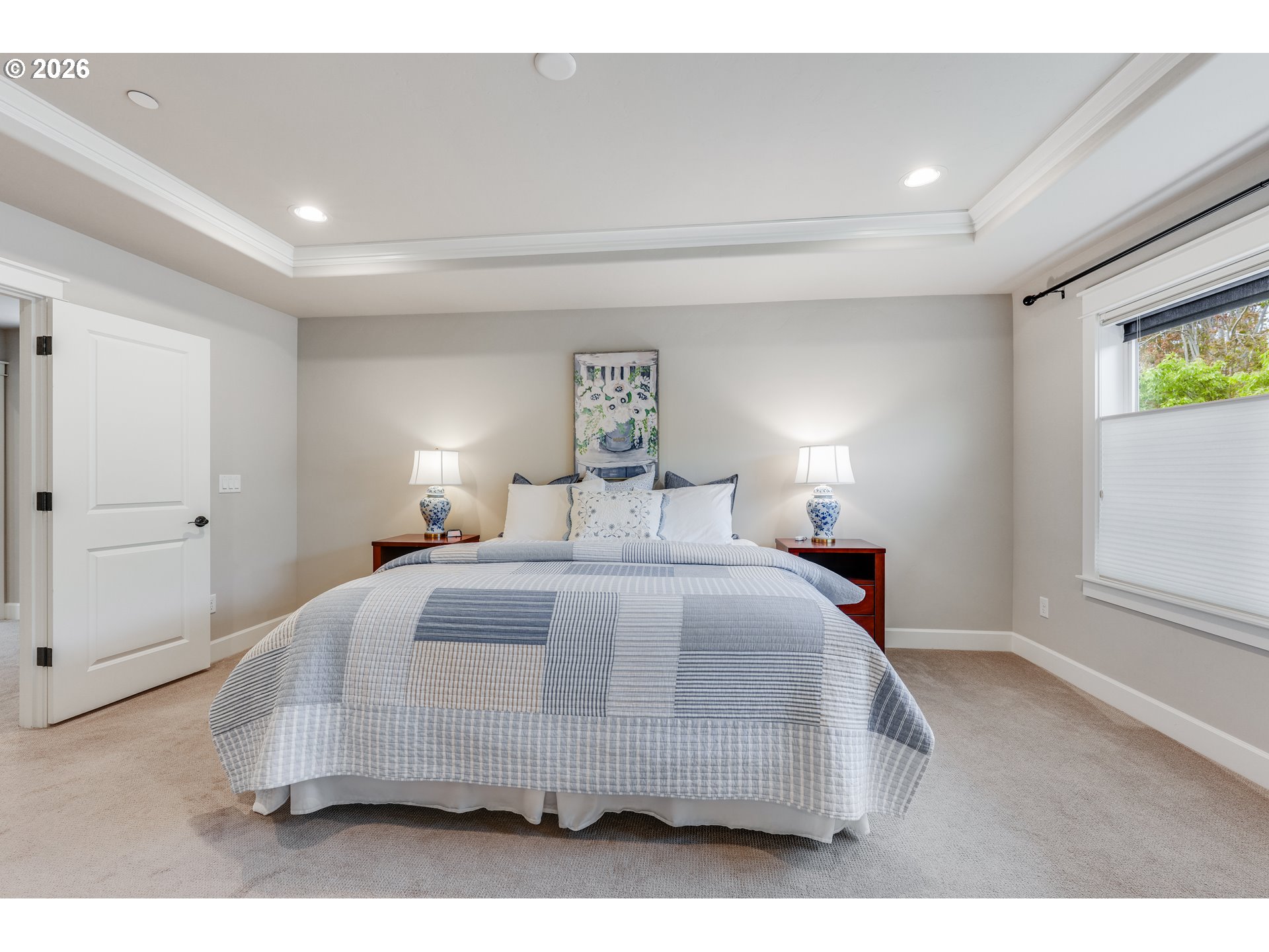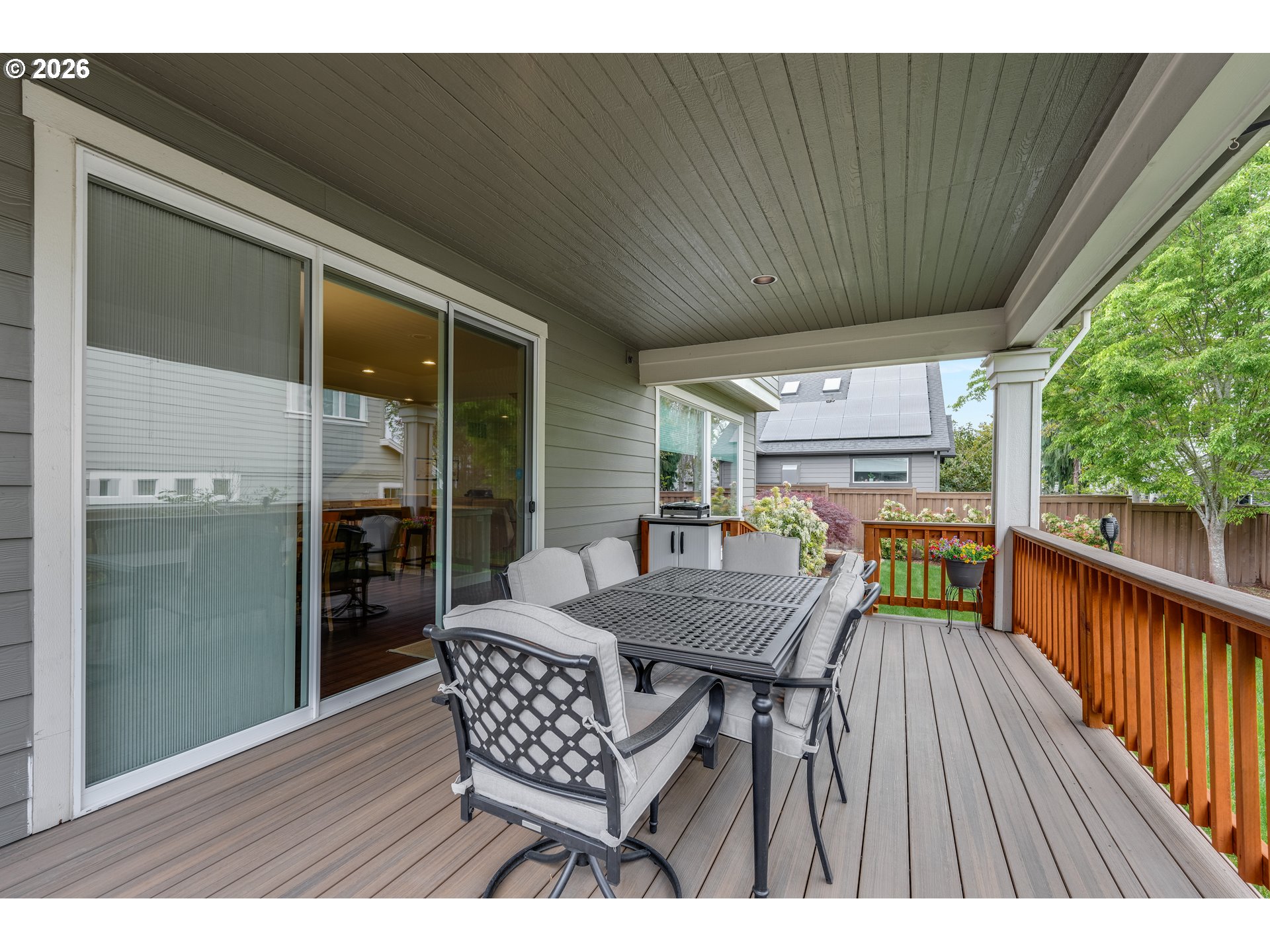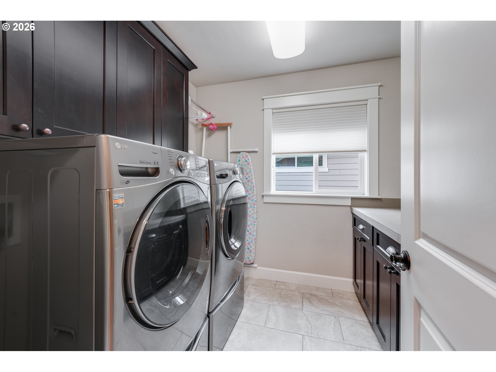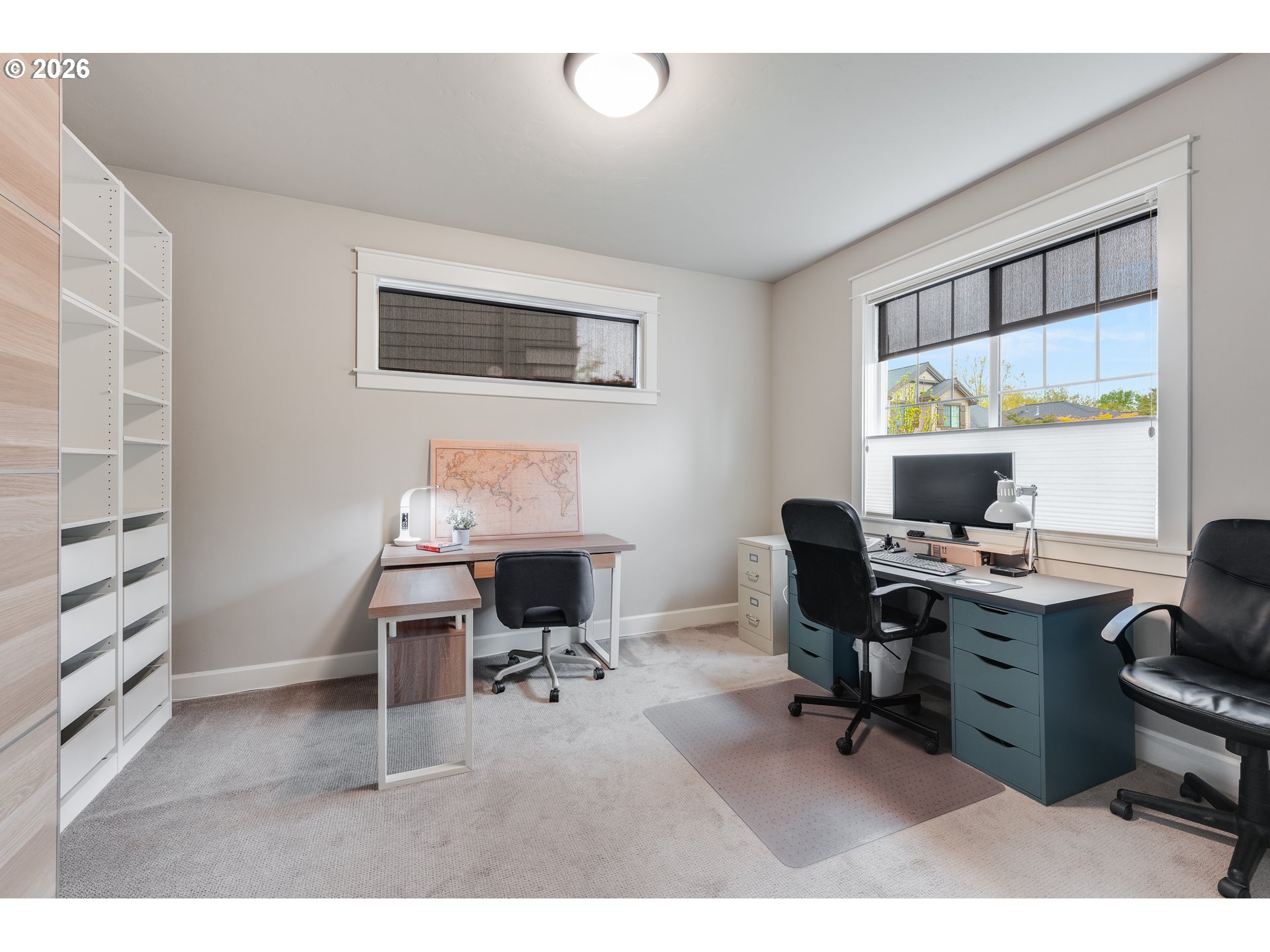 Built by Pahlisch Homes in 2014, this beautifully maintained 4-bedroom, 3-bath home in Orenco Station offers flexible living, thoughtful upgrades, and exceptional garage space rarely found in the neighborhood. Warm wood floors welcome you into the foyer, where a main-level bedroom or office sits adjacent to a full bath with walk-in shower—ideal for guests, multi-generational living, or working from home. The open-concept great room features a cozy gas fireplace, built-in bookshelves, and a spacious kitchen with quartz countertops, built-in microwave, water filtration system, and easy flow into the dining area—perfect for everyday living and entertaining alike. Step outside to the large covered patio, flagstone pathways, and sprinkler-supported landscaping designed for easy outdoor enjoyment year-round. Upstairs offers a generous bonus room, additional bedrooms, full bath, and a spacious primary suite retreat with soaking tub, walk-in closet, glass enclosed shower, and private water closet. The upstairs laundry room adds everyday convenience, and the washer, dryer, and refrigerator are included. A standout feature of this home is the heated and insulated 4-car garage with heavy epoxy floor coating, built-in workspace in the fourth bay, and utility sink—ideal for hobbies, storage, projects, or extra vehicles. Additional highlights include central air conditioning, central vacuum, recirculating hot water system, fire suppression system, and pre-wiring for solar. Located in the highly desirable Orenco Station community near parks, shopping, dining, and transit, this home combines comfort, flexibility, and modern efficiency in one exceptional package. Open Saturday from 1-3.
