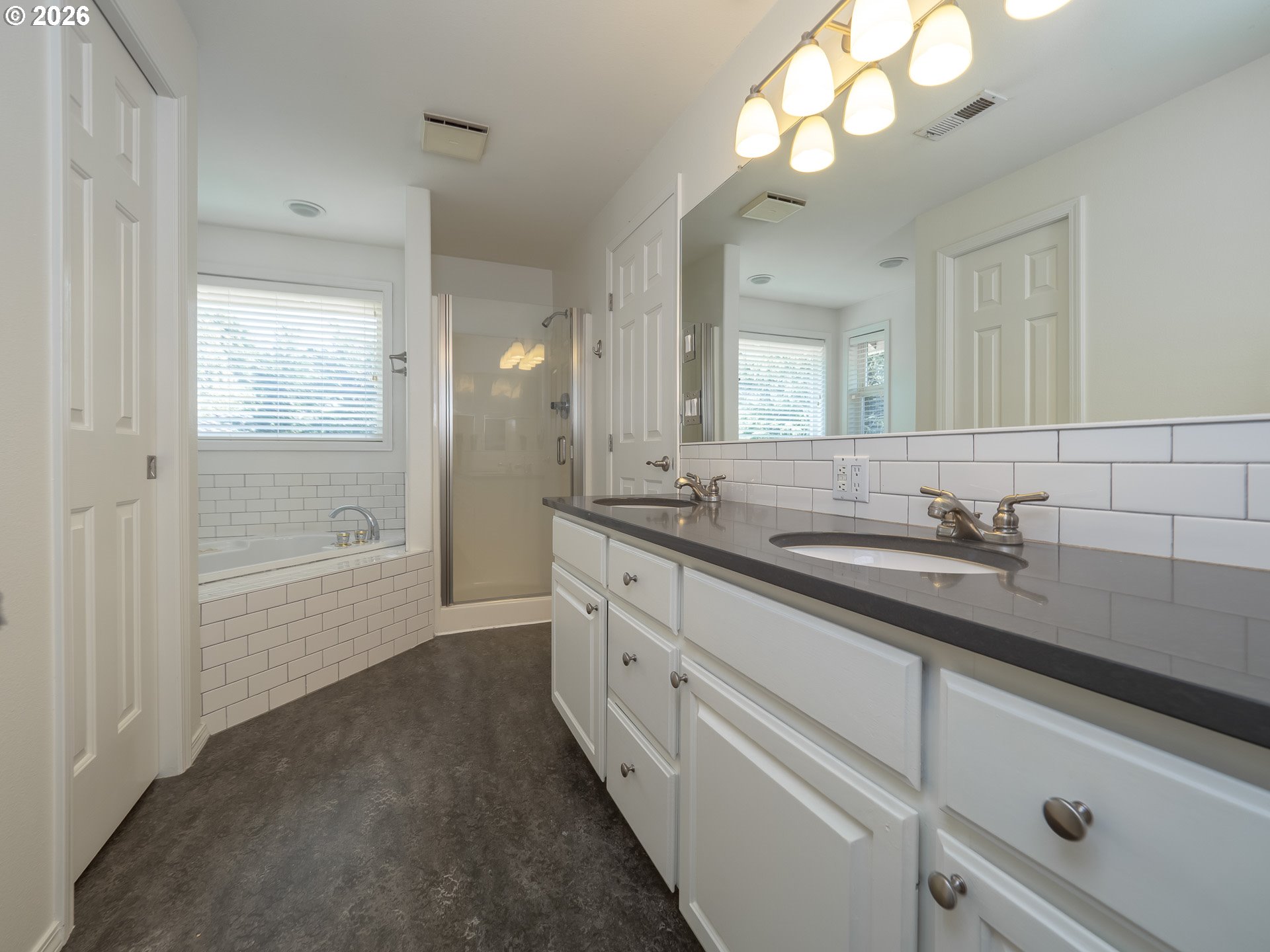 Light-filled and thoughtfully designed, this home offers a functional layout centered around inviting living spaces. The open kitchen features an island, gas cooktop, and seamless flow to the living room and backyard—ideal for everyday living and entertaining. Enjoy a fully fenced, large backyard with stamped concrete patio. Upstairs, the spacious primary suite includes double vanities, tub, and walk-in closet. Updates include new carpet, siding (2021) and furnace (2017). Near parks, trails, and top schools.