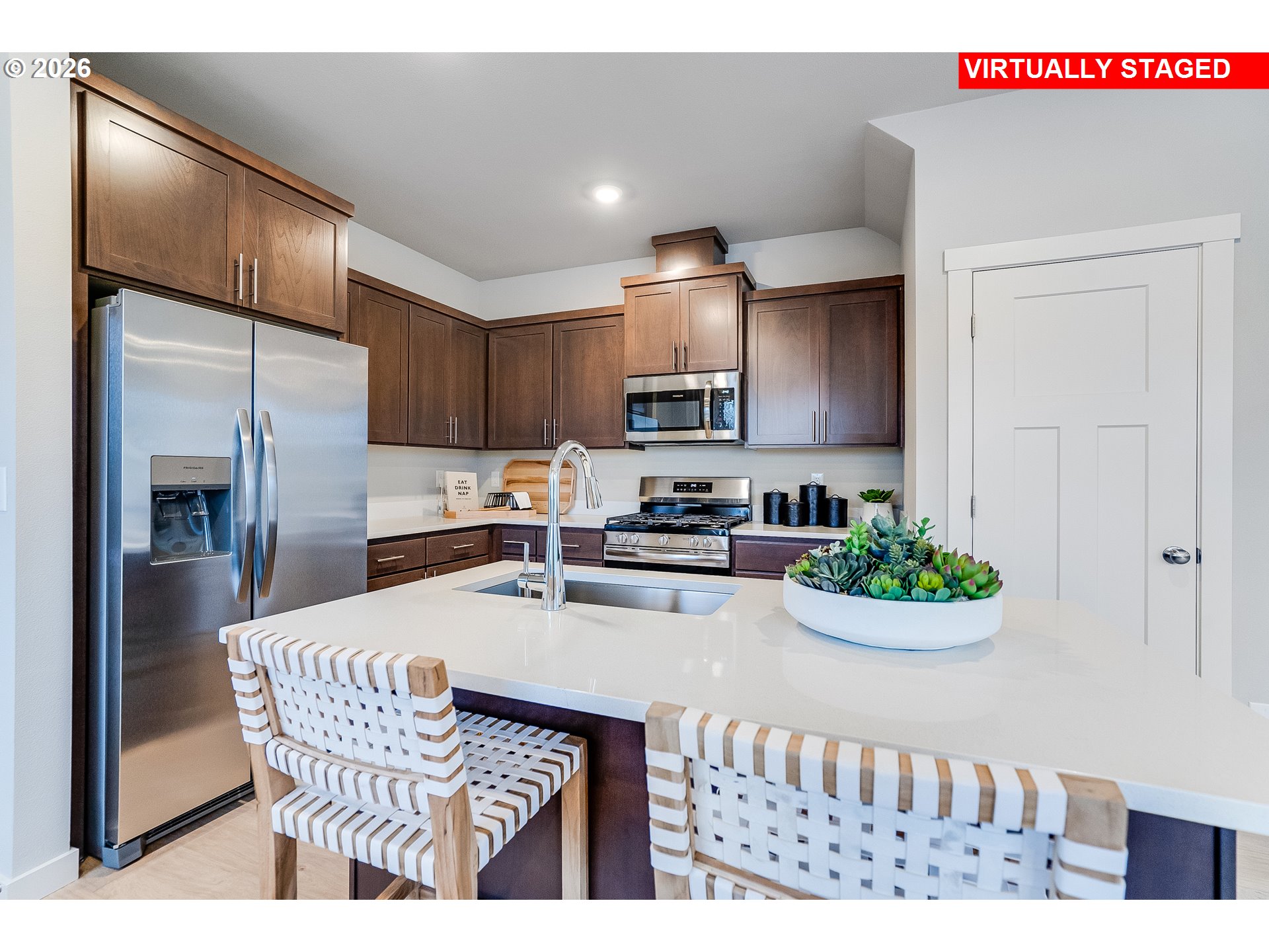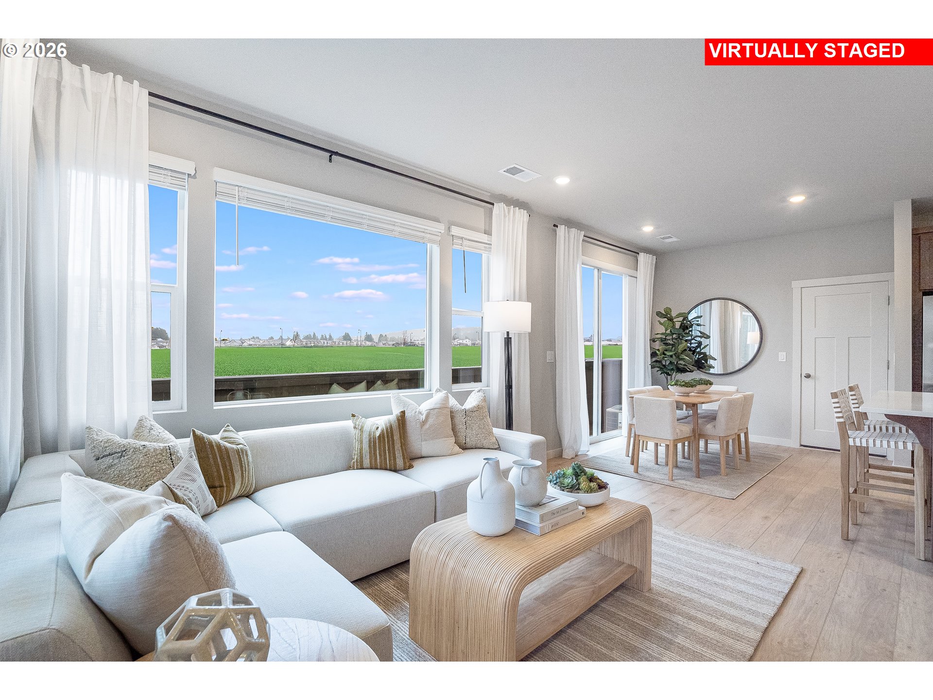 This new construction townhome is located in South River Terrace, surrounded by shopping, dining, golf, and greenspace, with access to excellent schools and nearby freeways. The Tumalo plan offers a modern two-story design with a spacious open-concept first floor that blends the kitchen, dining room, and great room. Upstairs, a versatile loft adds flexibility alongside three bedrooms, including the generous primary suite with a private bath and walk-in closet. Interior highlights include quartz countertops, shaker-style cabinets, stainless steel appliances, two-tone interior paint with painted trim, LVP flooring in the kitchen and entry, and LVT flooring in baths. Central air conditioning, a refrigerator, washer and dryer, and blinds are all included at no extra cost! Located on homesite 21, this home is move-in ready. Photos are of a similar model home so some features and finishes will vary - however flooring, countertops, backsplash are as shown - ask sales associate for details. Flex credit/closing cost incentive available when financing with preferred lender! Use towards rate buydown and closing costs.