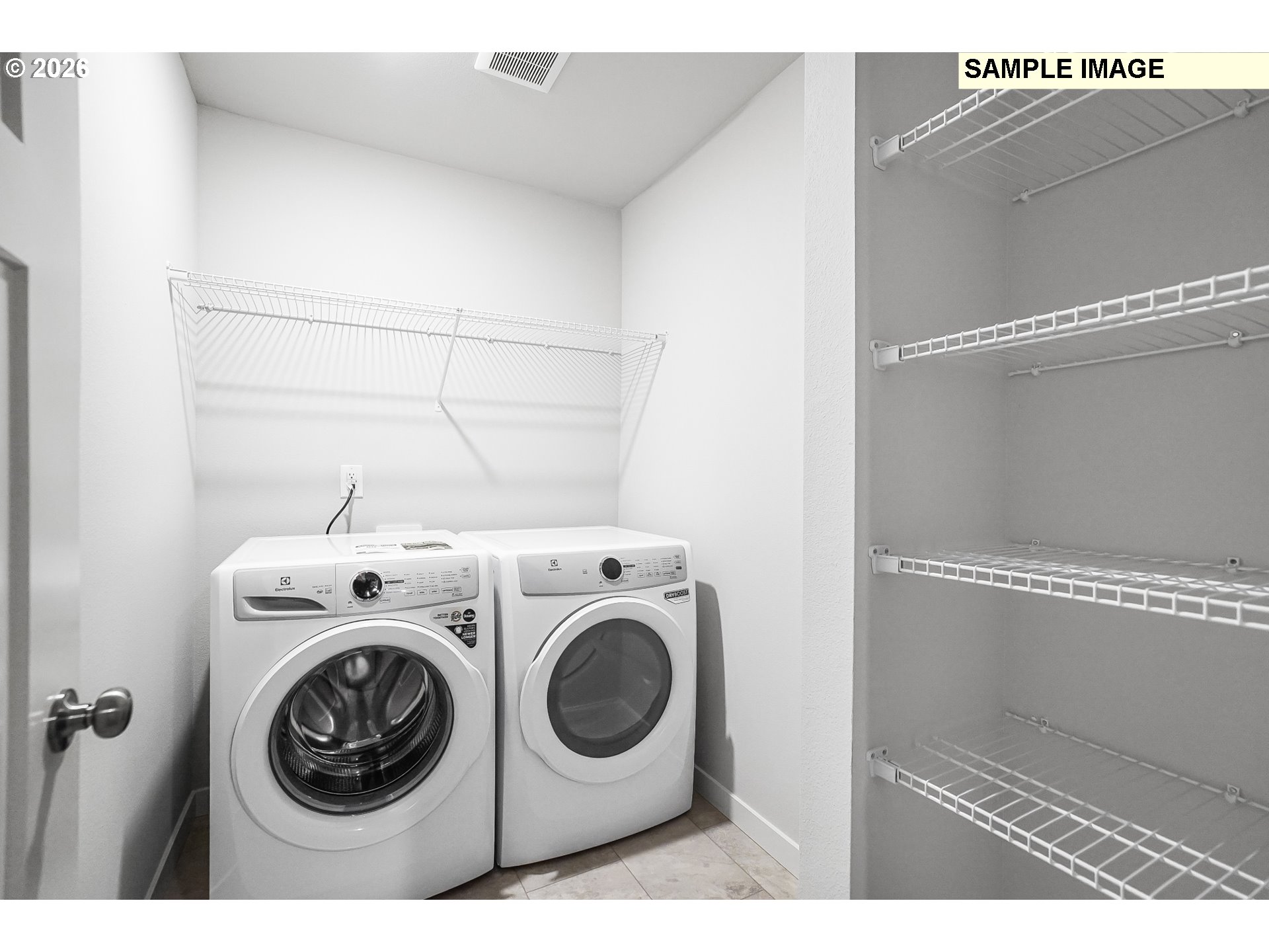 This new construction home is located in a community just minutes from shops, dining, golf, and scenic greenspace, with excellent schools and convenient freeway access. Community amenities include a park and sport court. The Pioneer plan offers a two-story design with an open-concept first floor that blends the kitchen, dining room, and great room, while the second floor includes three bedrooms surrounding a versatile loft, including the spacious primary suite with a private bath and walk-in closet. Interior highlights include quartz countertops, Shaker-style cabinets, LVP flooring in the kitchen and entryway, LVT flooring in the baths, a fireplace with floating mantle, and two-tone interior paint. This home also includes central air conditioning, a refrigerator, washer and dryer, and blinds—all at no extra cost! Located on homesite 17, this home is expected to be finished in January 2026. Rendering is artist conception only. Photos of the cabinets, flooring & countertops without the red "Virtual Staging" watermark match the actual home! *Flex credit/closing cost incentive available when financing with preferred lender! Use towards rate buydown and closing costs.*