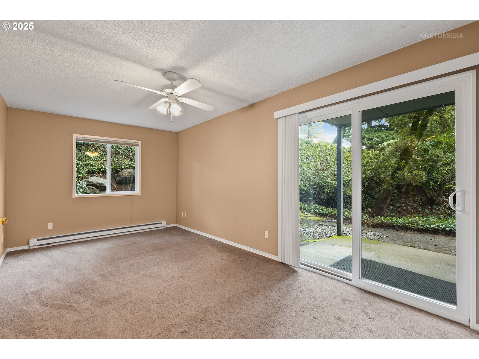 Enjoy effortless, one-level living in this well-located 2 bedroom, 2 bathroom ground floor condominium, offering comfort, convenience, and great amenities. The generous living room opens to a covered patio, creating a perfect blend of indoor-outdoor living. A contemporary kitchen features a tile backsplash, ample cabinetry, and all appliances are included. The adjacent dining area makes entertaining a breeze. The large primary suite is a peaceful retreat with a walk-in closet, ceiling fan, and private patio access, plus an ensuite bath with a walk-in shower. A well-sized second bedroom and a full hall bath complete the layout. Laminate flooring throughout the main living spaces adds durability and style. With two covered patios, a small yard area and extra storage, the outdoor living spaces are truly a perfect extension of your home! Add your own washer and dryer or use the community laundry facility. There is also additional storage. Enjoy the outdoor pool, green spaces, and included in the HOA amenities are water, sewer, garbage, pool and exterior maintenance. Ideally located to parks, trails, desirable schools, shopping, and dining, this home is a fantastic opportunity for easy, low-maintenance living in Sherwood!