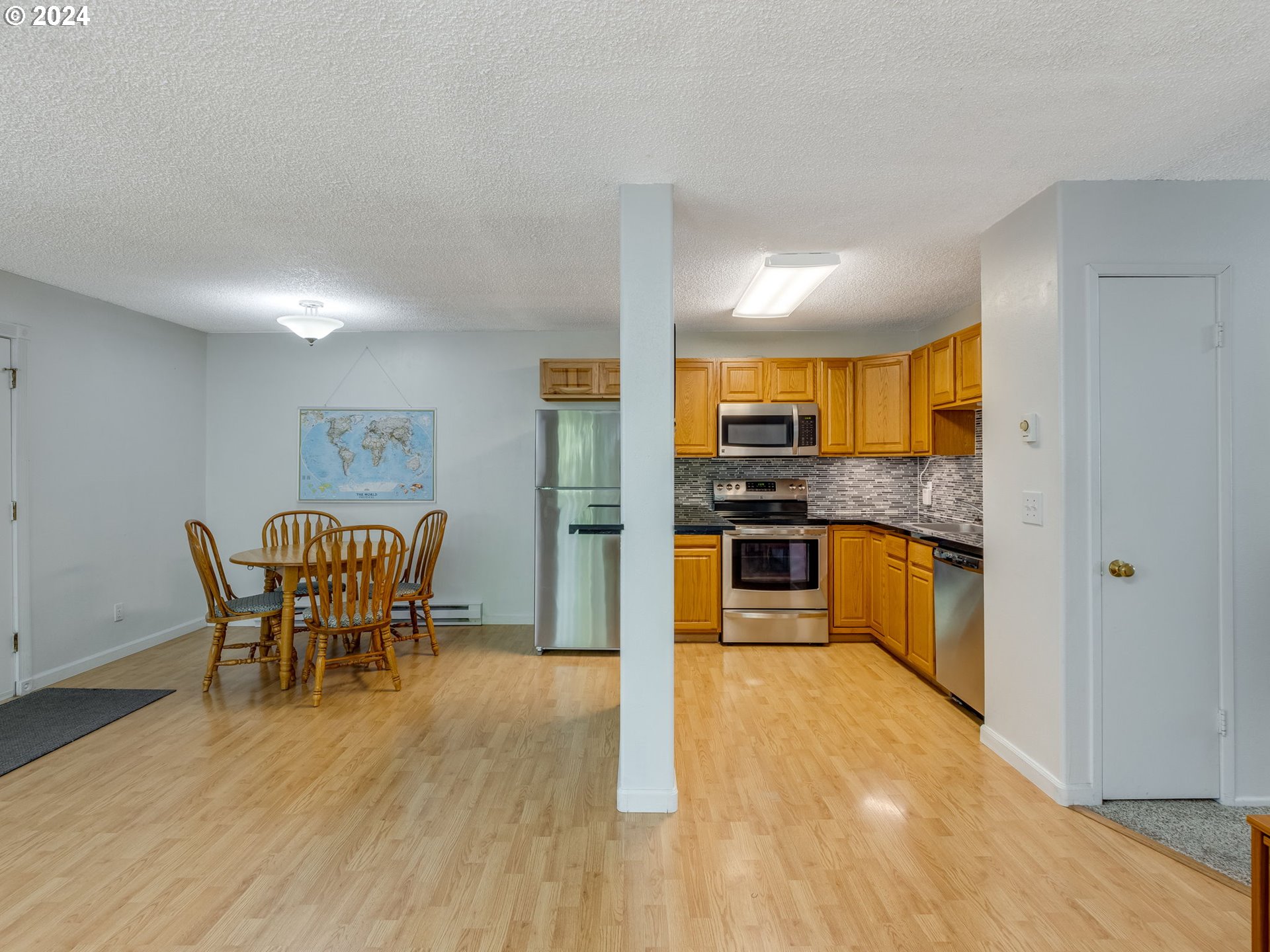 **REDUCED PRICE reflects the potential future special assessment for plumbing replacement.** This move-in ready condo features an open great room with laminate flooring, ceiling fan, and sliding door to a private covered deck with storage closet and treed view. Dining area adjoins kitchen with quartz countertops, tile backsplash, eating bar, pantry, and newer (barely used) stainless-steel appliances including refrigerator. Primary bedroom has ceiling fan, bathroom with walk-in shower, walk-in closet. Newer full-size washer & dryer (barely used) included in primary closet. New baseboard heater and thermostat in 2nd bedroom. New water heater in 2024. HOA includes water, sewer, trash, exterior maintenance, outdoor pool, meeting room. Plenty of parking available for residents and guests. Convenient to community parks, trails, reputable schools, public transit, shopping, and restaurants.