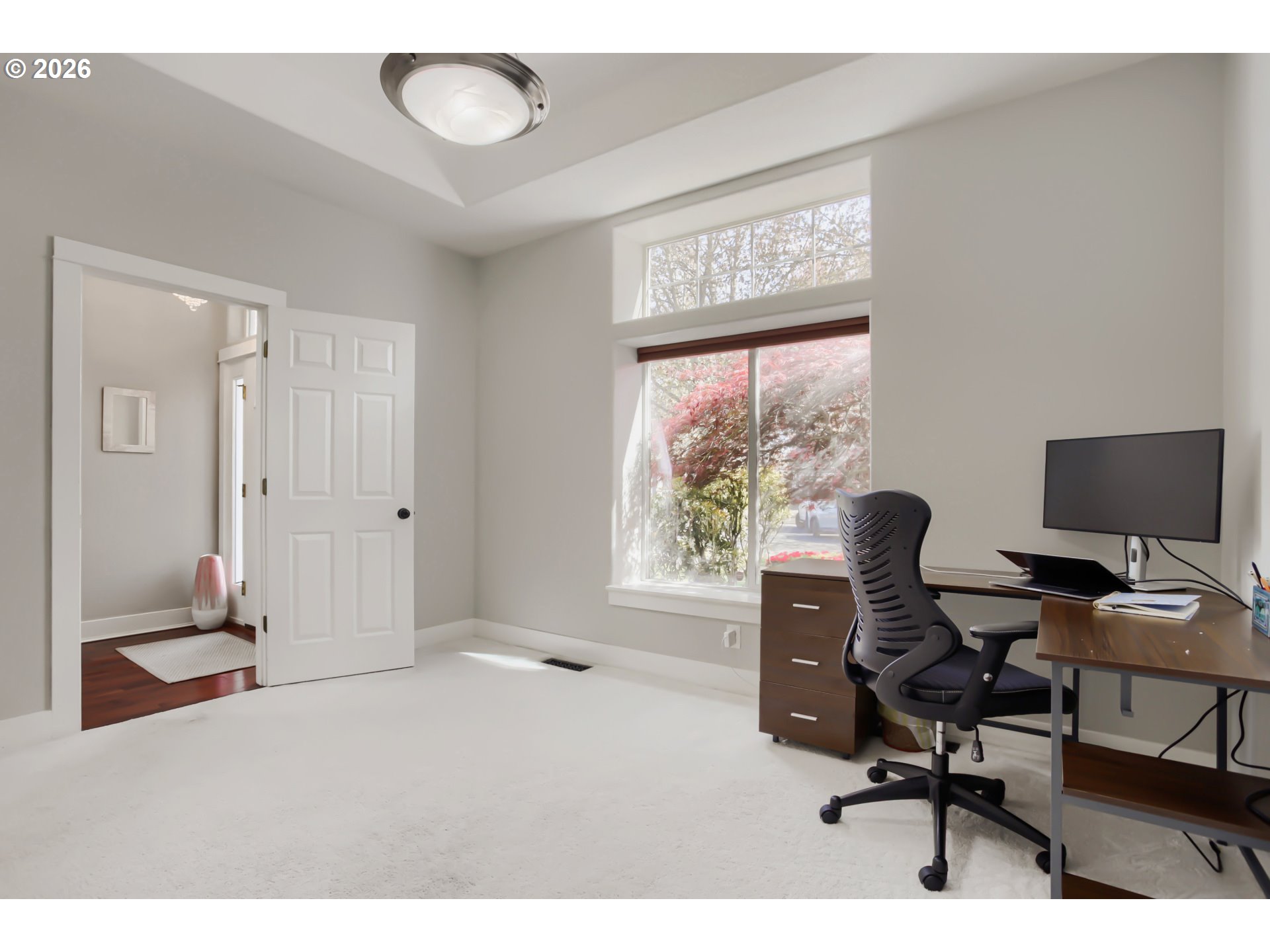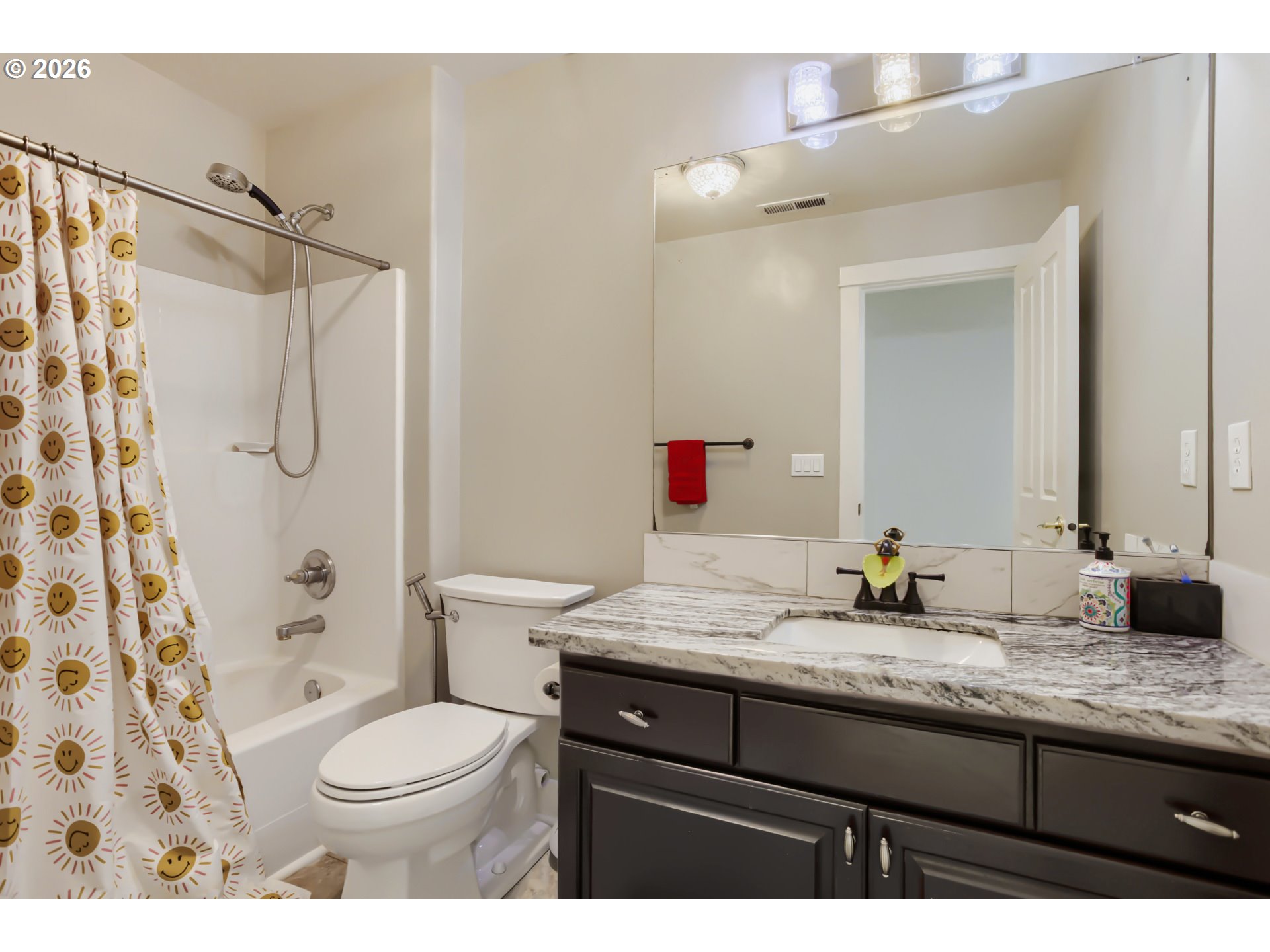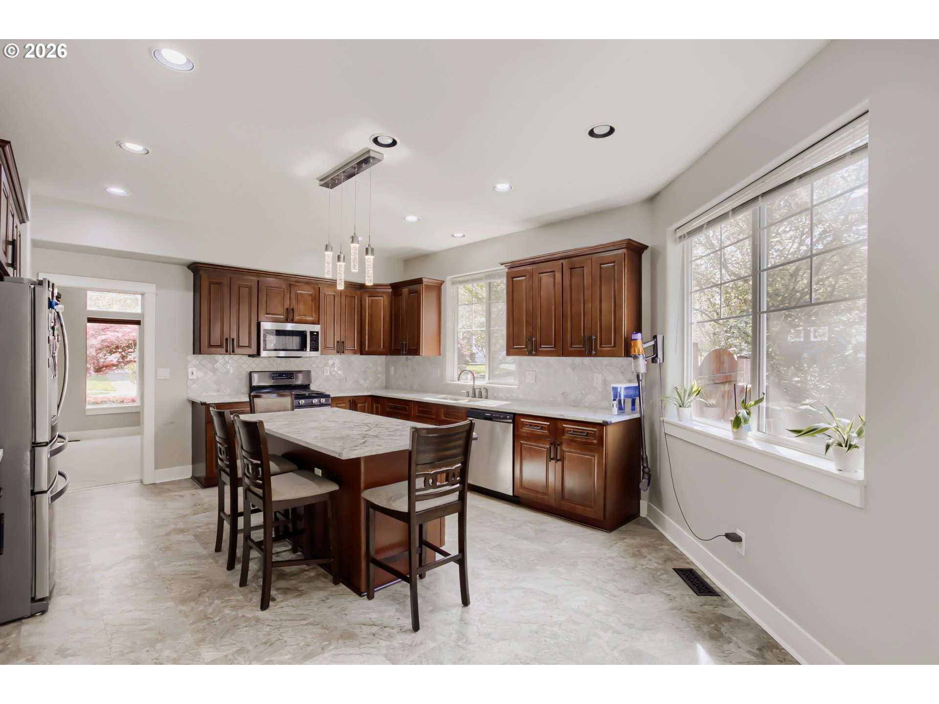 Spacious and beautifully maintained with 5 Bedrooms, office or formal dining area, family room w/ gas fireplace, a huge bonus room and a formal living room. This Beaverton home offers the perfect blend of comfort, flexibility, and style in a desirable, quiet neighborhood featuring hardwood flooring throughout most of the main living area, tons on natural light and a layout that is ideal for both everyday living and entertaining. Lots of room for storage in the oversized 2 car garage with additional tandem area. The kitchen offers ample cabinetry, generous counter space with Quartz counter tops, that flows seamlessly into the main eating area and adjoining family room and exits to the back patio with dual electric awnings and a fully fenced backyard. This home provides exceptional versatility for remote work, guests, or multi-generational living as there is one bedroom and bathroom w/step in shower on the main level. The primary suite serves as a relaxing retreat complete with dual sided gas fireplace, jetted tub, tile shower and a private sitting/dressing area and dual walk-in closets. 4 Additional and a huge bonus room adds valuable extra space—perfect for a media room, playroom, home gym, or creative studio. Enjoy a private backyard ideal for entertaining or unwinding, all while being conveniently located near parks, shopping, dining.