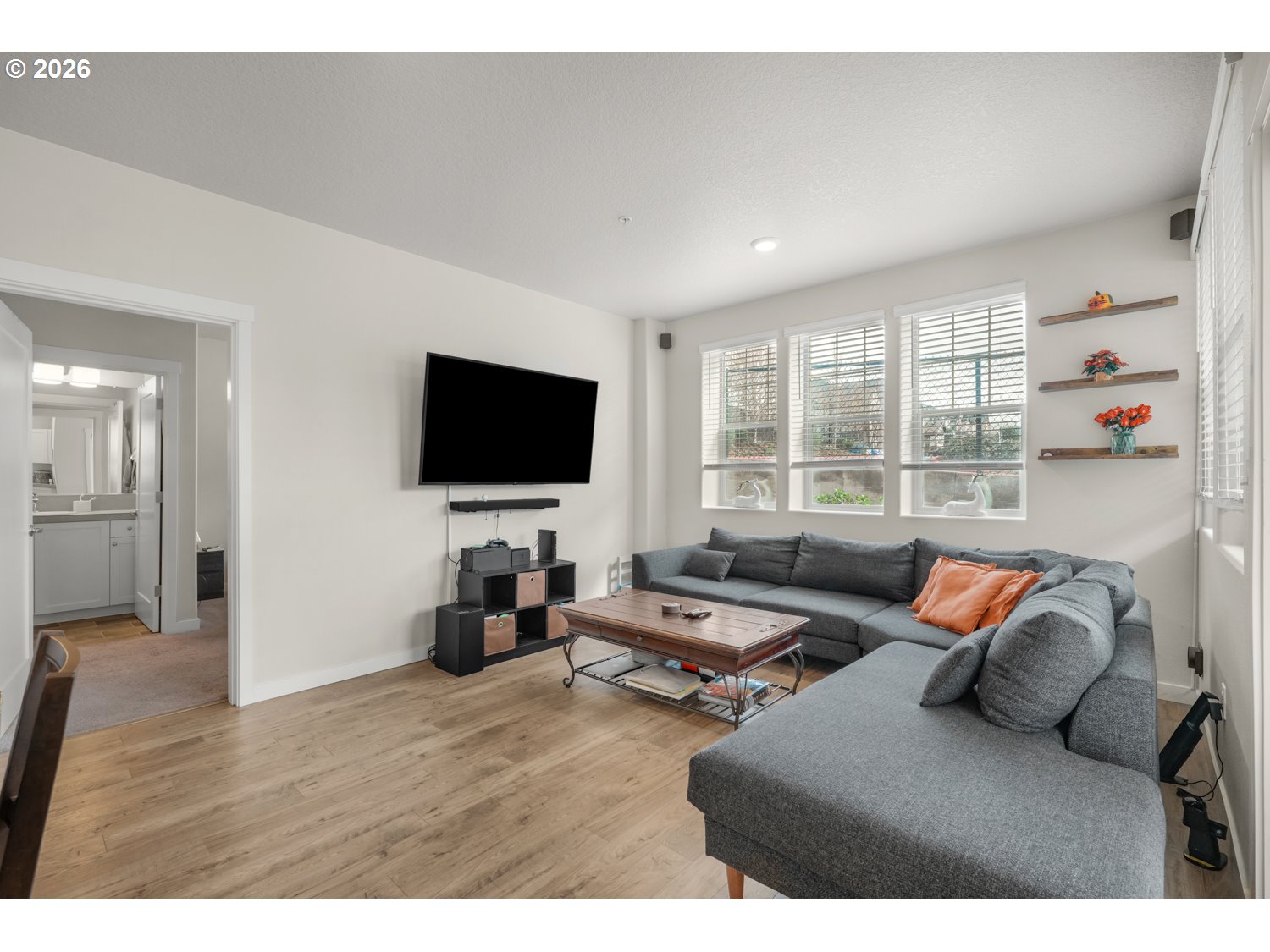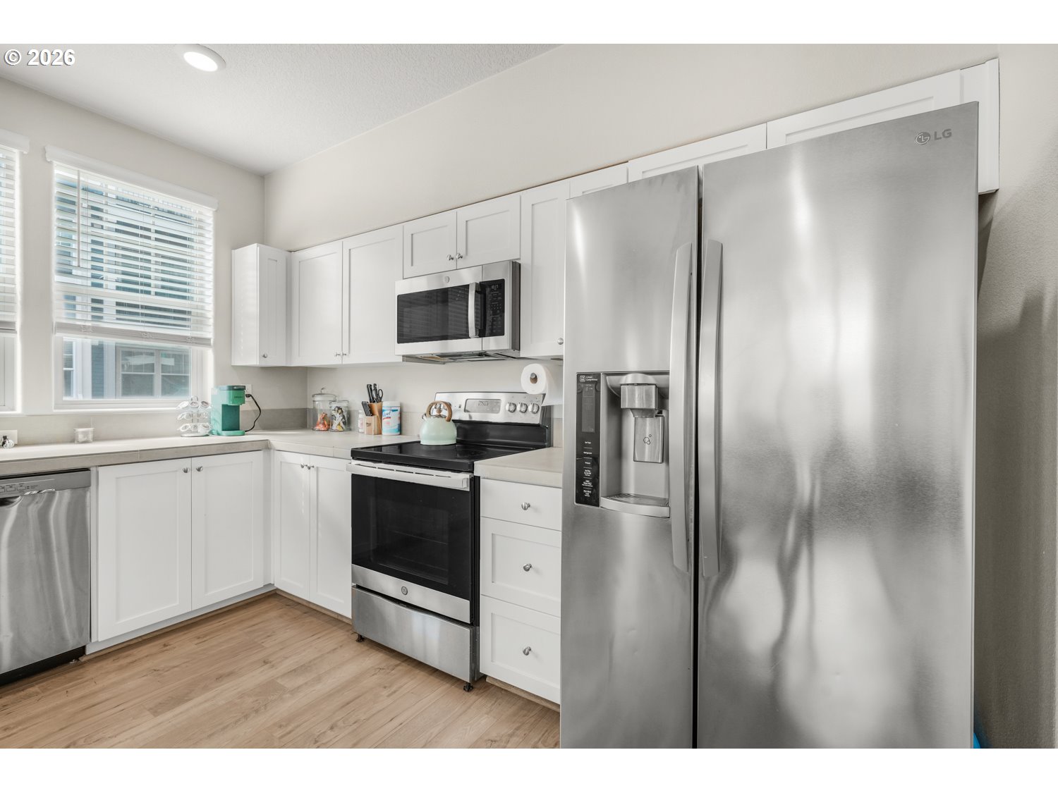 Welcome to 17126 SW Snowdale St #102, a thoughtfully designed ground-floor condo that makes the most of every square foot. Built with modern living in mind, this newer home offers a clean, contemporary feel paired with practical upgrades throughout. The open concept main living space creates an easy flow between the kitchen, dining, and living areas, making it ideal for both everyday living and entertaining. The kitchen stands out with stainless steel appliances, built-in features, and an impressive amount of custom storage that maximizes functionality without sacrificing style. Just off the living area, a covered patio extends your space outdoors—perfect for morning coffee or winding down in the evening. The primary bedroom is well-appointed with a private bath and a walk-in closet, providing comfort and convenience in a smart layout. Unit also includes detached garage with driveway giving two guaranteed parking spots. Located in a quiet, well-maintained community, this home offers a peaceful setting while still being close to everything. You’re just minutes from Progress Ridge, with its popular mix of shopping, dining, and entertainment options. Nearby schools and easy access to major routes add to the everyday convenience. As part of a well-managed HOA, residents enjoy a wide range of amenities including a pool, workout facility, bocci ball and BBQ area. Essential services like exterior maintenance, sewer, water, trash, and recycling are also included, simplifying homeownership. This is a strong opportunity for buyers looking for low-maintenance living in a highly desirable Beaverton location.