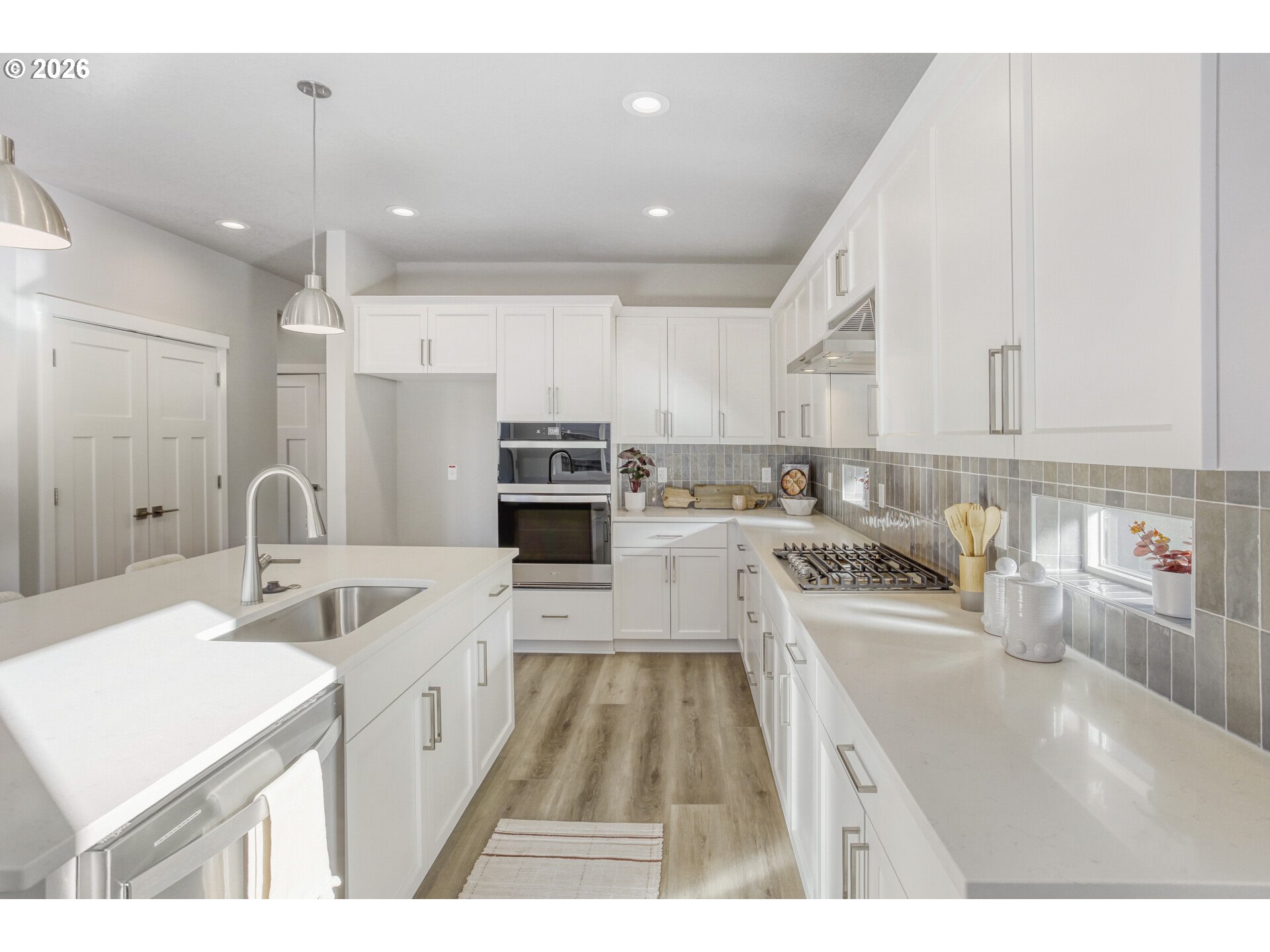 Move in ready new construction! Tucked against a tranquil greenspace, this 4-bedroom, 3 full bath home offers rare natural privacy. Thoughtfully designed with a flexible floorplan, this home delivers modern comfort with timeless appeal. Light pours through expansive windows, framing serene views and creating an easy flow between indoors and out. The open main level is ideal for both everyday living and entertaining, anchored by a beautifully appointed gourmet kitchen with sleek finishes, generous storage and a welcoming connection to the living and dining spaces. A full bedroom and bath on the main level provide flexibility for guests, multigenerational living, or a dedicated home office. Upstairs, the primary suite feels like a private retreat with wooded views, complete with spa-inspired bath and walk-in closet. Two additional bedrooms, a full bath, and a versatile bonus space round out the upper level, offering room to grow, gather, and recharge. Backing to protected greenspace, the backyard becomes a peaceful extension of the home—perfect for morning coffee, evening sunsets and moments of quiet. With new construction peace of mind, energy-efficient features and a coveted Sherwood address, this home invites you to settle into something both beautiful and enduring. Award winning schools, neighborhood trails, community park, minutes to shopping, historic downtown Sherwood and gateway to wine country. Open Sun 1-4pm.