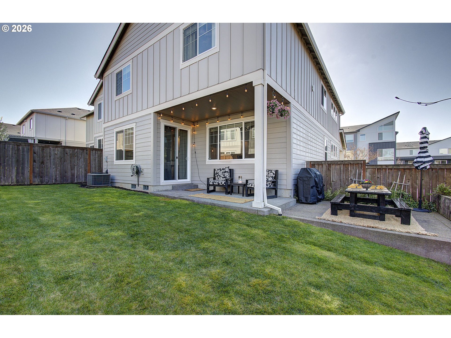 Welcome to this beautifully maintained 2020-built home offering modern comfort and effortless living across 2,508 sq ft. Featuring 4 bedrooms and 2.5 bathrooms, the open-concept layout is filled with natural light and designed for today’s lifestyle. The spacious kitchen showcases a stunning 12’ quartz island, perfect for gathering! Gas stove top with Hood, built-in oven, microwave, pantry- and cabinets galore! Enjoy a large, vaulted primary with grand entry, en-suite bath, soaking tub, double sinks, tiled walk-in shower, and walk-in closet. Upstairs there is a versatile bonus space ideal for a media room, office, or play area. Next, Step outside to a fully fenced, flat yard with an added 12x12 patio extension—perfect for outdoor entertaining and playing! Planter boxes along the fence line make for easy gardening! Additional highlights include a Tesla car charger, sprinkler system, and low-maintenance living with HOA-covered front landscaping, close-by parks and walking paths. This home is clean, well cared for, and move-in ready—-it truly checks all the boxes! Some furniture can be included- Make sure to see the features sheet. OPEN SAT & SUN!!