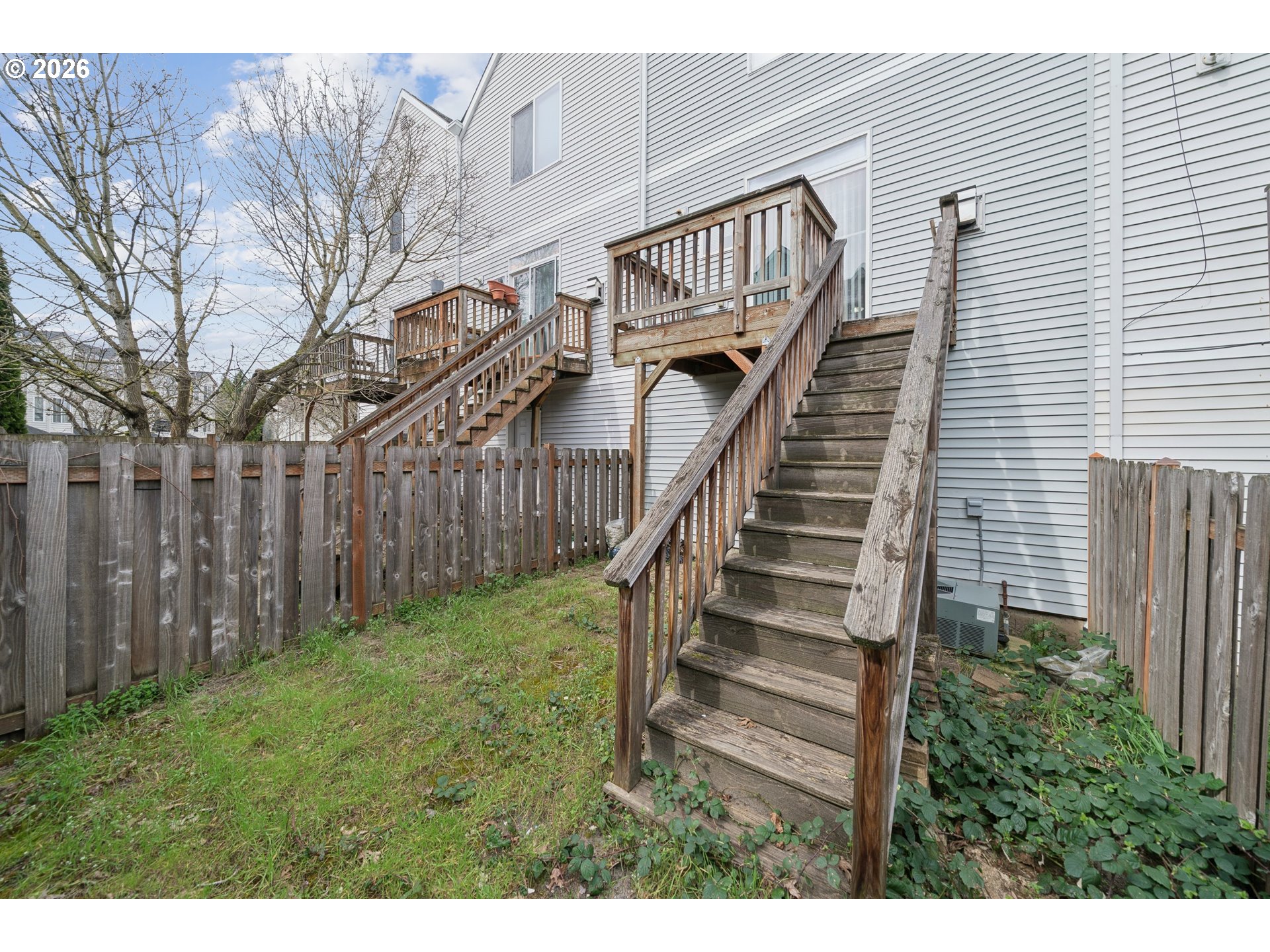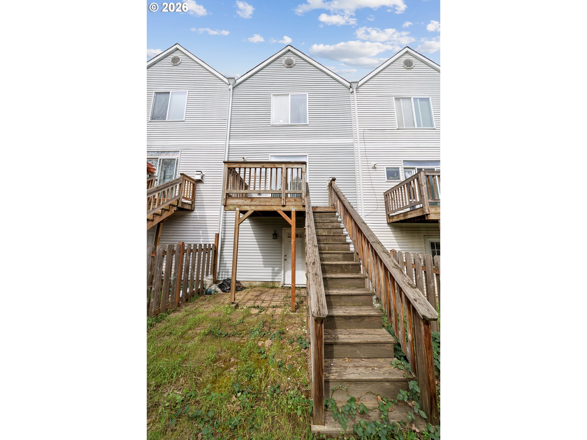 Nestled in a quiet community, this townhome is move in ready and is in an ideal location with convenient access to major commuting routes, schools and abundant shopping. The open concept main level welcomes you with a spacious living room featuring a fireplace and a deck that accesses your own private yard. The large kitchen has an eating bar and an island that flows into an adjacent dining room. Upstairs, two primary suites offer versatile living arrangements and privacy-each with its own bathroom and ample closet space. A dedicated laundry space on the upper level adds everyday convenience. The oversized 2 car tandem garage includes space for storage or a shop area. Don't miss this opportunity for low maintenance living in a prime location!