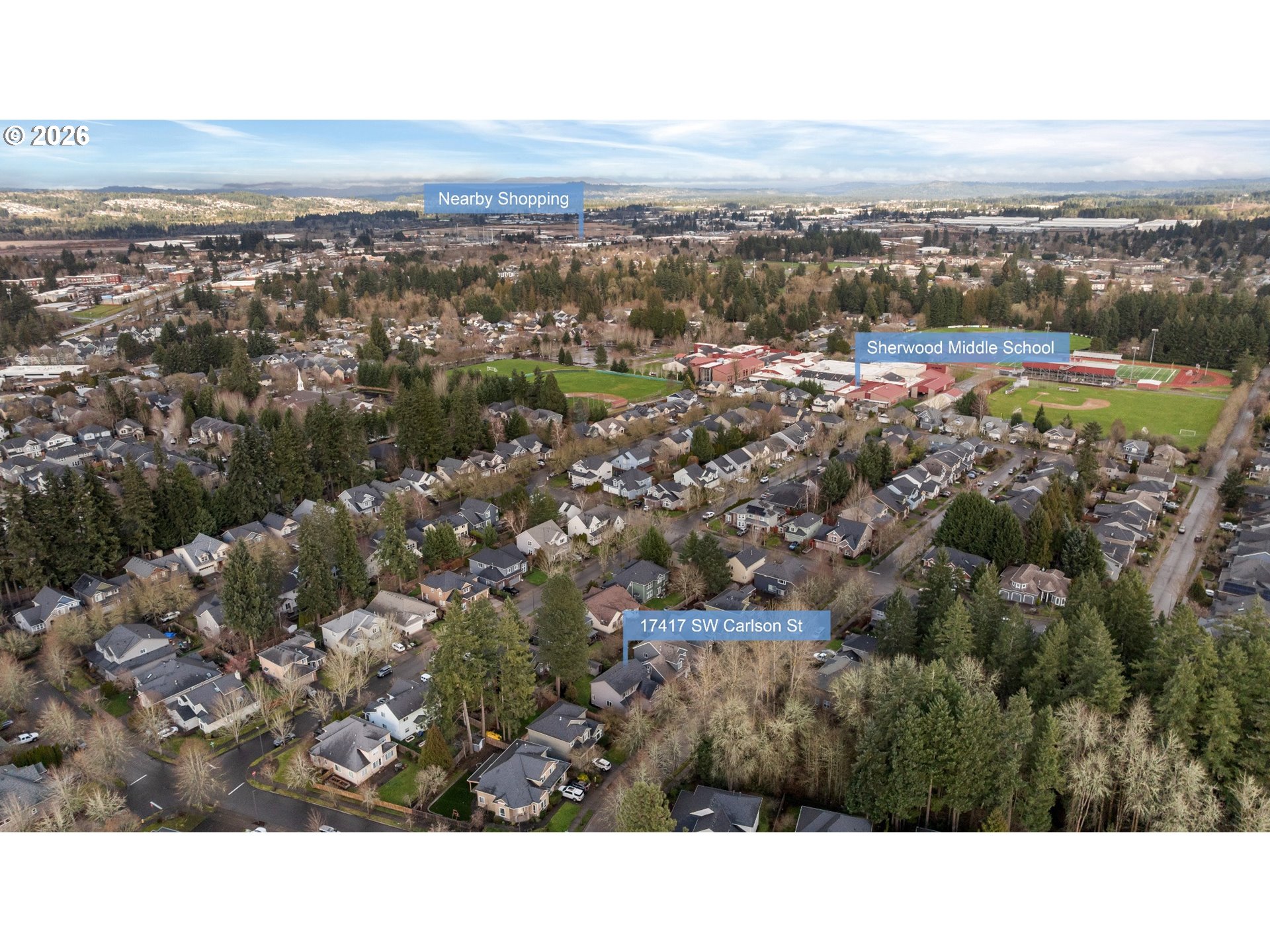 Located in the highly desirable Woodhaven neighborhood of Sherwood, this beautifully maintained home is truly move-in ready. The pre-list inspection has been completed, and all repairs have been addressed, allowing buyers to move forward with clarity and confidence.The main level offers formal living and dining spaces, rich oak hardwood floors throughout the main level, and an open family room with a cozy gas fireplace. The updated kitchen features oak cabinetry, granite countertops, stainless steel appliances, gas range, walk-in pantry, and a bright kitchen nook overlooking the backyard. A main-level office or den provides flexibility for work or hobbies. Upstairs showcases fresh new carpet installed 2/26, a spacious primary suite with walk-in closets and an updated bathroom with soaking tub and shower, plus two additional bedrooms. The fourth bedroom can function as a generous bedroom or a bonus room. Major updates include the roof in 2020, water heater in 2020, interior paint in 2025, and the recently serviced furnace and A/C. Updated bathrooms and kitchen add style and function throughout.Outside, enjoy lush landscaping, patio space for entertaining, beautiful fir trees, and a garden shed. Located across from a green space, close to parks, trails, schools, YMCA, and Old Town Sherwood. Super clean and exceptionally well cared for.