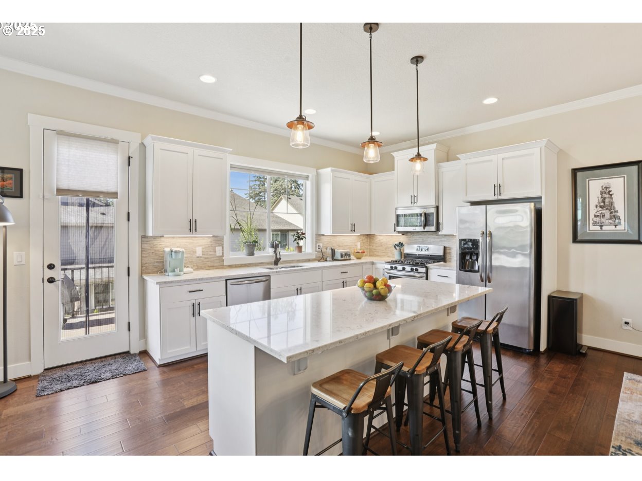 Beautiful River Terrace home filled with an abundance of natural light! Home features include hardwood floors, quartz countertops, and an open-concept main level that flows effortlessly from the living and dining areas into a bright, modern kitchen—perfect for gathering and everyday living. Large windows invite light into every corner, creating a warm and welcoming feel throughout. Upstairs, you’ll find a spacious primary suite plus two additional bedrooms and a full bath. The 800 sq ft daylight basement offers flexible space for a home office, gym, or family room. Enjoy the private backyard with mature landscaping and room to relax. Conveniently located near parks, schools, and local amenities—this home truly shines. Commons, Gym, Pool