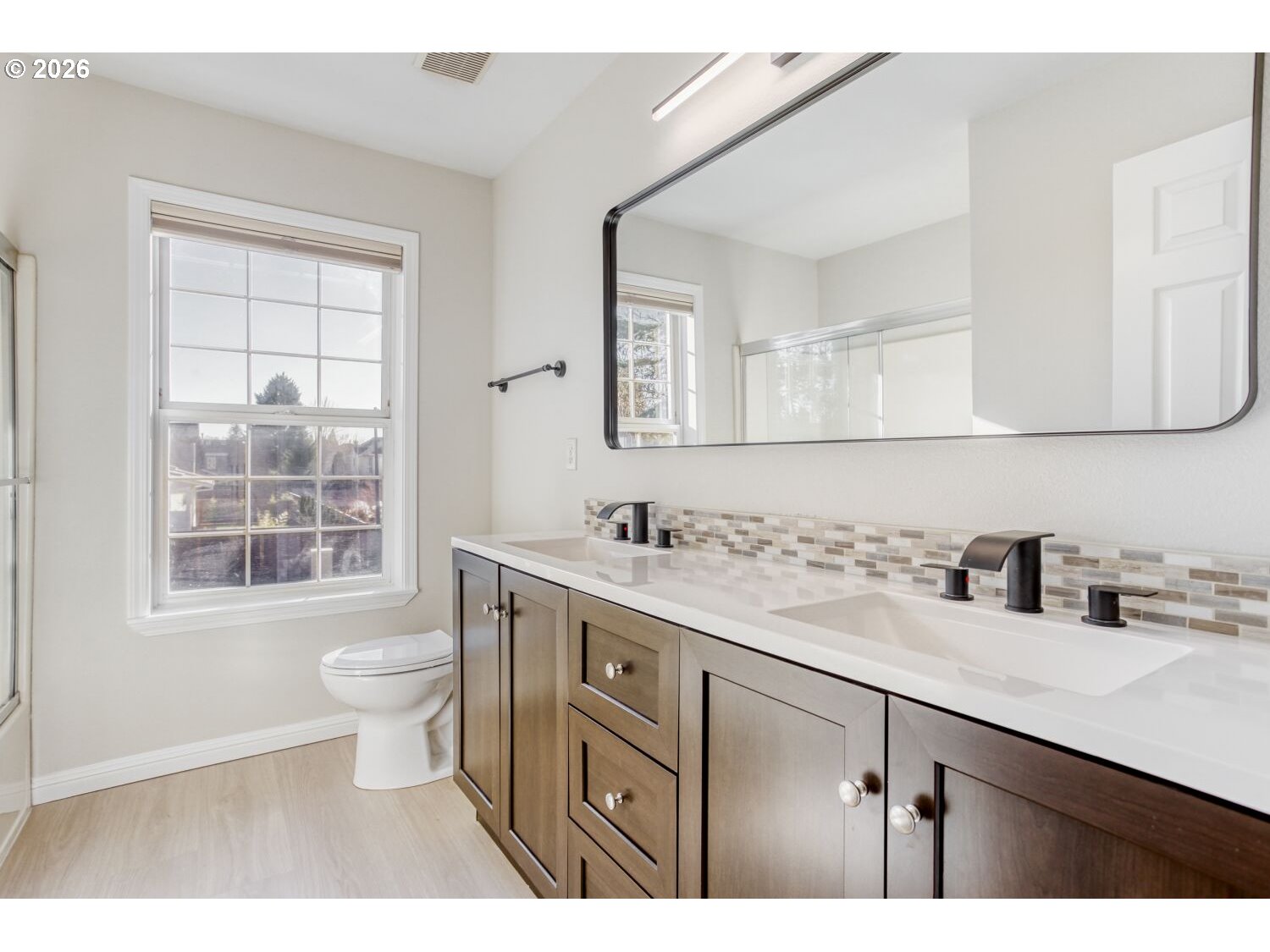 BETTER THAN NEW! Beautifully maintained and Move-in ready home with extensive updates.Hardwood floors (2016) on the main level, two fireplaces (wood-burning and gas), and a large, flat yard with irrigation. Major system upgrades include roof replacement (2017) and new A/C, furnace, and hot water heater (2021). Light filtering cellular shades / blinds ( 2023) Kitchen features a new gas cooktop (2025), dishwasher (2020), and oven.Exterior paint (2020).Kitchen cabinets & stairs re-stained (2025). Both upper bathrooms fully remodeled in 2025 with new vanities, fixtures, lighting, and water-efficient toilets. New LVP flooring in guest bath and laundry(2025). Interior freshly painted throughout, including garage and entry, plus epoxy-coated garage floor(2025).Wi-Fi enabled thermostat and sprinkler system with new heads. Motion-sensitive and solar exterior lighting. Professionally cleaned, including carpets, prior to listing. Ideally located in the highly desirable Bethany area, this home offers close proximity to top-rated schools, neighborhood parks, and scenic walking trails. Convenient access to major employers including Intel and Nike, as well as easy connectivity to major routes for a seamless commute. Enjoy nearby shopping, dining, and all the amenities.