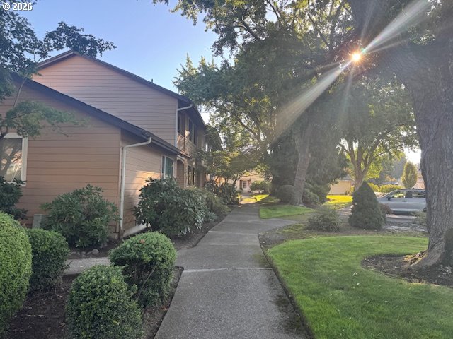Bottom floor condo, end unit with a private outdoor patio. Two-bedroom unit with a fireplace and direct access to the garage. Desirable complex with lots of trees and greenery.