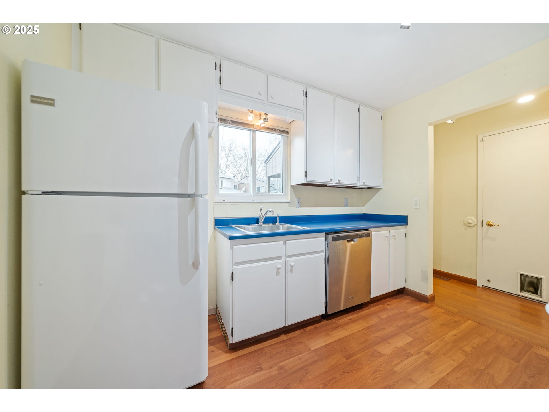 Abundance of natural light in this move-in ready Tanasbrook condo featuring 2 bedrooms, 1.5 baths and 1,026 sq ft. All major systems are newer and have been serviced yearly. The main level offers a living room with wood-burning fireplace, sliding doors to a fenced private paved patio, galley kitchen, dedicated laundry room in the garage, vaulted ceilings, and Pergo flooring throughout. Don’t miss the beautiful large stained glass window in the formal dining room. Upstairs are two bedrooms, one with a balcony, plus ceiling fans and a full bath. Recent updates include: all new windows and patio doors (2023), water heater (2023), new roof and gutters (2024), heat pump and electric furnace. Attached 1-car garage with laundry room and abundant guest parking. Enjoy resort-style community amenities: pool, hot tub, sauna, tennis courts, gym, clubhouse, trails and gardens, plus RV/boat storage for a small fee. HOA covers water, sewer, trash, recycling, grounds maintenance, roofs and siding. Bring your ideas and add your personal touch an excellent sweat equity opportunity with big ticket improvements already completed, plus strong potential as a long term rental/investment property. Fantastic Beaverton location east to get to Trader Joe’s, New Seasons, Safeway, Whole Foods, Nike, Intel, Columbia Sportswear and more.