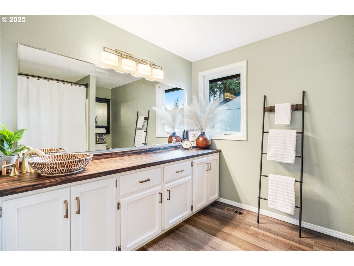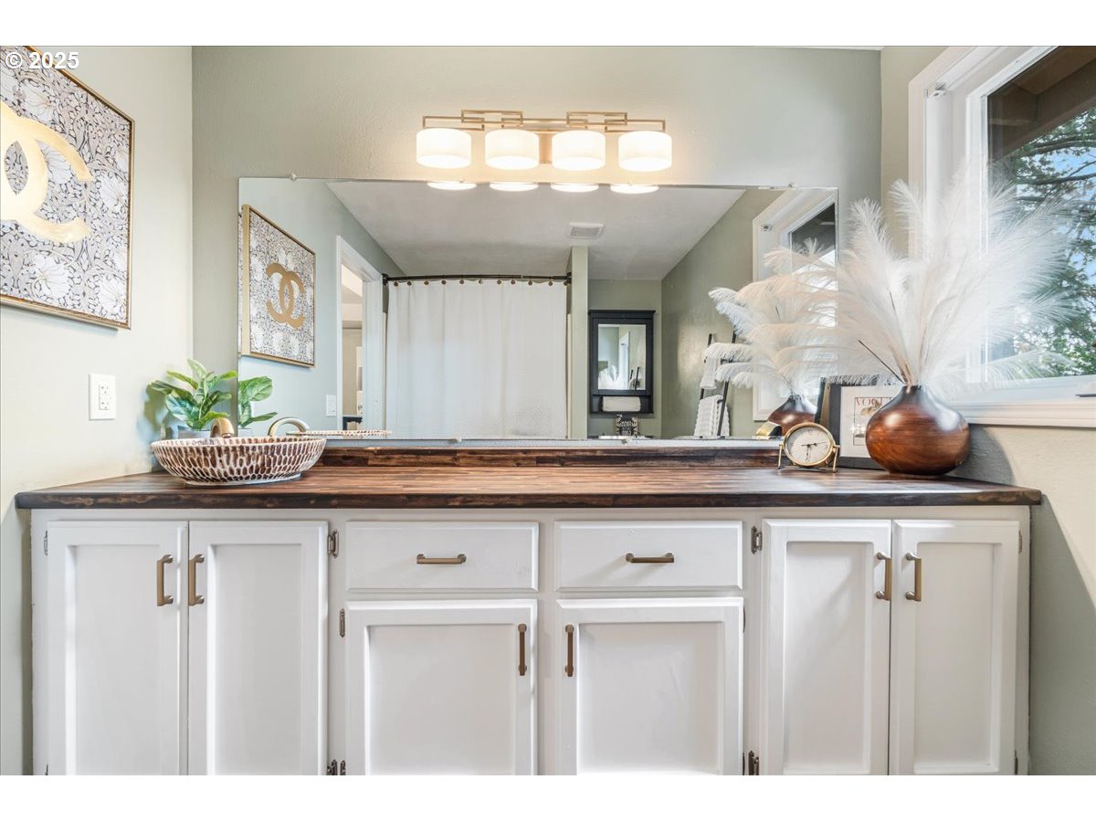 Beautifully updated and move-in ready, this Beaverton home combines modern design with everyday comfort. Vaulted ceilings and skylights fill the main level with natural light, creating an open and inviting feel. The fully renovated kitchen features quartz counters, shaker cabinets, stainless steel appliances, and generous storage. Big-ticket updates are complete with new windows, gutter guards, and 2024 replacements for the furnace, air conditioning, and water heater. The main level includes new LVP flooring, fresh paint, and a versatile family room with a full bath, most recently used as a bedroom, can also serve as guest space, office, or playroom. Upstairs, the spacious primary suite includes a walk-in closet and an updated bath. From the kitchen, step out to a large deck and a private, fully fenced backyard surrounded by mature trees. The lot feels larger than expected, offering plenty of space for entertaining, gardening, or simply relaxing. Set on a quiet cul-de-sac, this home blends peaceful surroundings with everyday convenience. Parks and trails including Tualatin Hills Nature Park, Beaverton Creek Trail, and THPRD recreation sites are just minutes away. Nike, Intel, and other high-tech employers are within easy reach, along with shopping, dining, groceries, and even Costco, making this an exceptionally well-connected place to call home. It doesn’t get easier than this! The short ownership period is simply due to an unplanned relocation.